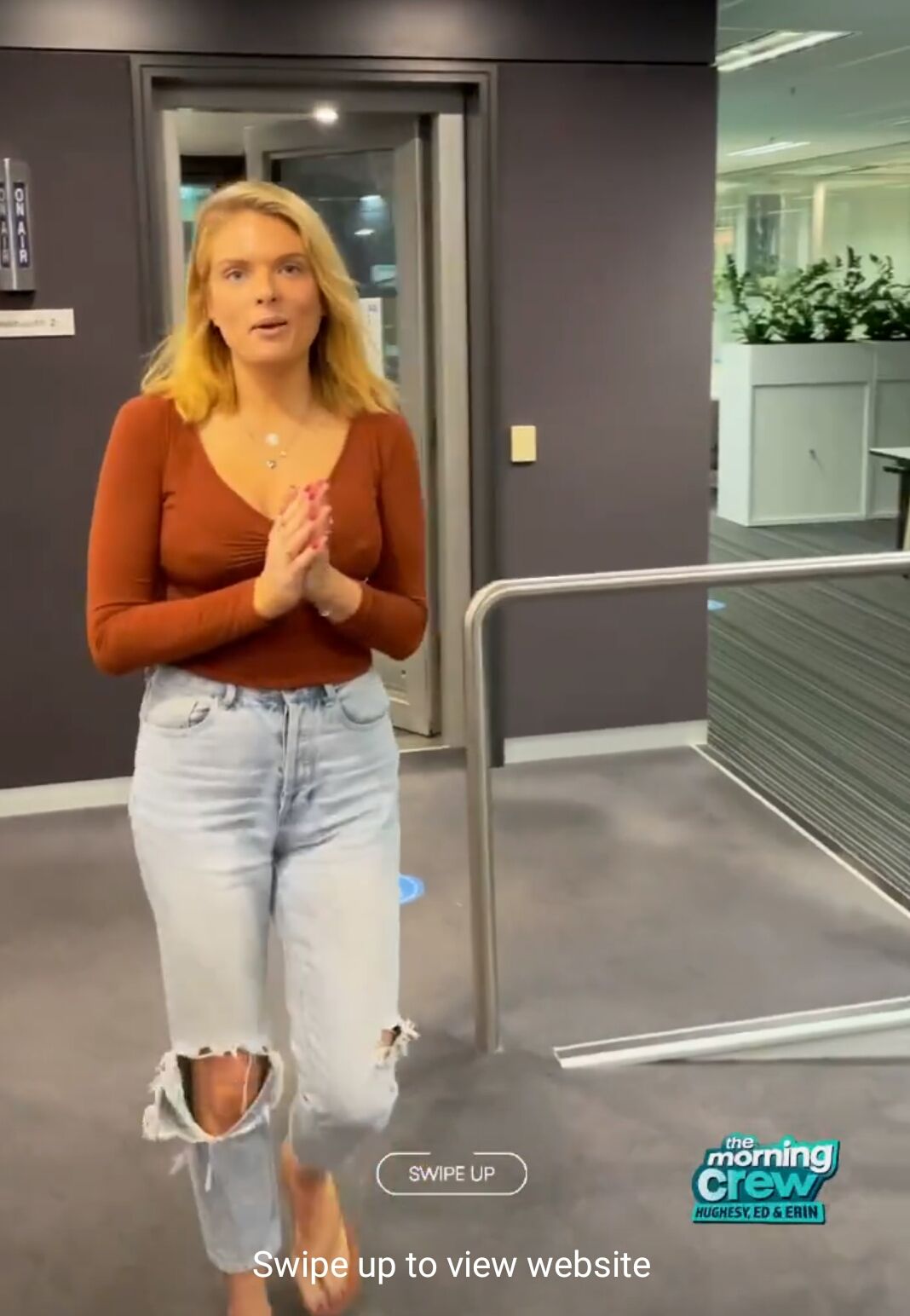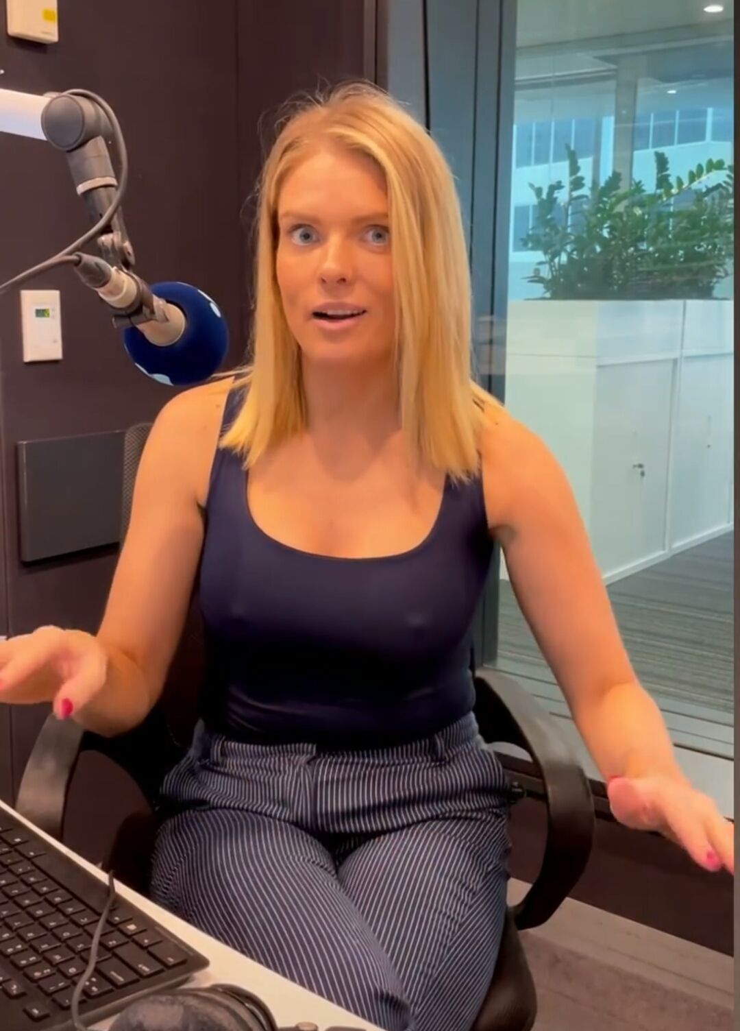 I don't think Erin ever wears a bra some great nipple action.