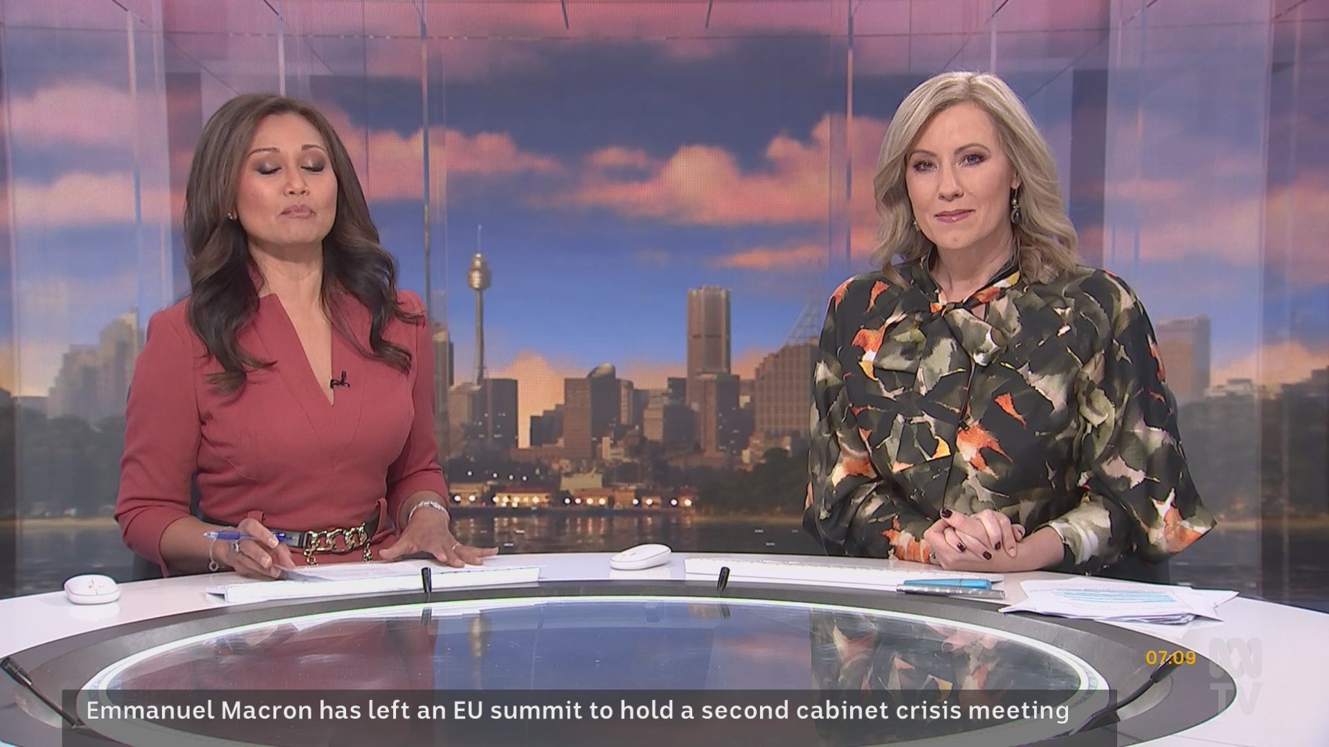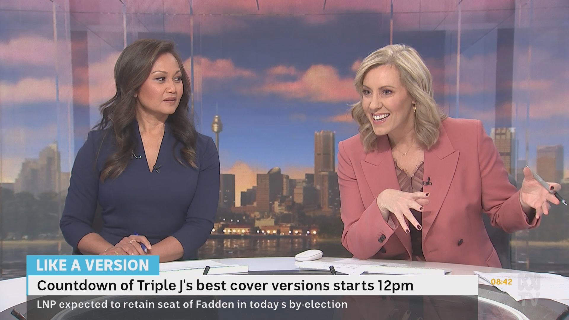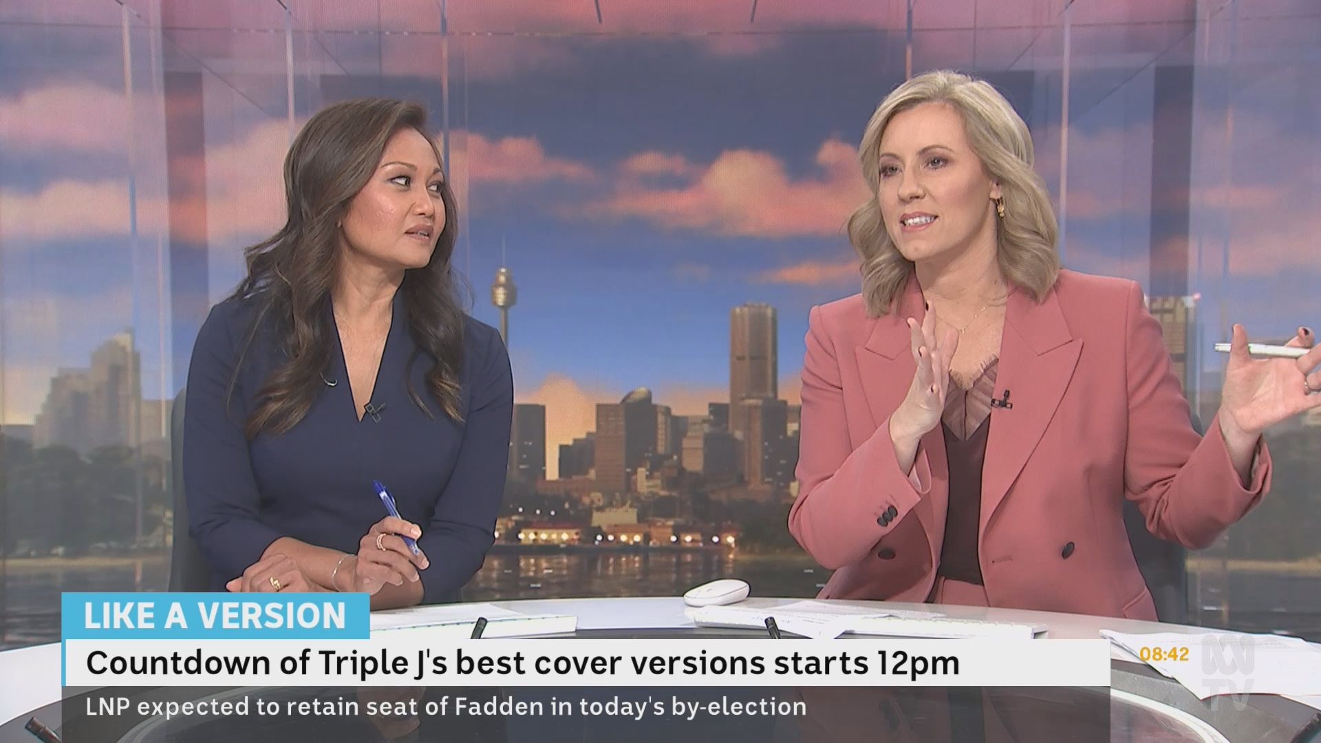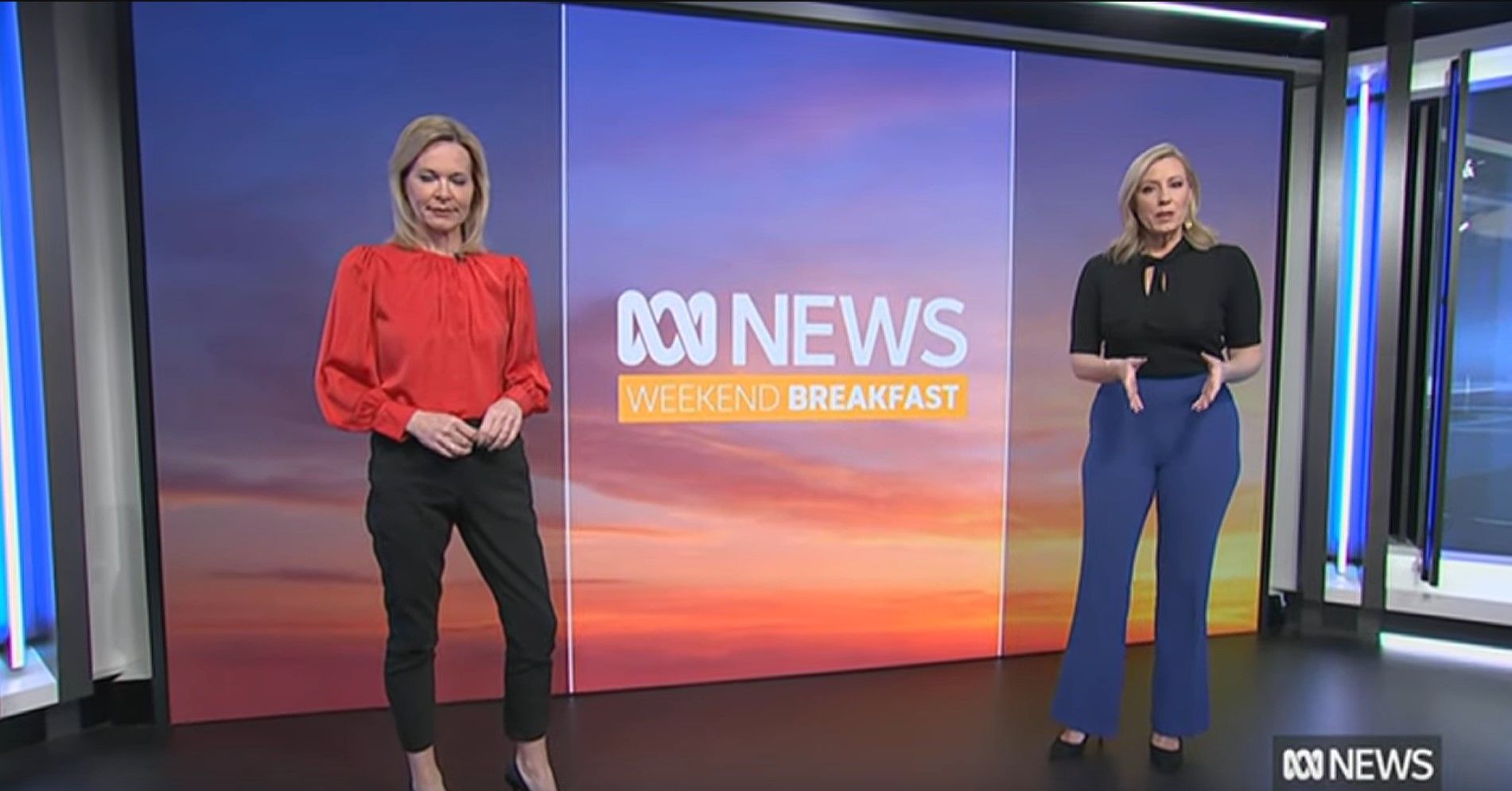 20b, much appreciated caps of Kath over the last fortnight.... and cr4, your smorgasbord is a most welcome addition! I got the school holiday exodus wrong.... Fauziah missing and not Kath! Kath had to once again rescue The Drum last Friday night, with Julia Baird pulling out of her scheduled hosting? The worst possible fill-in for Kath.... The Drum finishing at 7pm, then home to sleep and up again very early to prepare for the 7am start on Saturday wb. The ABC asks a lot of her! So it would appear that wb will feature double blondes for the holiday period. I'm not sure whether Lorna and Kath have paired up before ..... Lorna, with her conservative British reserve, looks a little bewildered by Kath's energetic approach to hosting. Kath is a brilliant ad libber .... quick-witted, while seamlessly interspersing news segments without missing a beat, an energy that carries the program and makes it eminently watchable. She's sexy, she's flirty ... she is simply gorgeous. But what is going on with the first finger on her right hand .... for weeks now it is the only finger where the nail has not been painted?? Curiouser and curiouser....