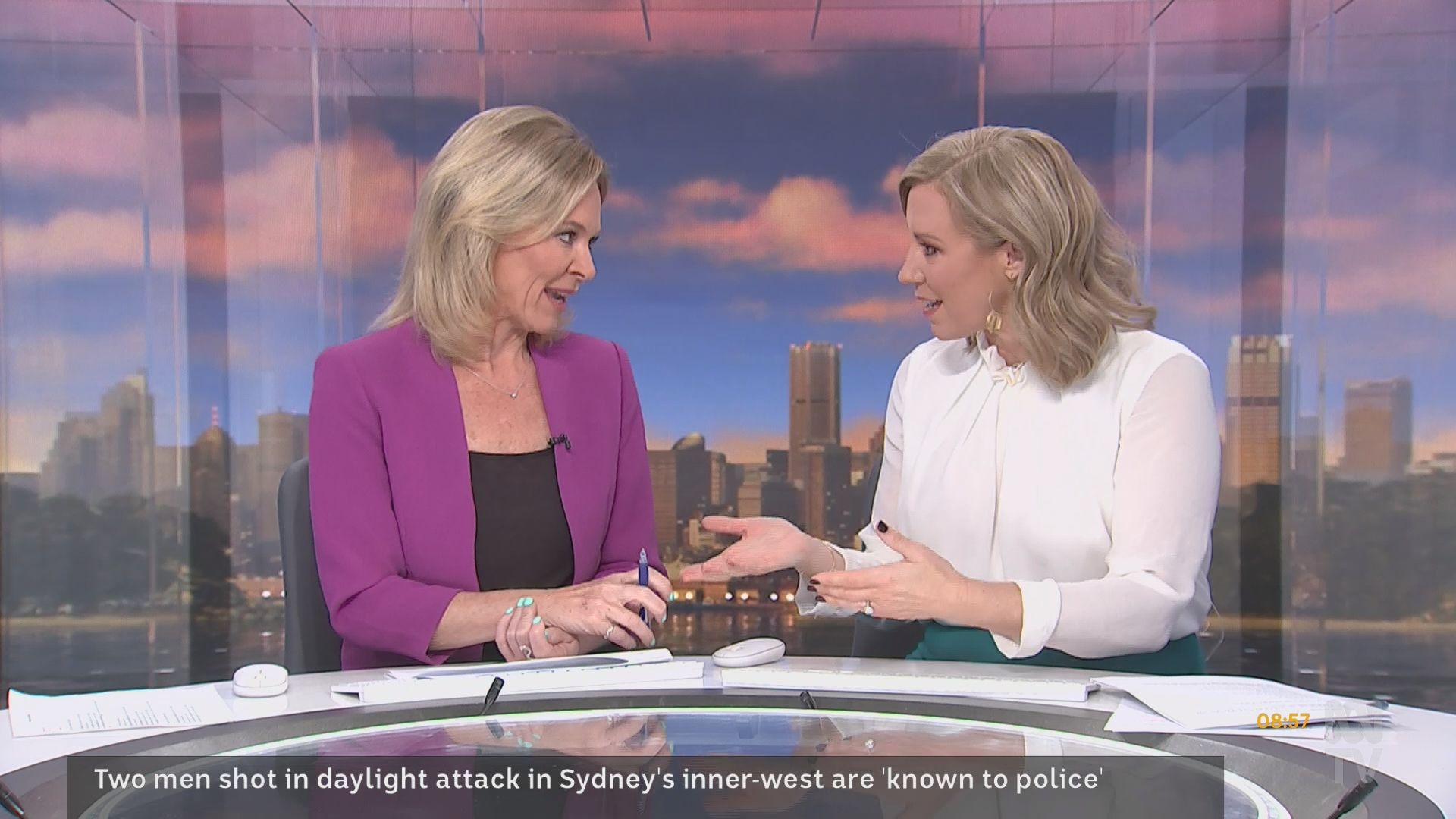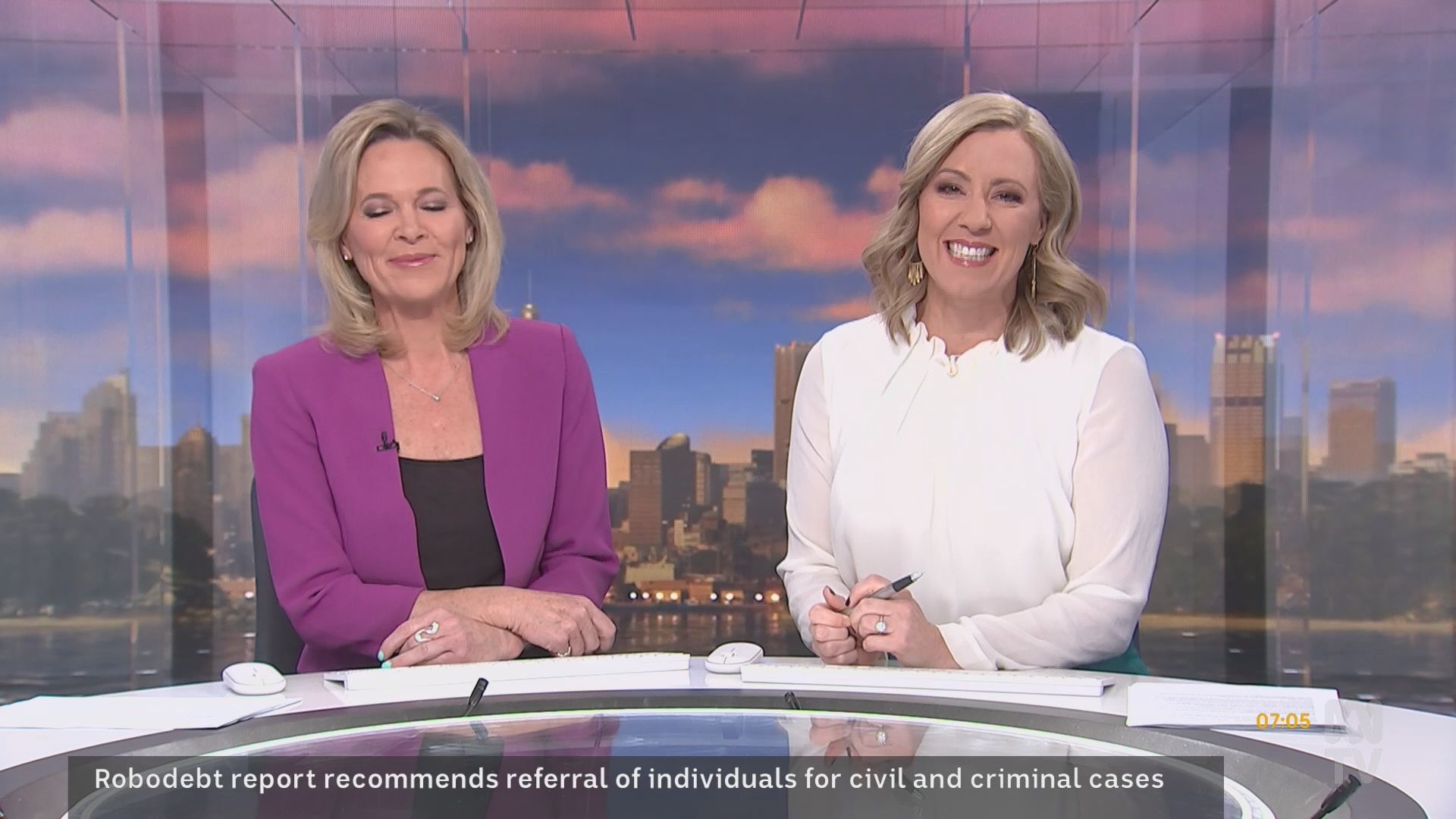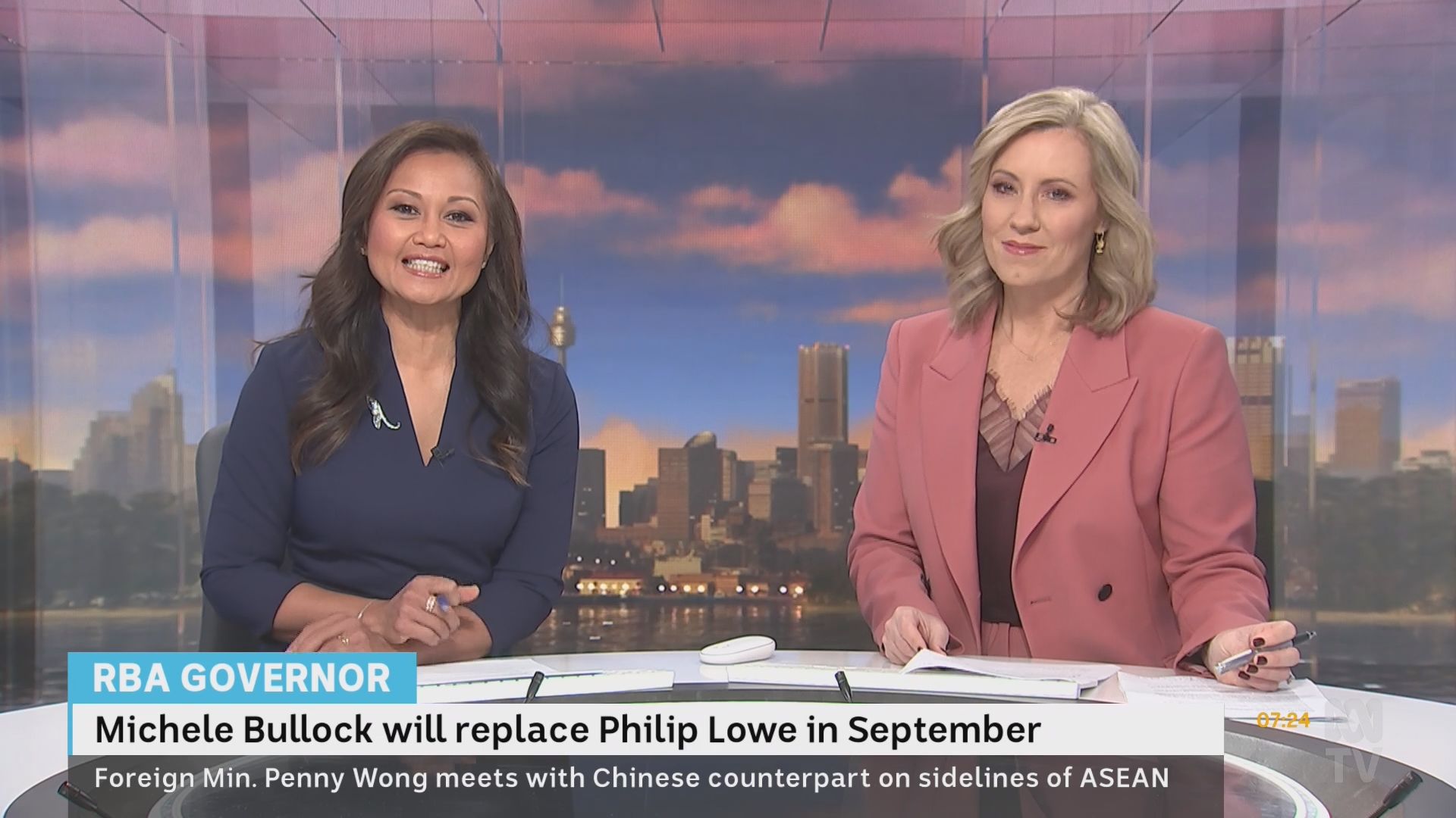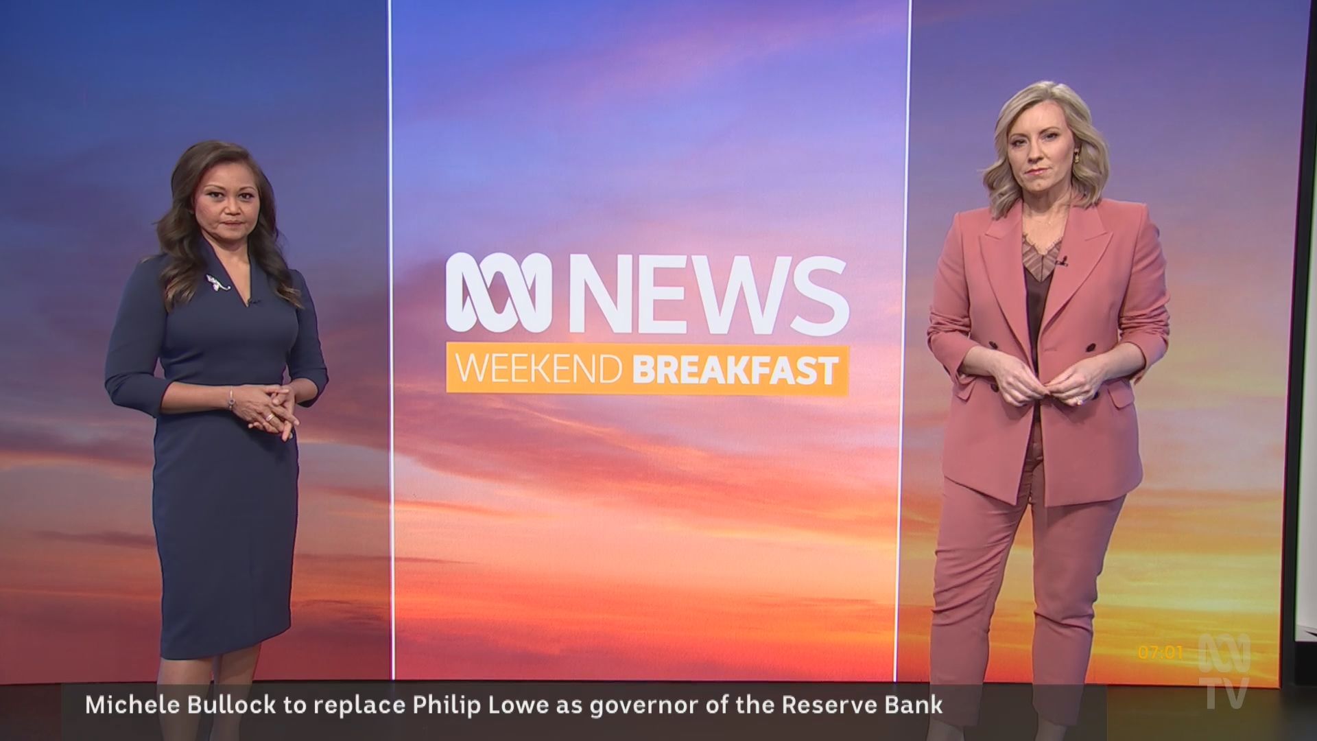 20b, much appreciated caps of Kath over the last fortnight.... and cr4, your smorgasbord is a most welcome addition! I got the school holiday exodus wrong.... Fauziah missing and not Kath! Kath had to once again rescue The Drum last Friday night, with Julia Baird pulling out of her scheduled hosting? The worst possible fill-in for Kath.... The Drum finishing at 7pm, then home to sleep and up again very early to prepare for the 7am start on Saturday wb. The ABC asks a lot of her! So it would appear that wb will feature double blondes for the holiday period. I'm not sure whether Lorna and Kath have paired up before ..... Lorna, with her conservative British reserve, looks a little bewildered by Kath's energetic approach to hosting. Kath is a brilliant ad libber .... quick-witted, while seamlessly interspersing news segments without missing a beat, an energy that carries the program and makes it eminently watchable. She's sexy, she's flirty ... she is simply gorgeous. But what is going on with the first finger on her right hand .... for weeks now it is the only finger where the nail has not been painted?? Curiouser and curiouser....