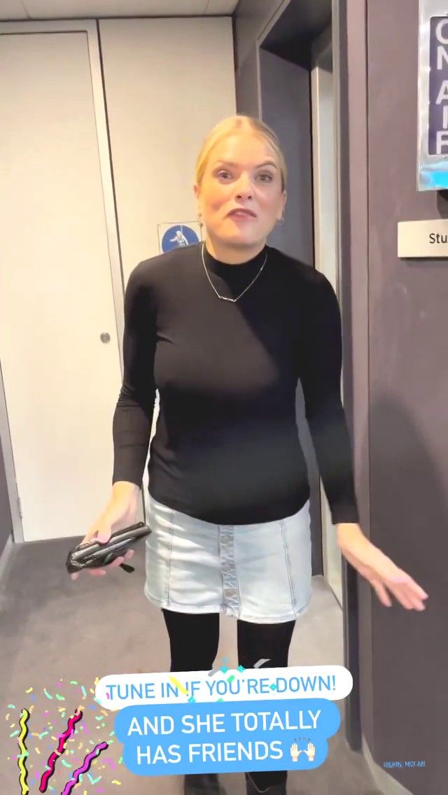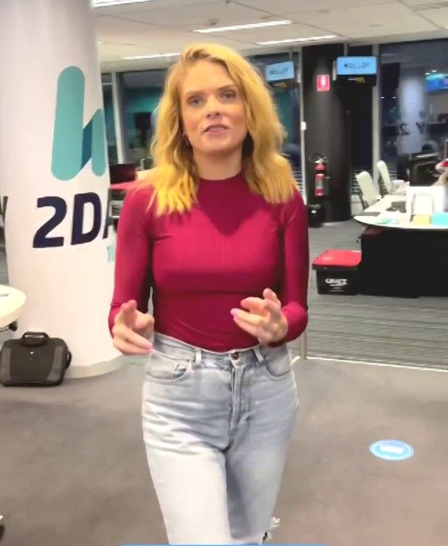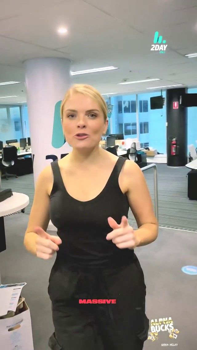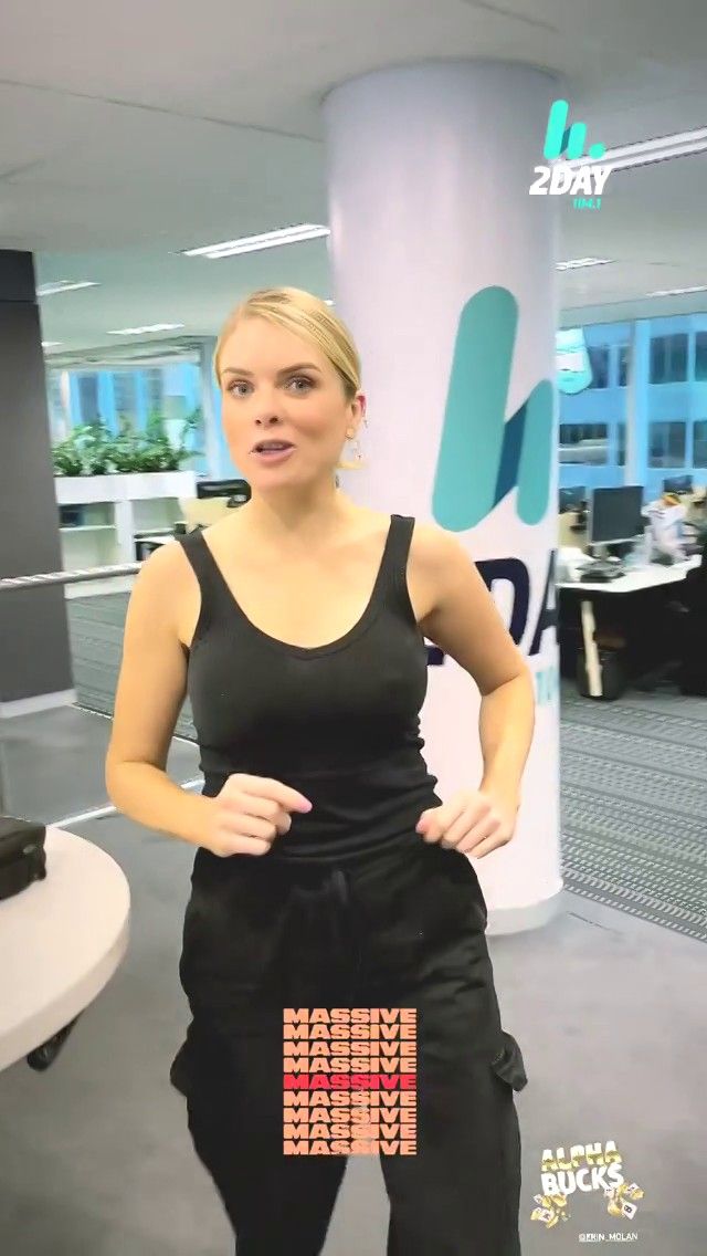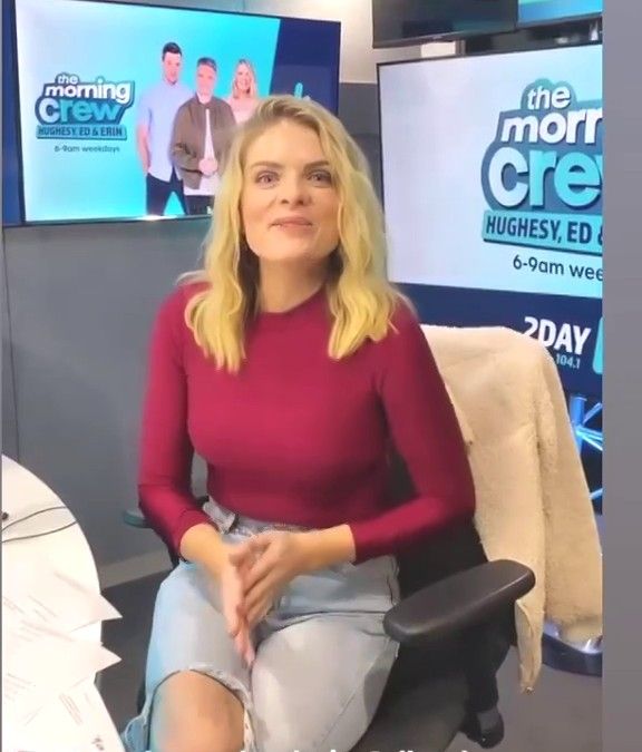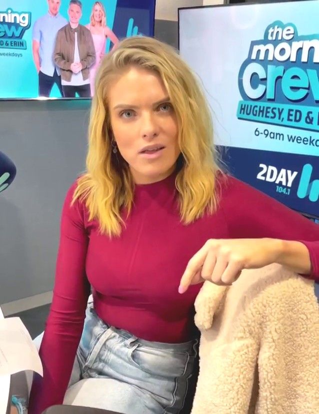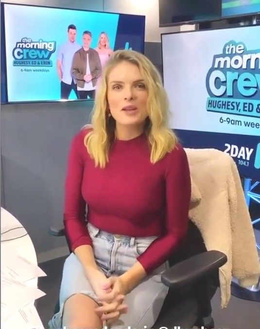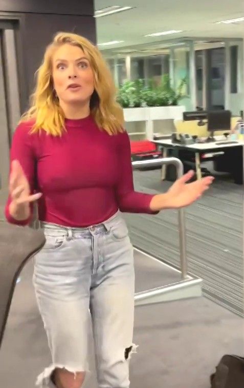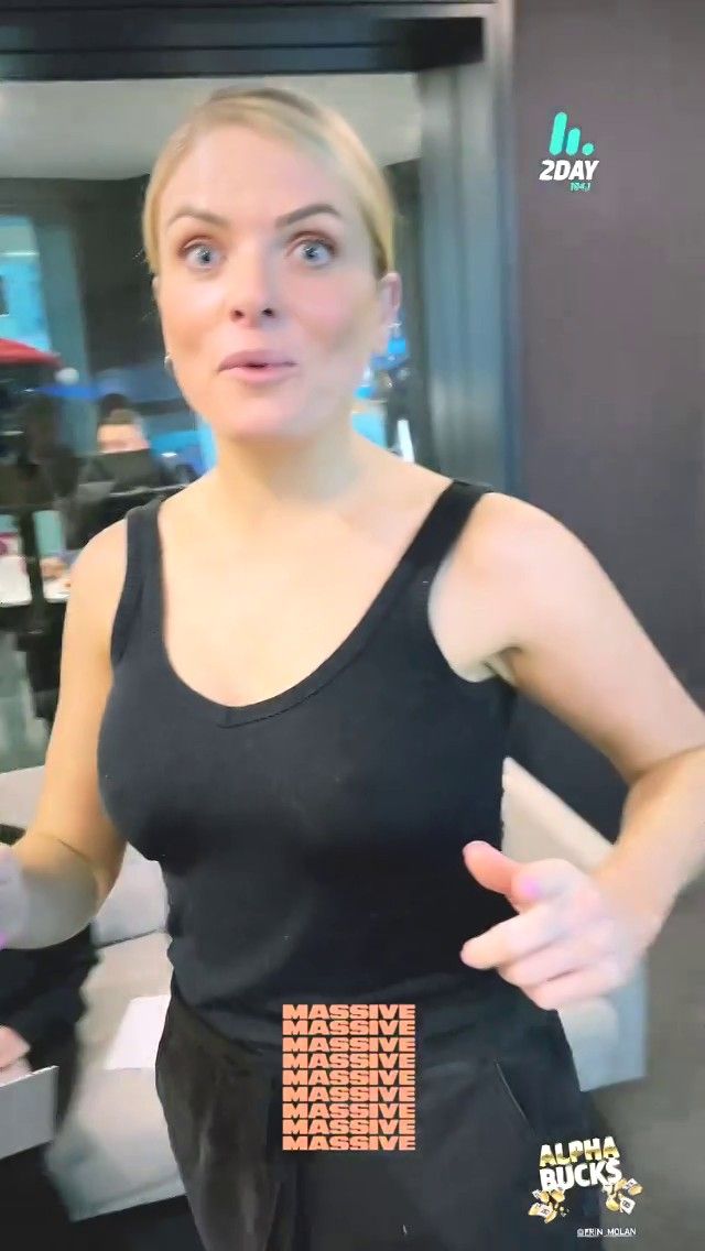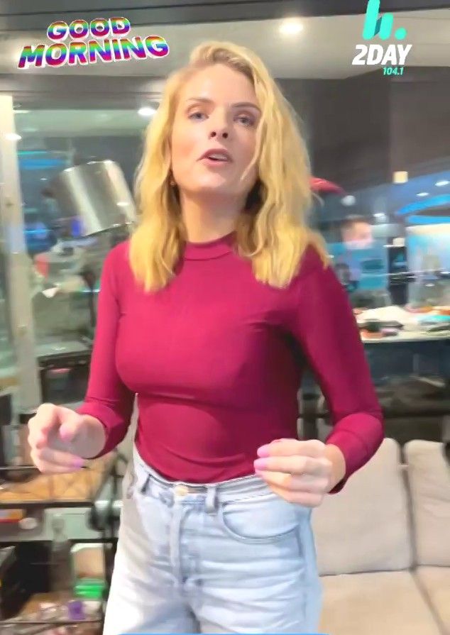 Doesn't mind not having a bra for her radio gig