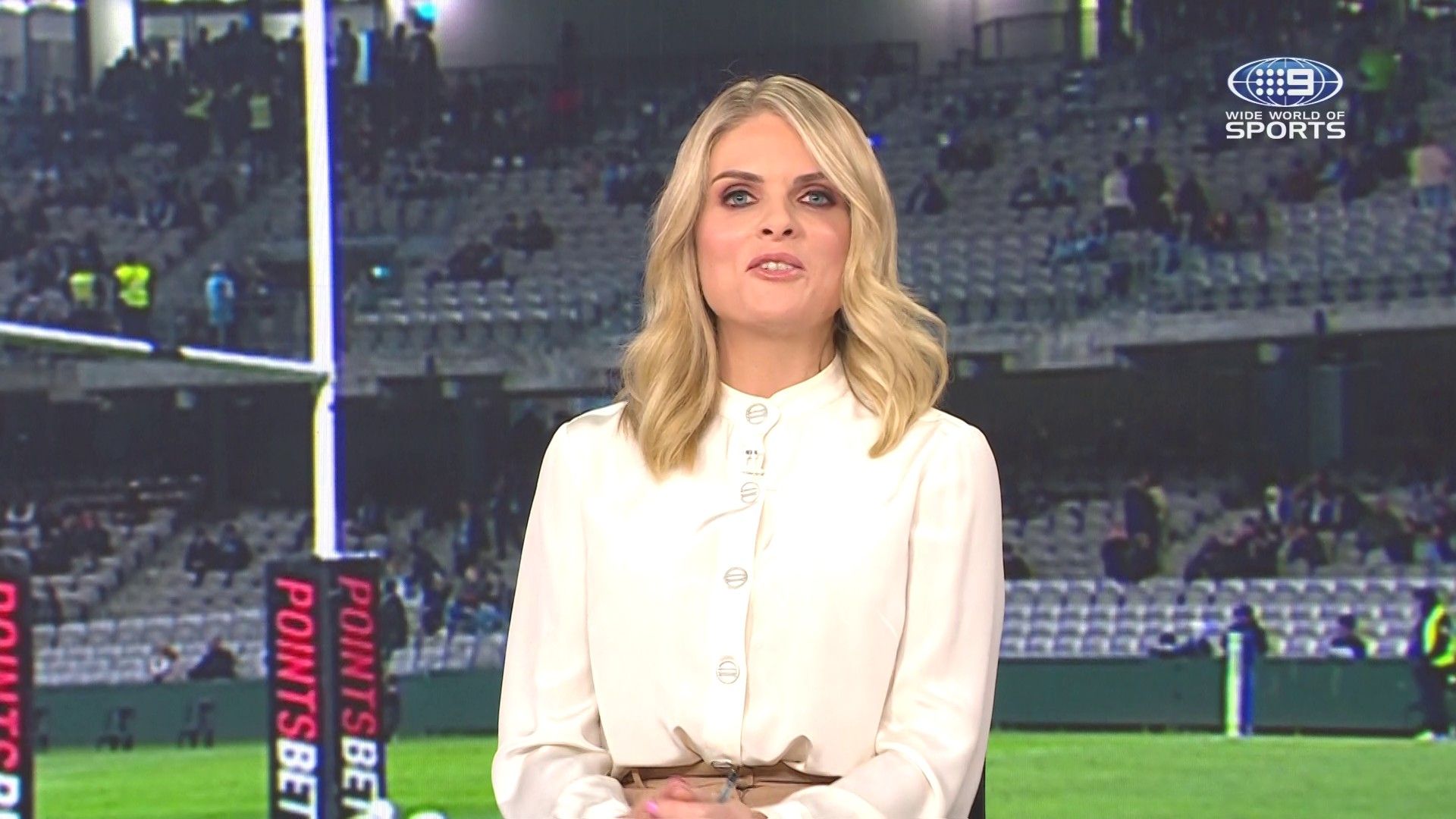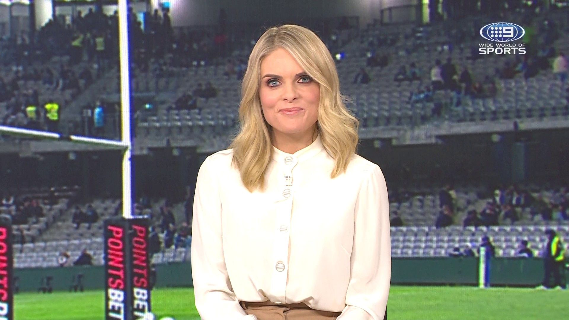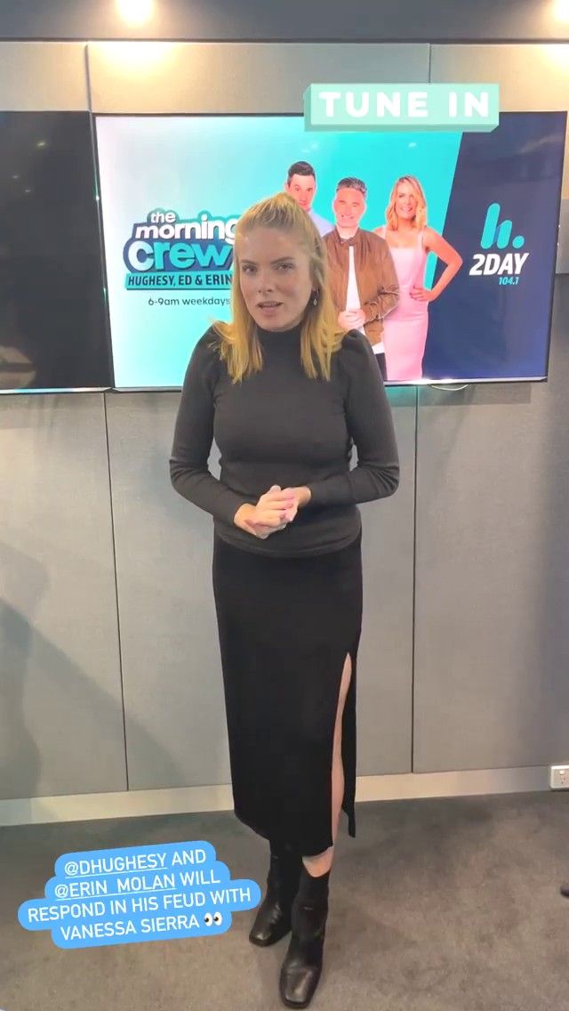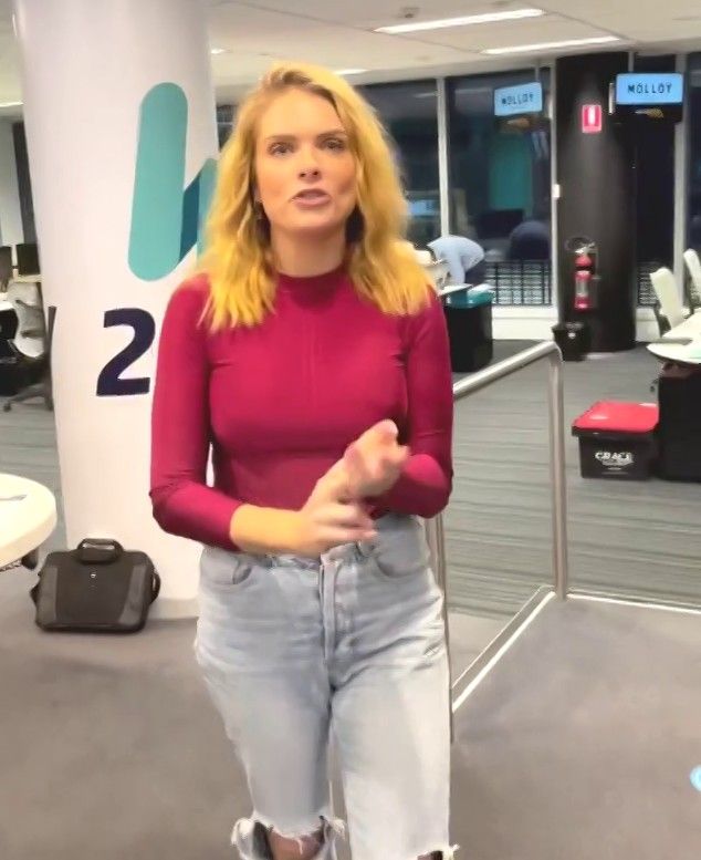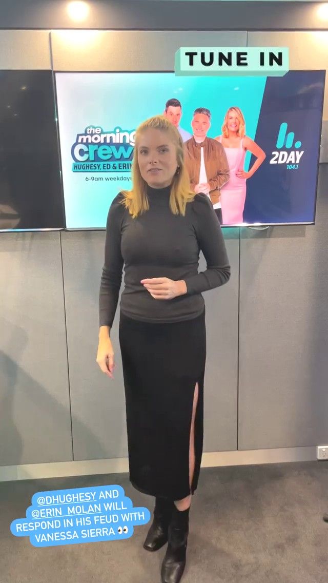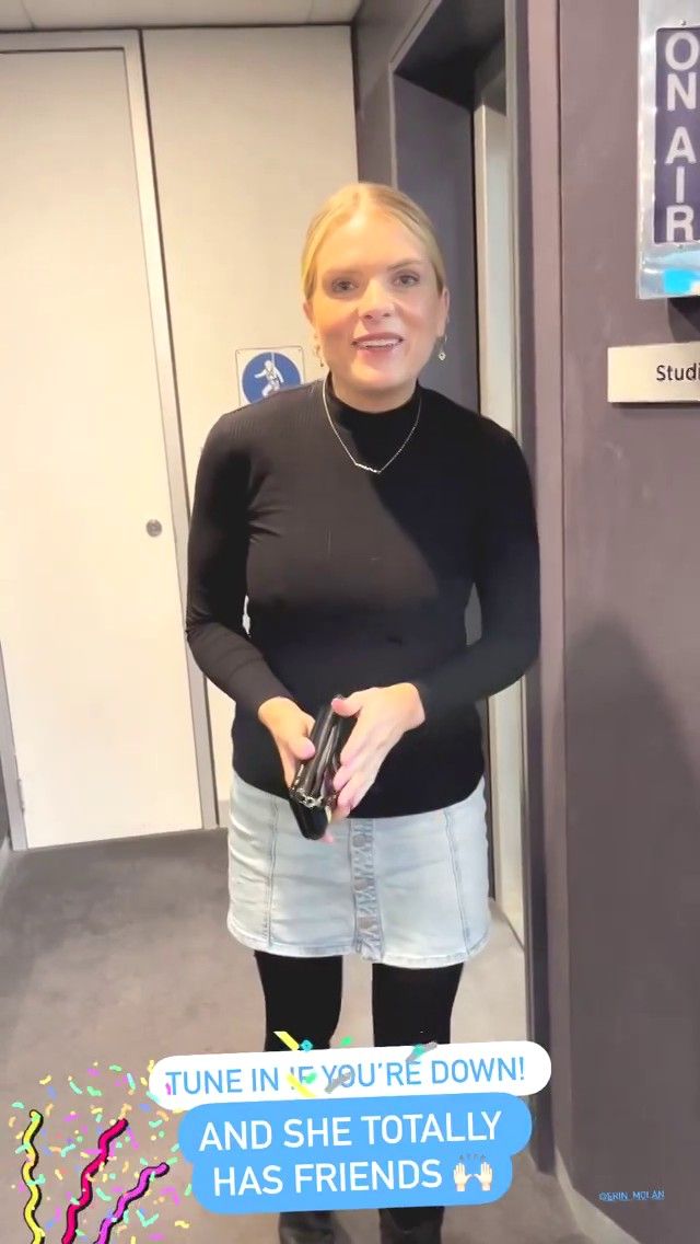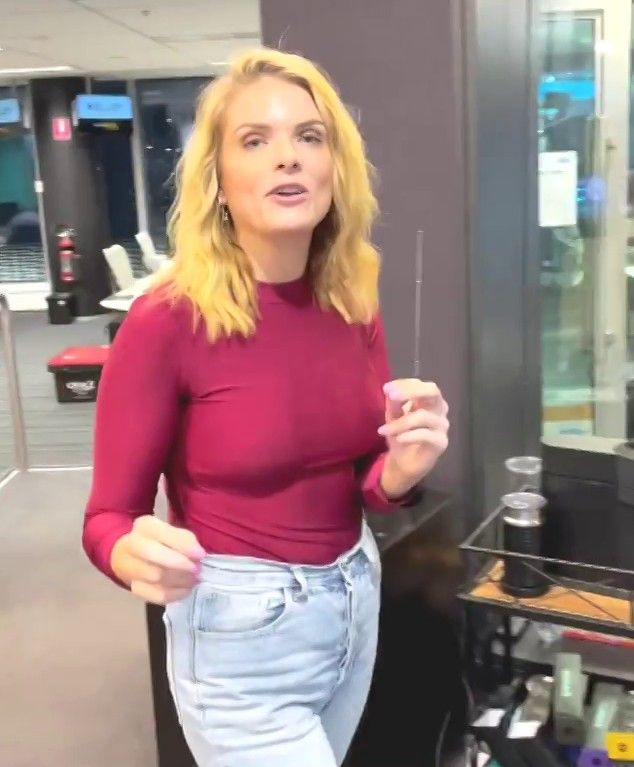 Doesn't mind not having a bra for her radio gig