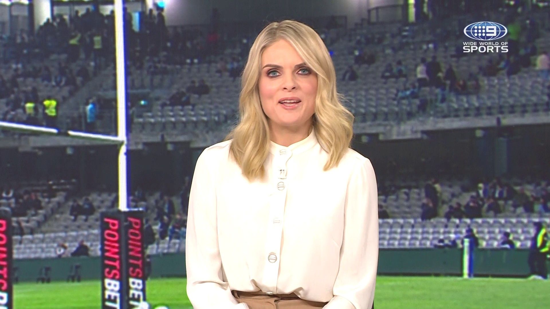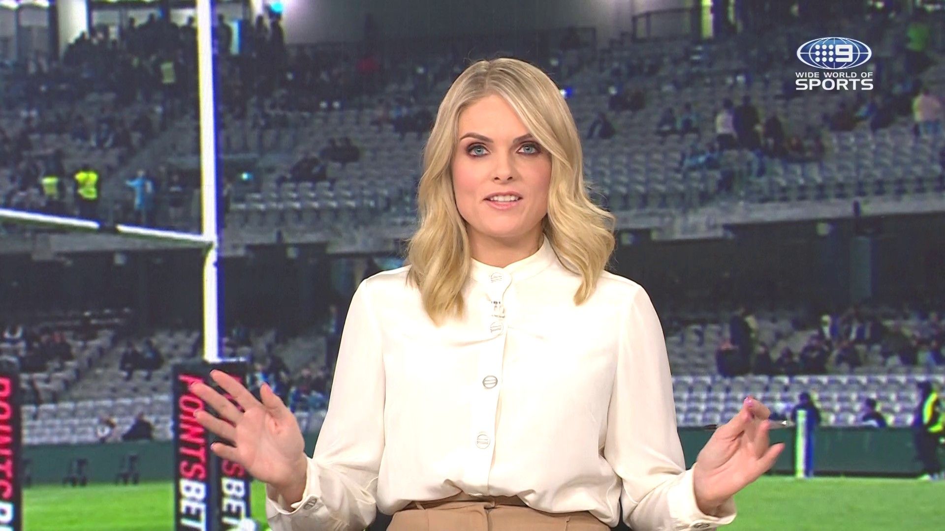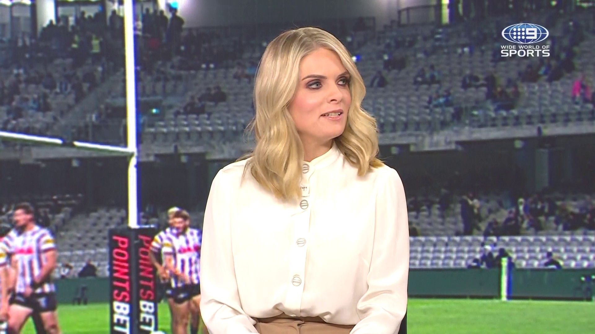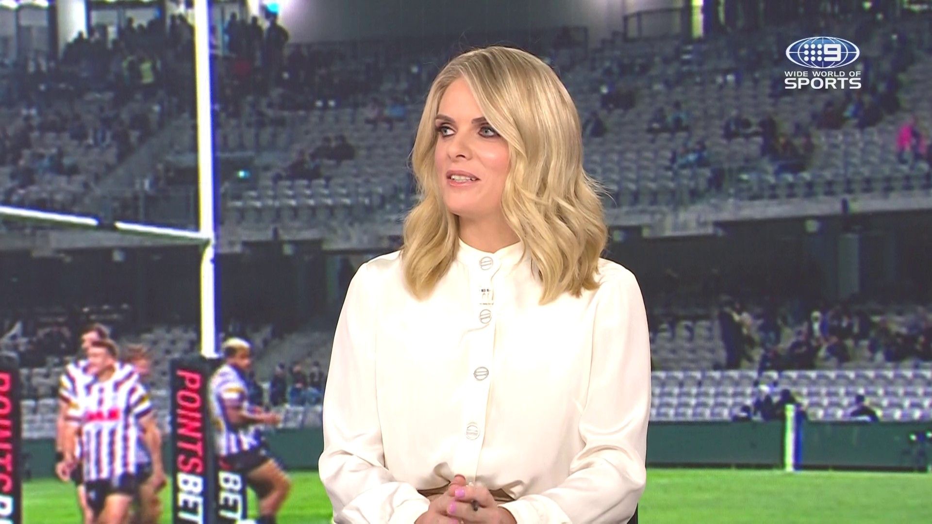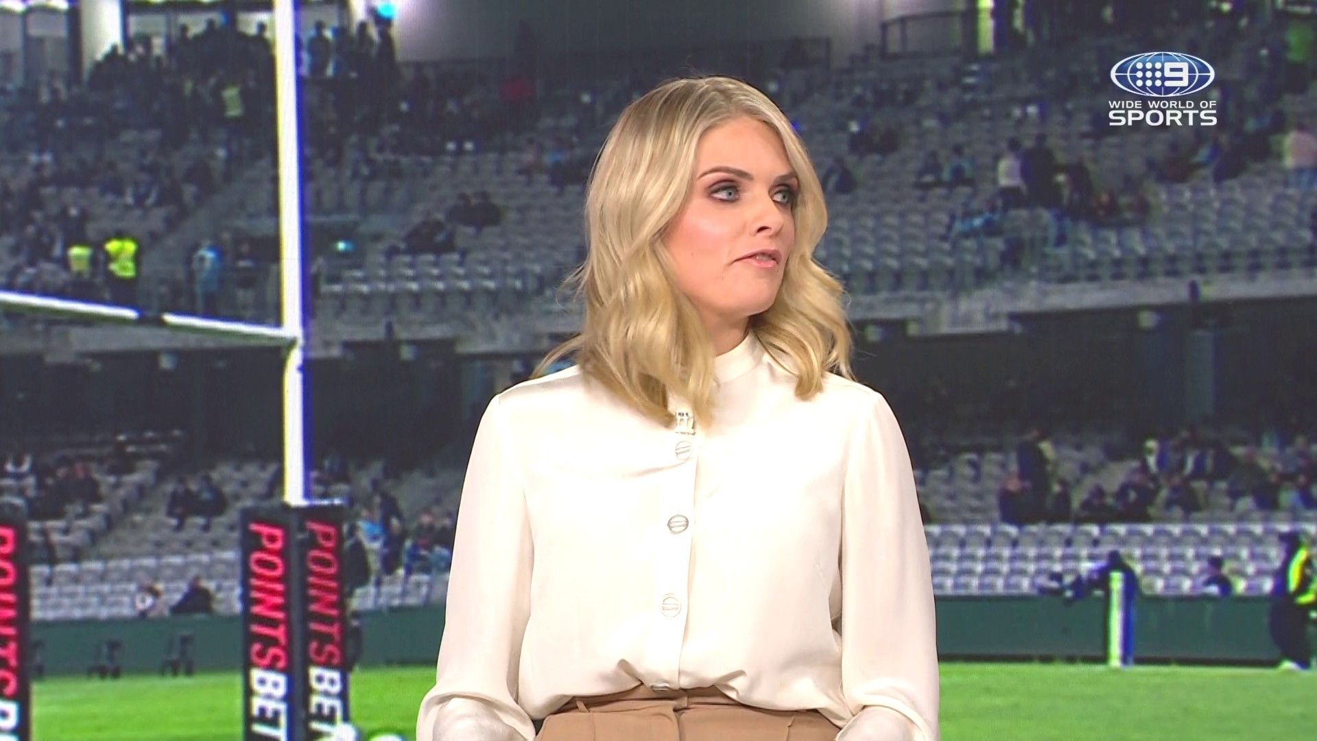 Doesn't mind not having a bra for her radio gig