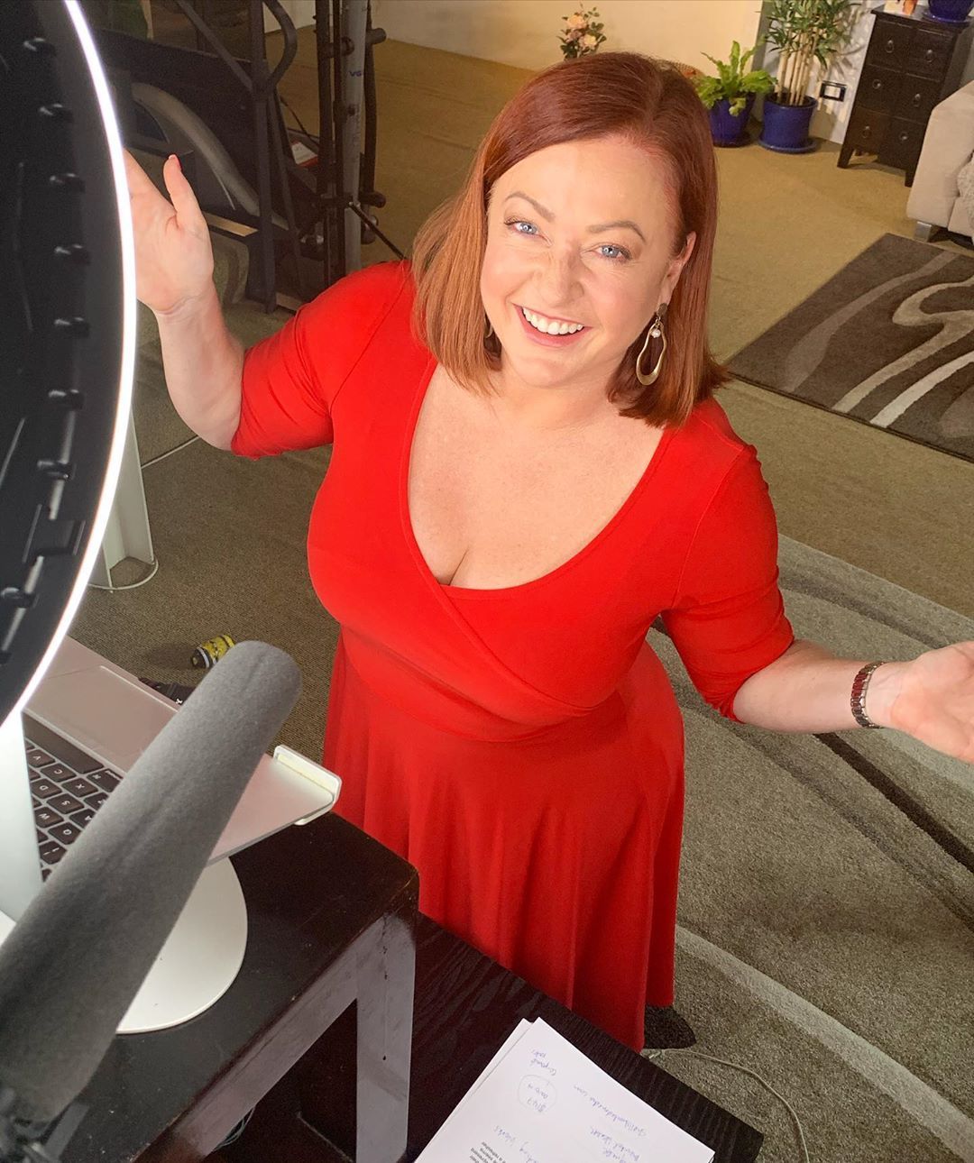 It would appear that 'social distancing' now applies to her cleavage..