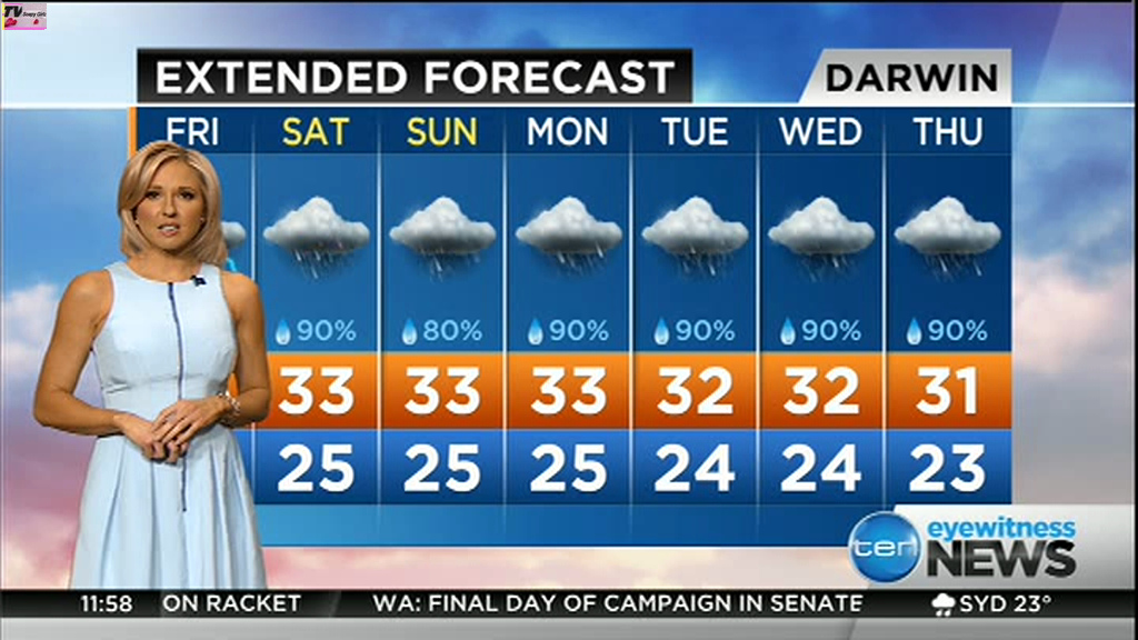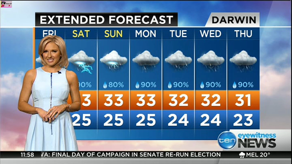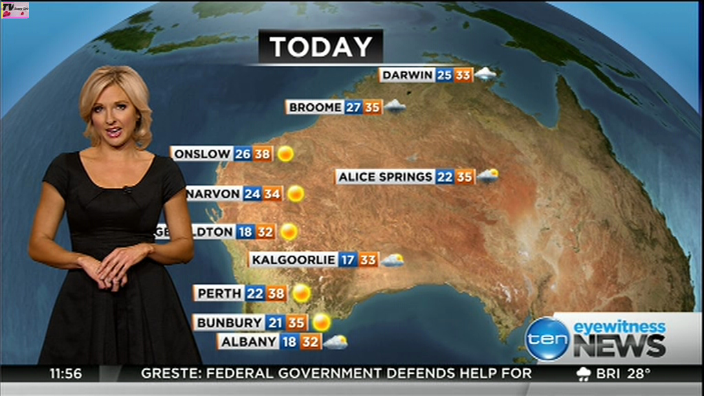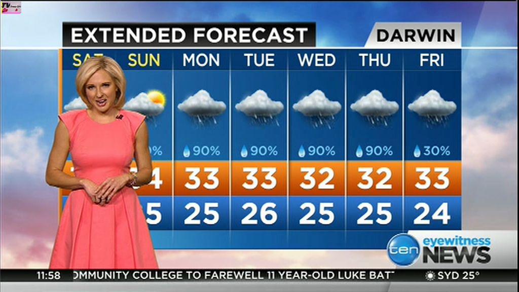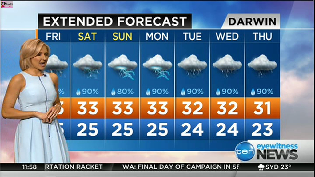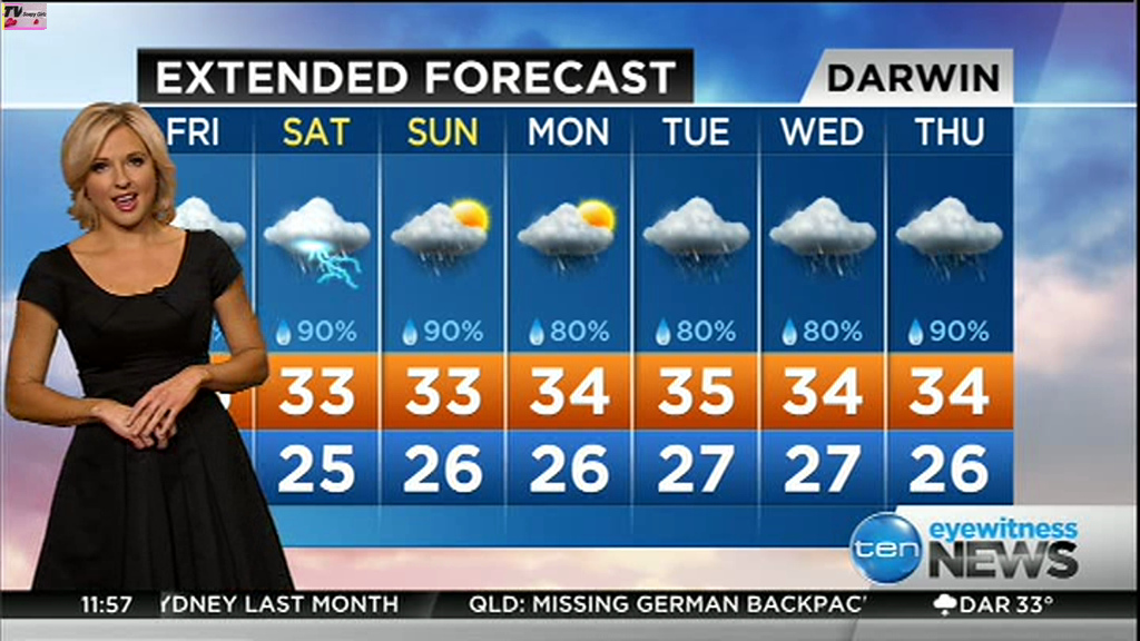 atefooterz wrote: phunkyfeelone wrote: Note the bra strap, it fell down, she walked completely out of shot, then in her mike you could hear muffling, when she came back in shot it was back up  Haha i deleted that vid days ago so damm, i will take your word for it lol You can see between the last shot of the forecast caps (Darwin) and the others, one of them she's heading out of shot, then voila!