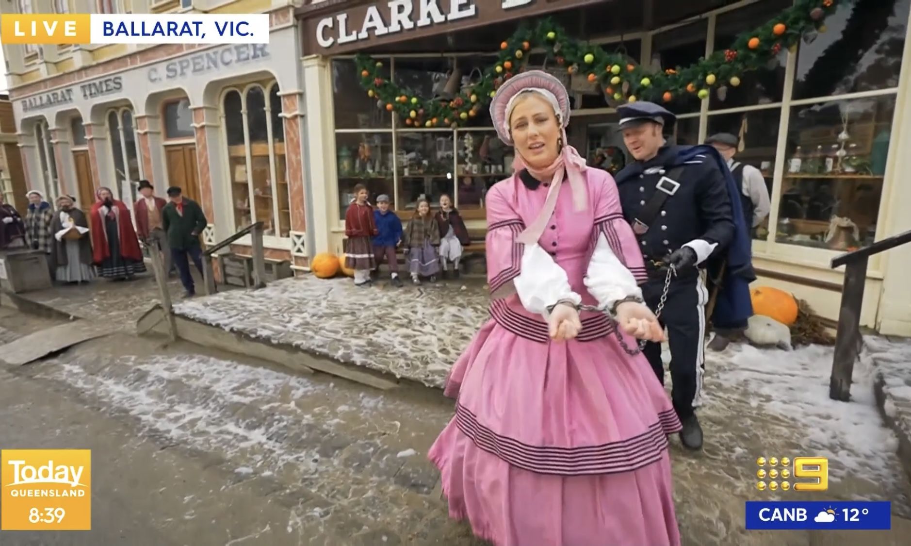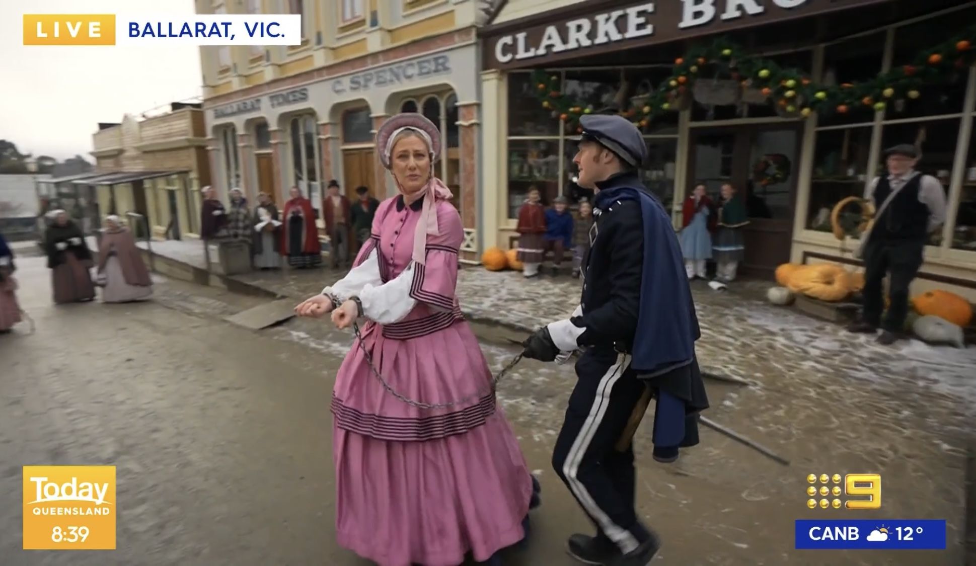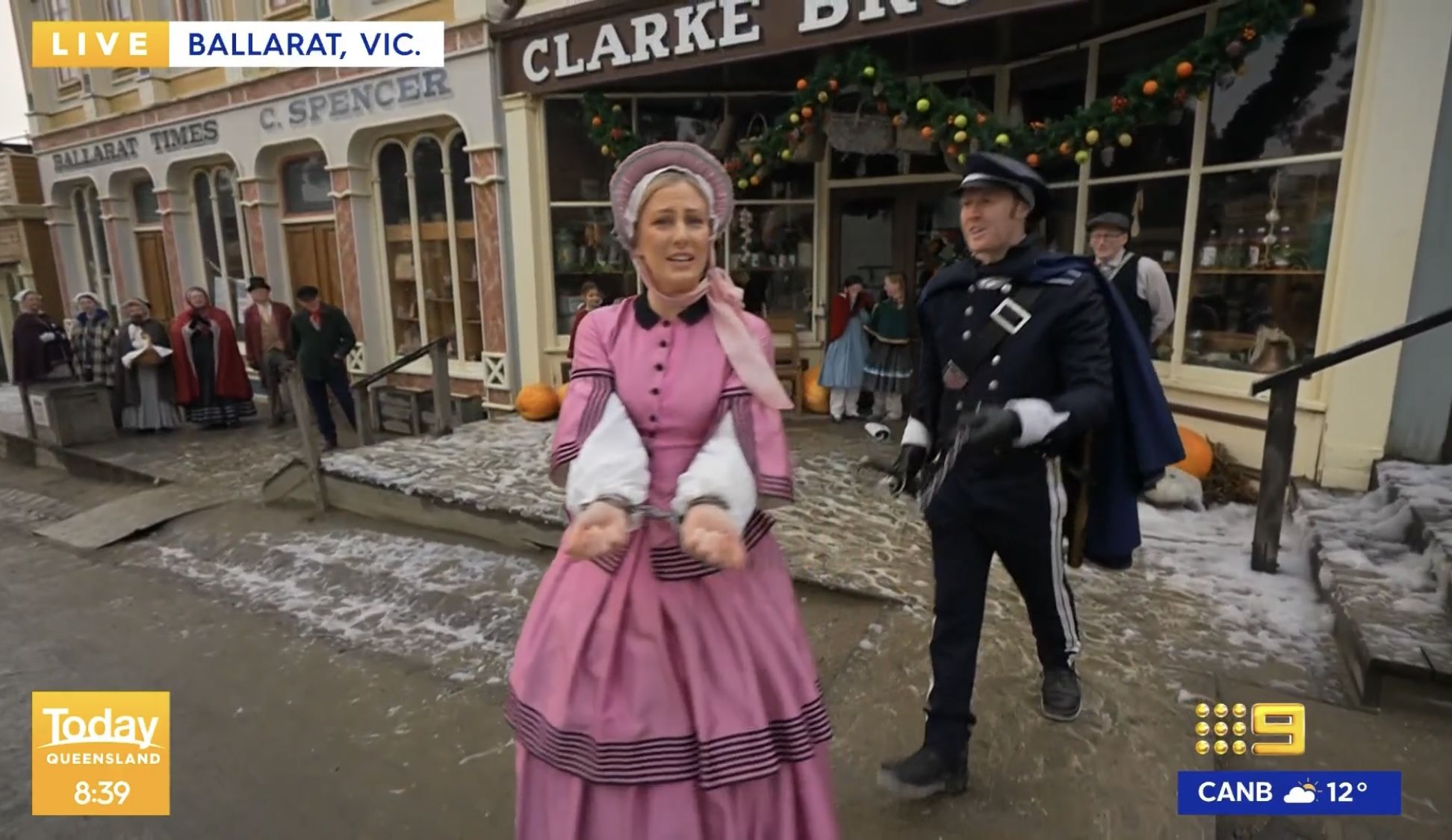 Iza playing dress-ups in Ballarat and getting dragged off in irons a little too enthusiastically if I’m honest, asking on the way is there anything she can do to get out of being arrested