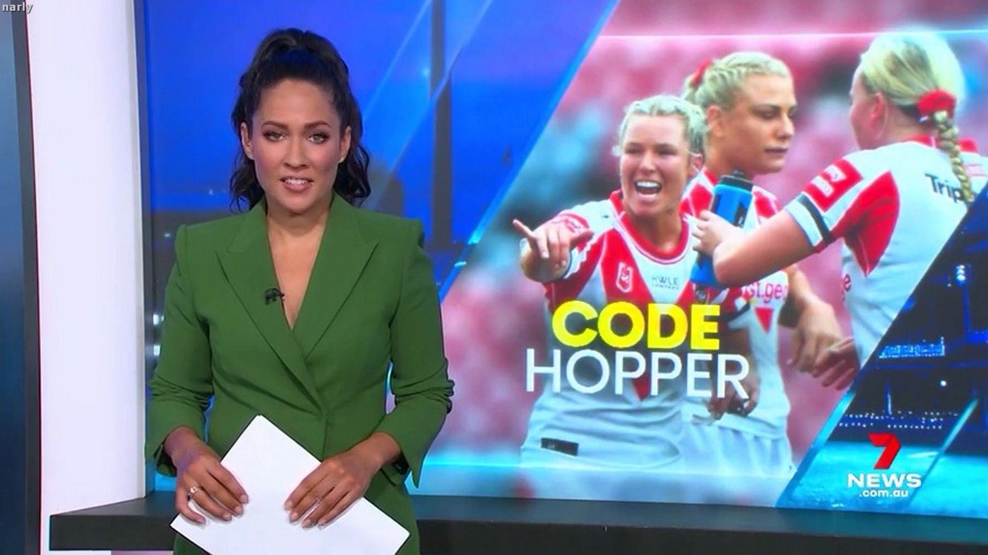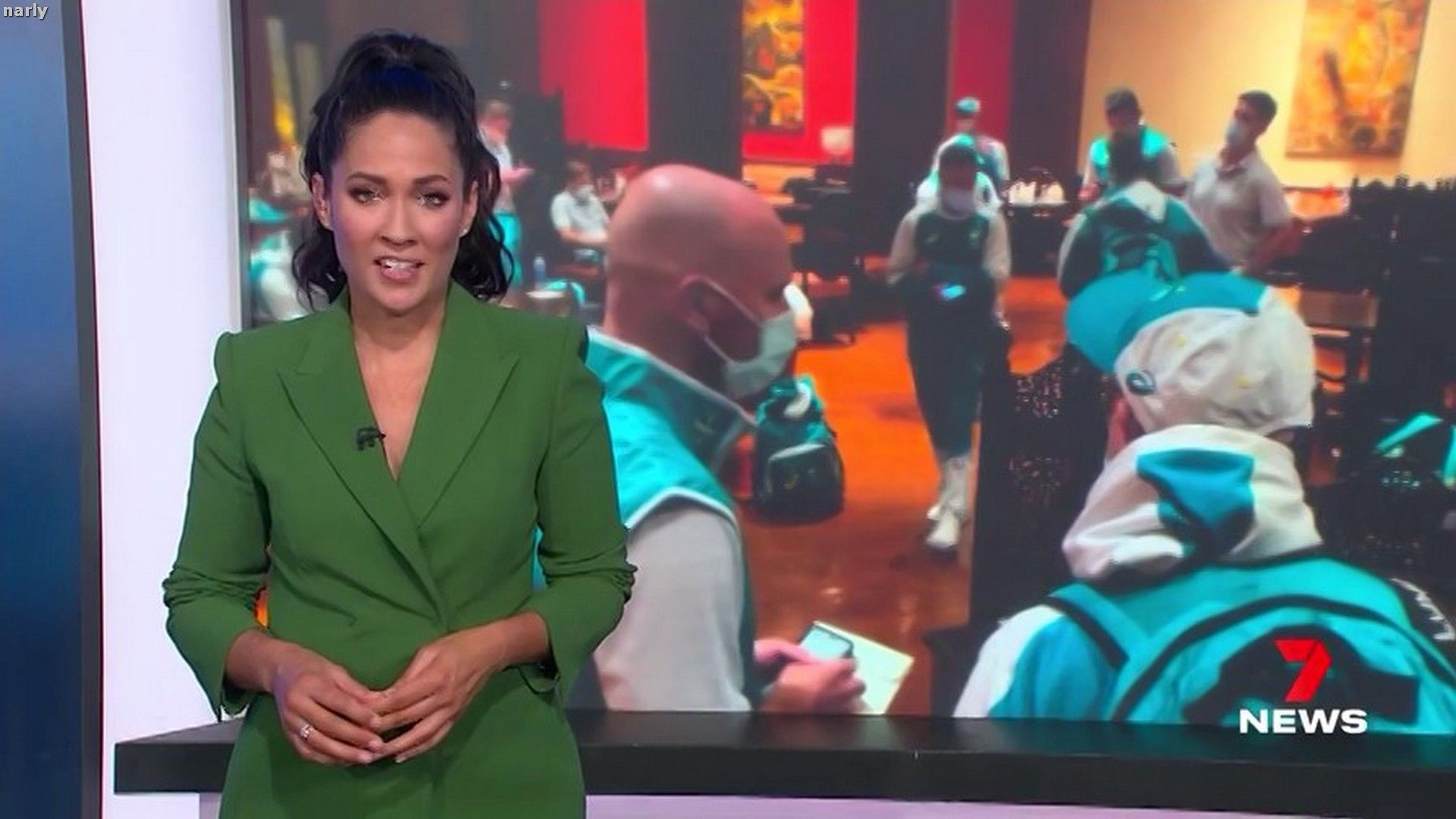 Nice shots of Mel's green Wiggle outfit, narly !