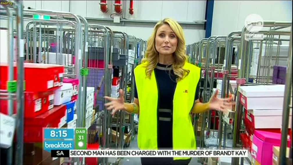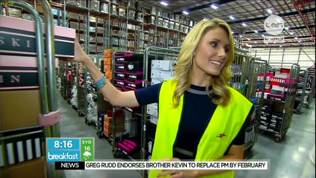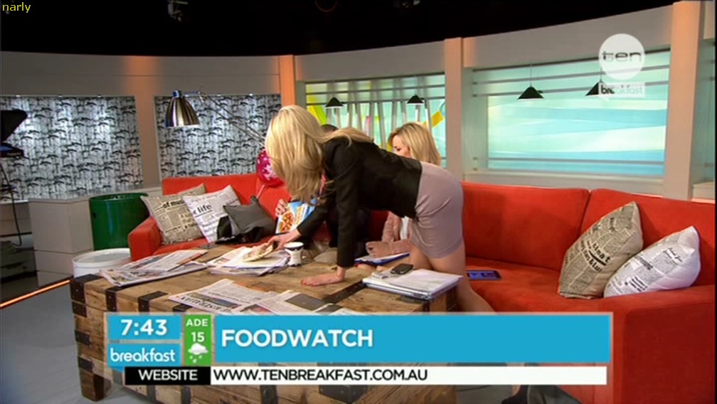 7.44am Mags comes over to Paul and Kathryn bends over to grab a Weight Watches pizza then walks off. One of the best arse on Aussie TV at the moment