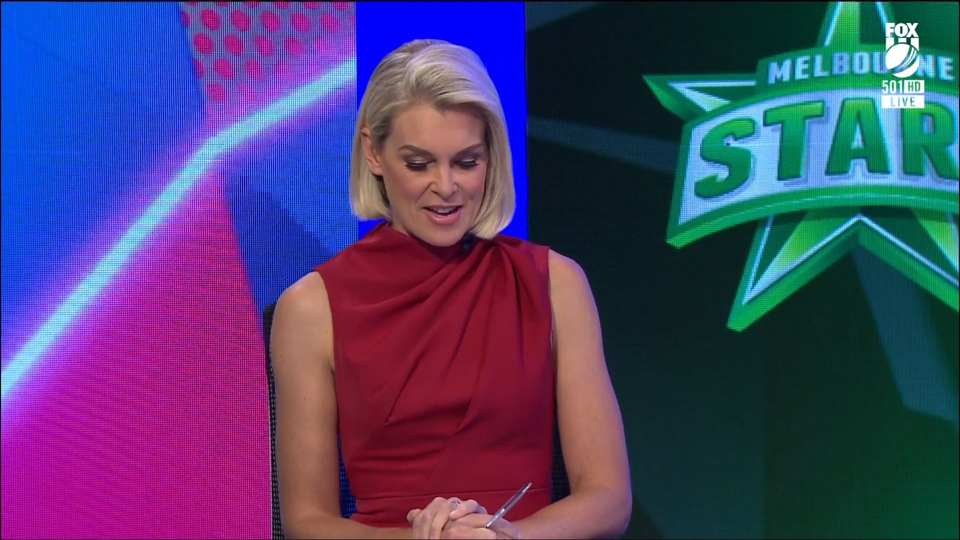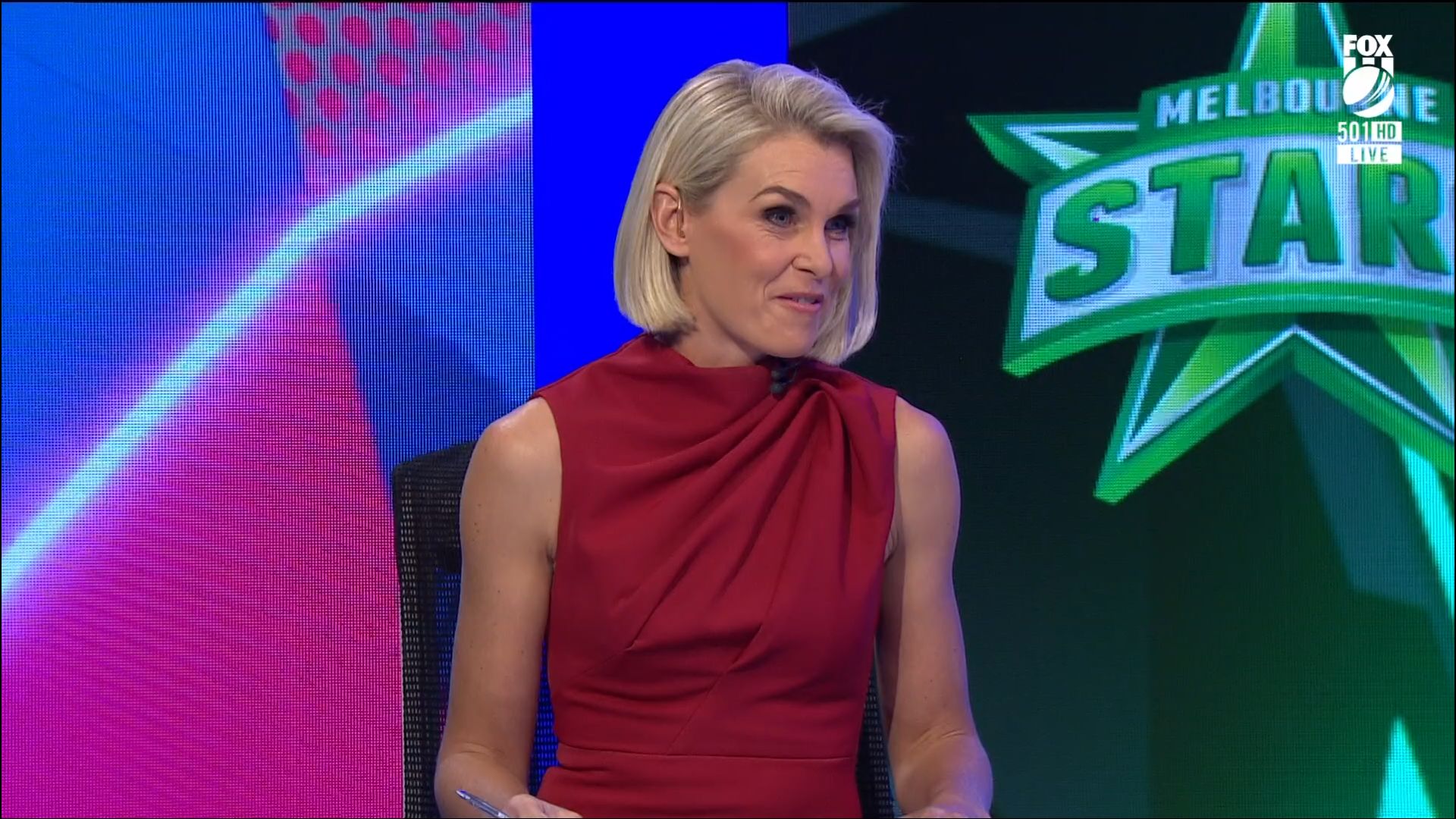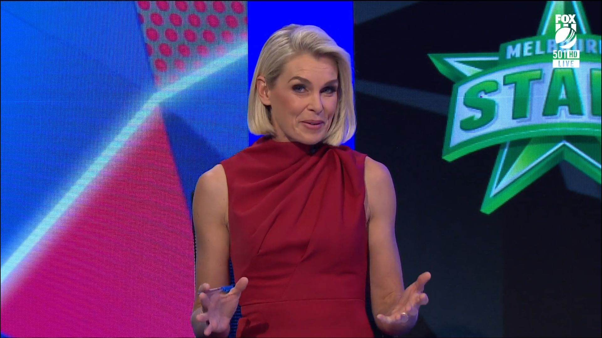 Sarah on hosting duties on a friday night BBL match on Fox Cricket 10 Dec 2021