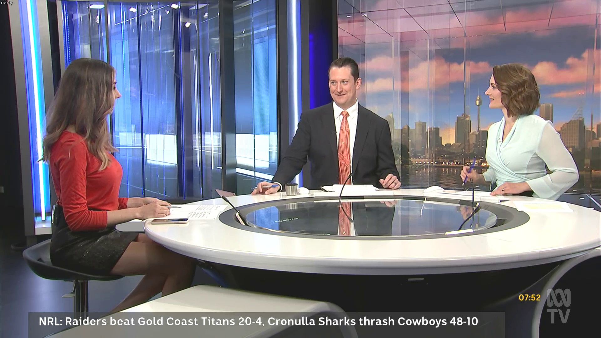 Don’t think I’ve ever seen a skirt so short on an ABC journalist. Thanks narly