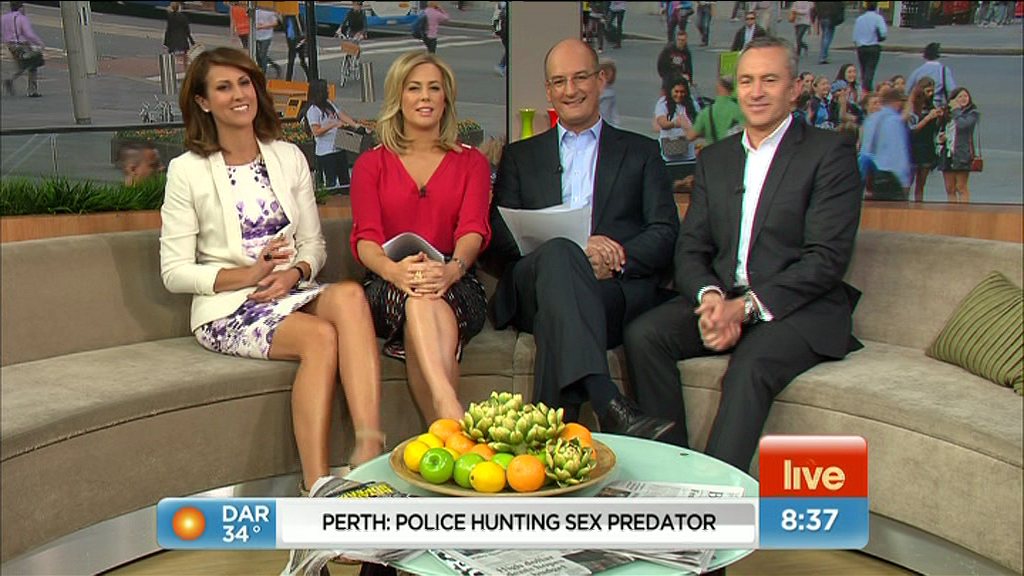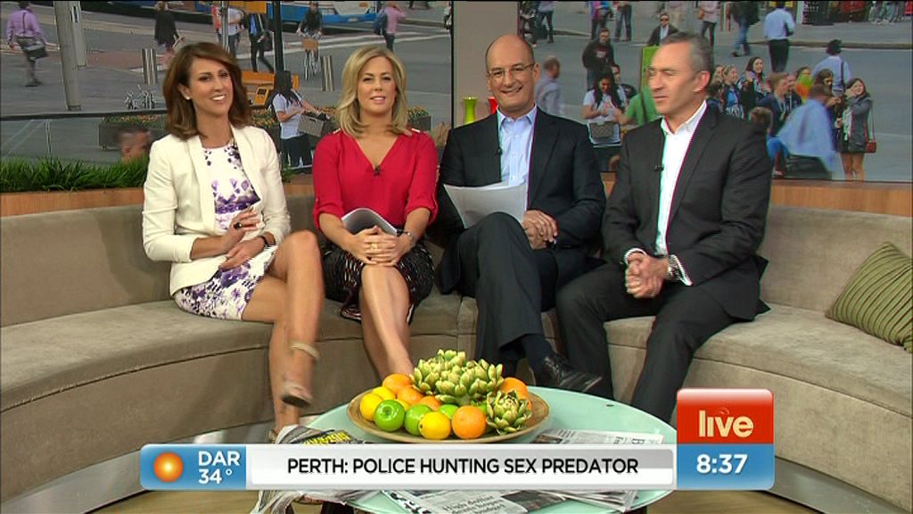 I adore Natalie Barr's bare thighs. The more we see of them, the better. Her inner thighs would rate amongst the best few on Australian TV. In fact the whole Nat Barr head to toe package has never looked better in my opinion. She's trading at a career hotness high over the past 12 months and ongoing.
