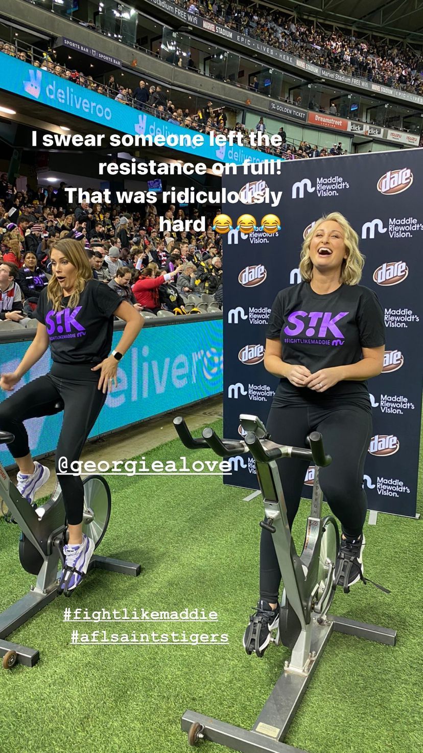 See her on an exercise bike during St Kilda Richmond game tonight