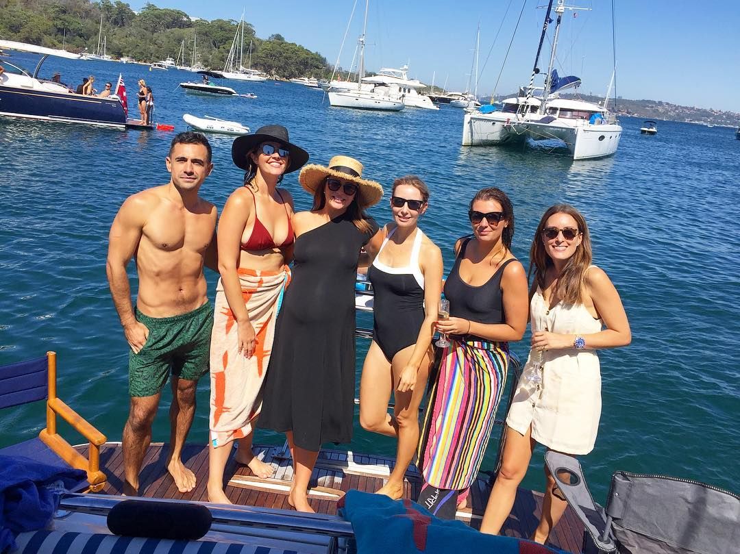 Next to a very pregnant Kate Creedon who looks ready to pop. Gabrielle Boyle is there also. Always great ''off the field'' camaraderie between the Channel 7 and 9 girls