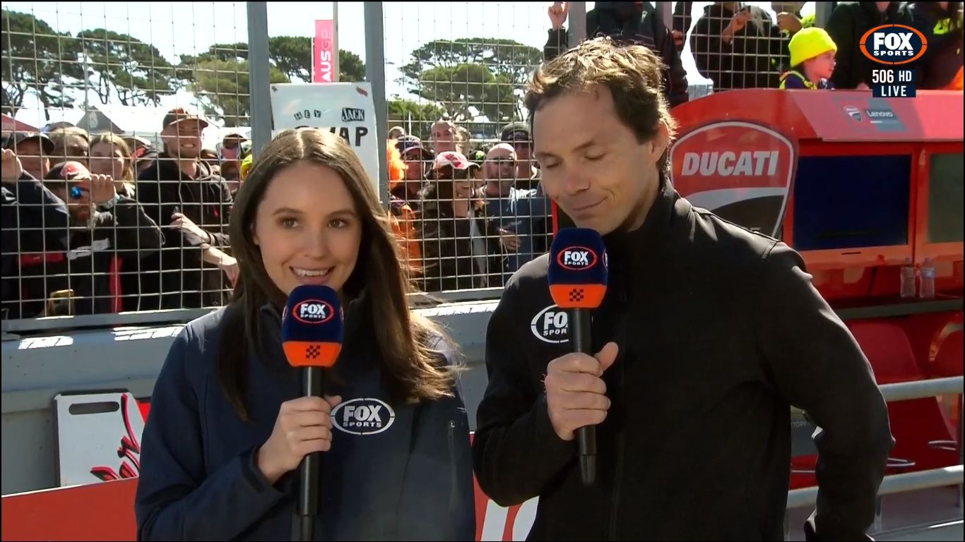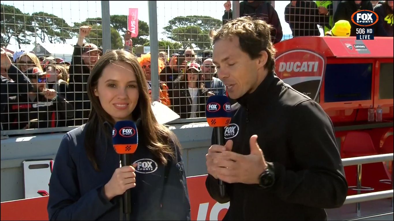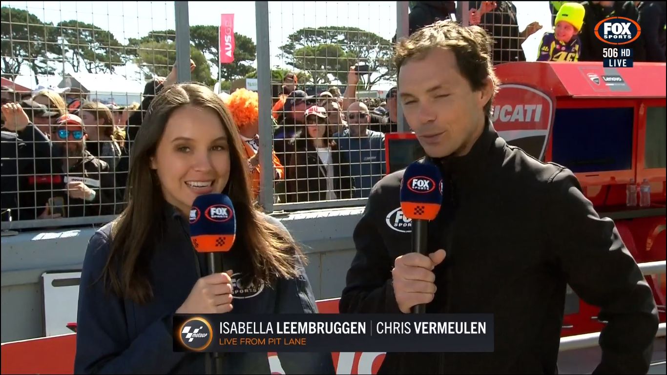 For the whole season, they get Isabella to host the MotoGP coverage. But for the Australian MotoGP weekend, she makes way for big boobs to host.