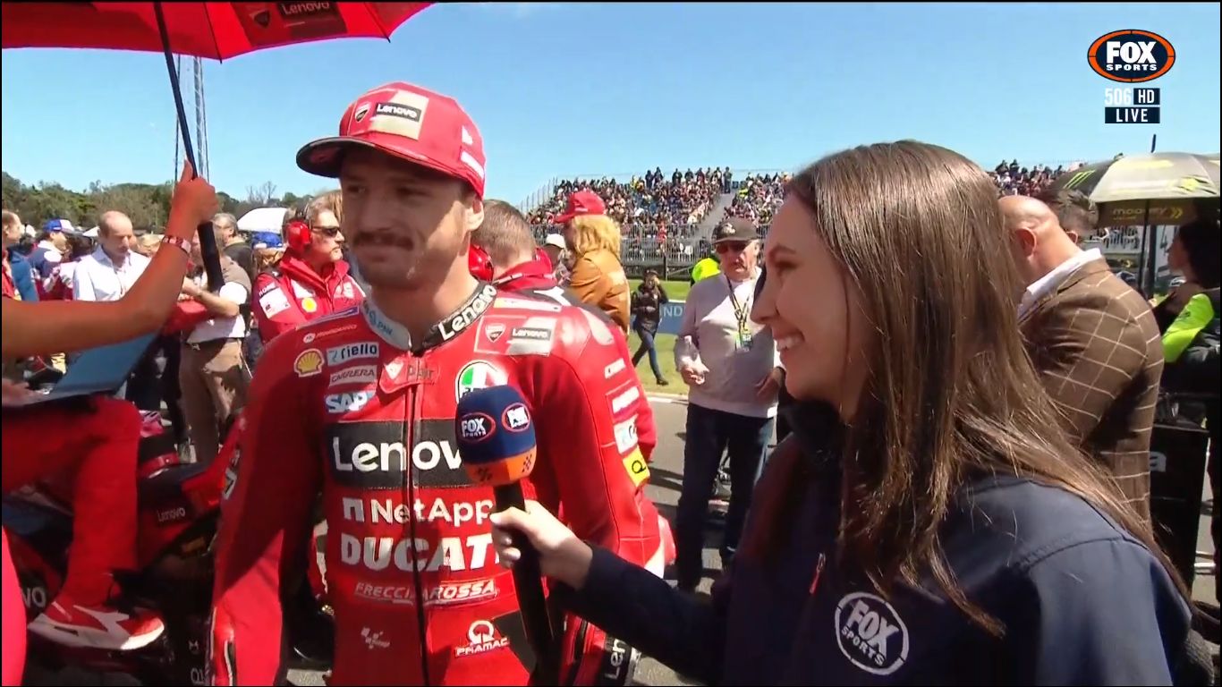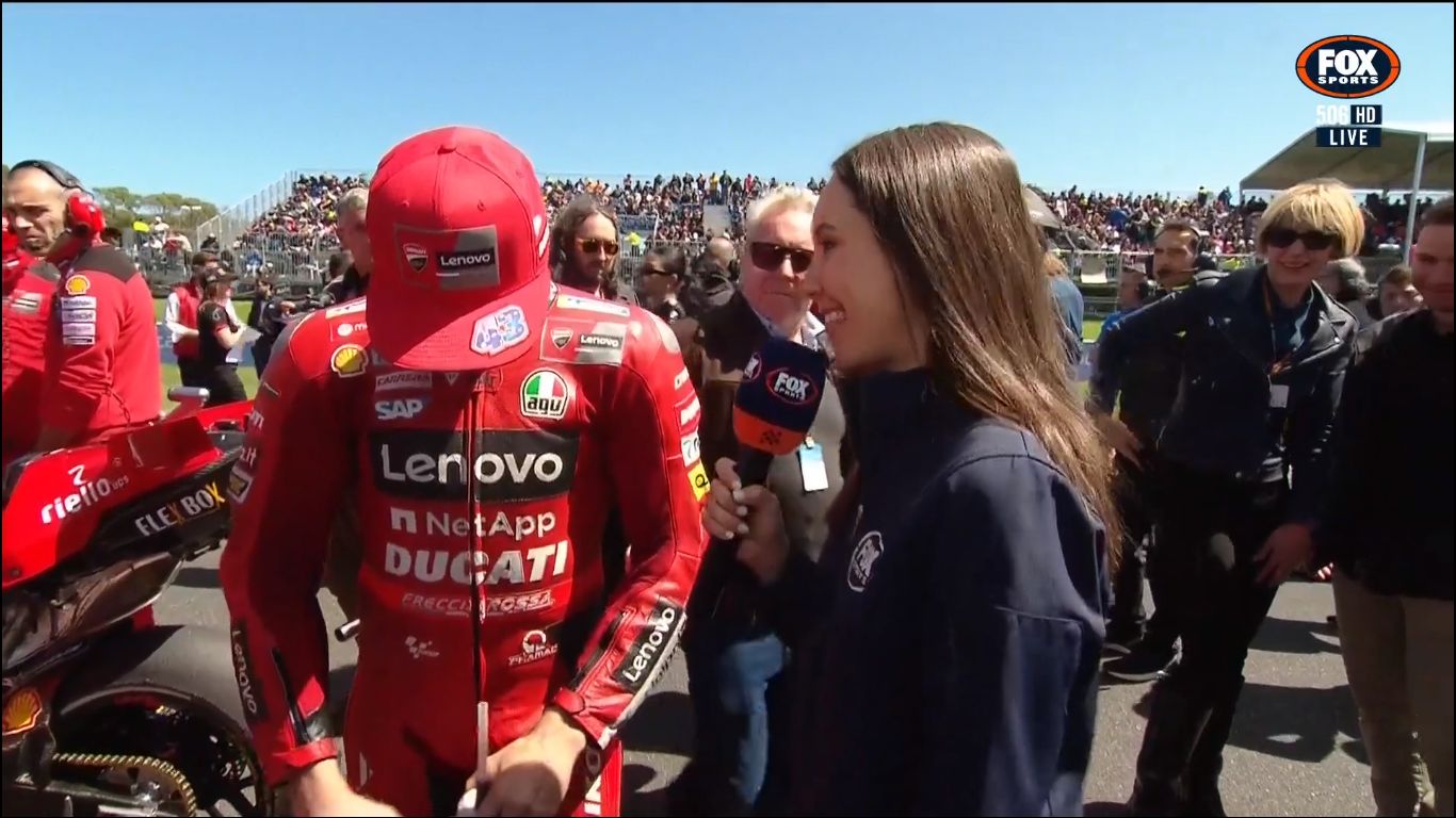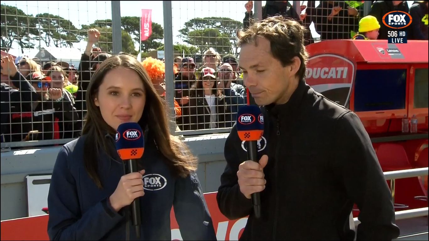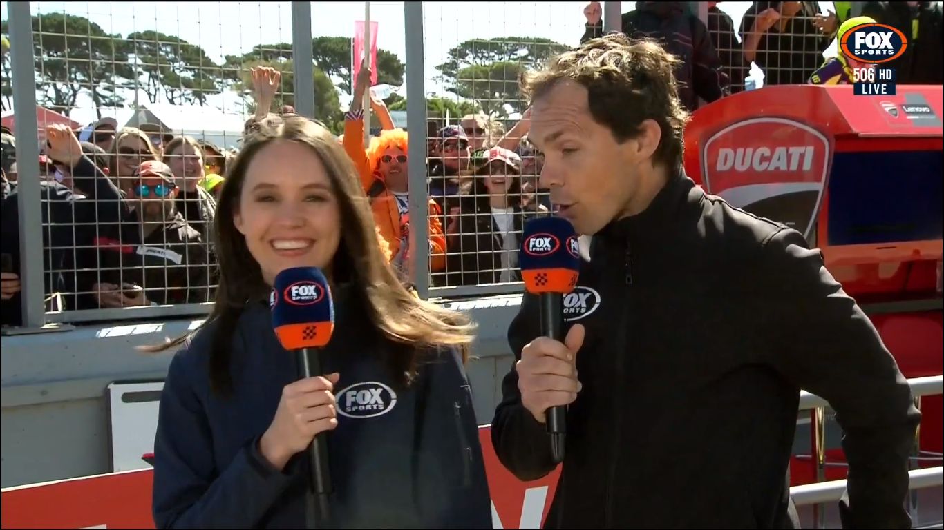 For the whole season, they get Isabella to host the MotoGP coverage. But for the Australian MotoGP weekend, she makes way for big boobs to host.