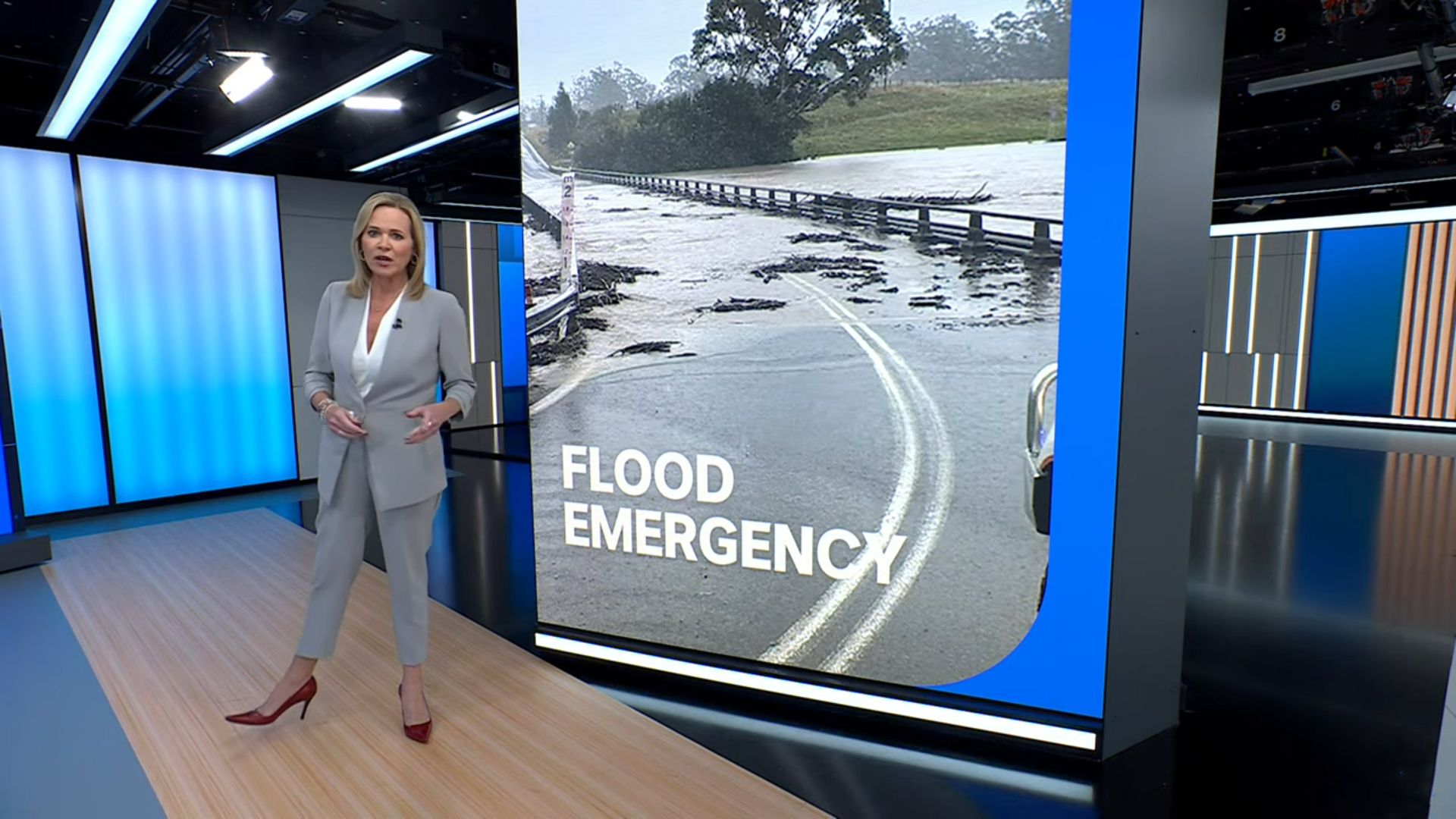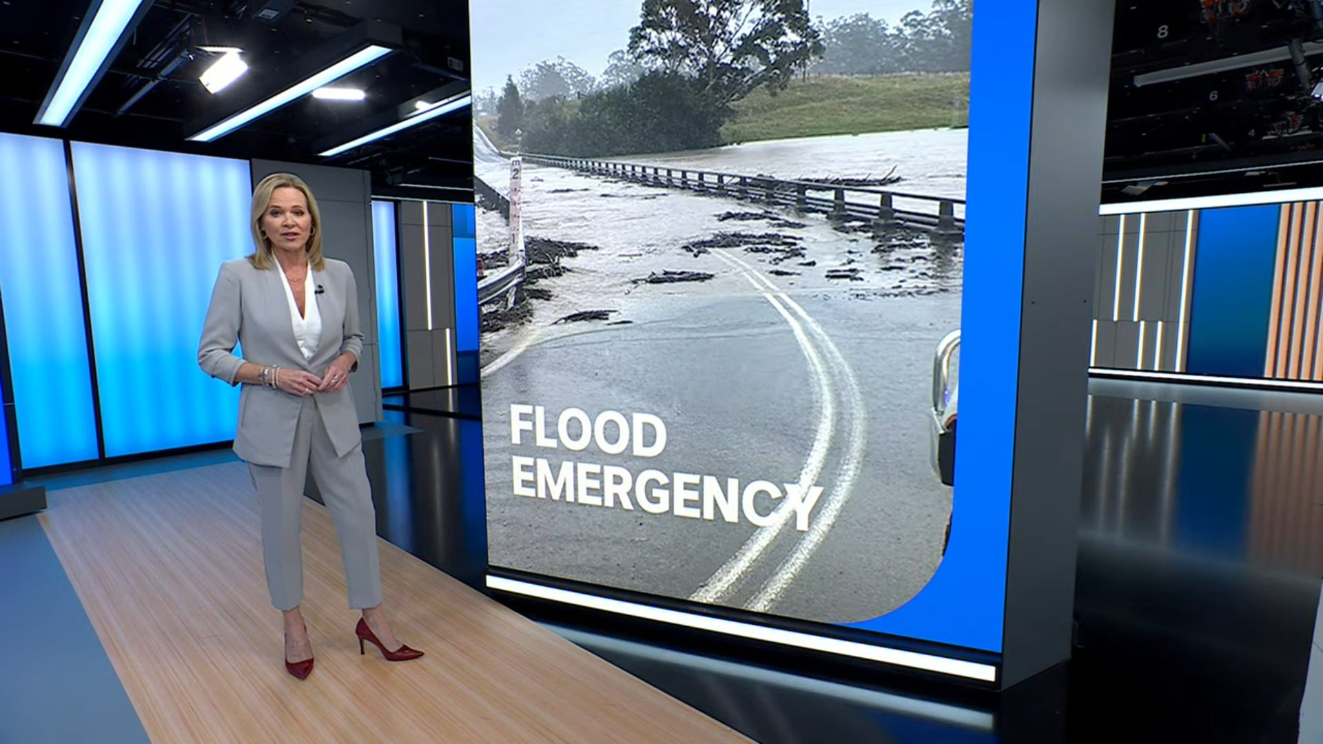 Lorna on her feet for an extended period this afternoon presenting the news! Very stylish.