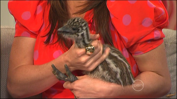 Look at the way she's holding that baby emu, she knows how to 'choke the chicken'... :grin: