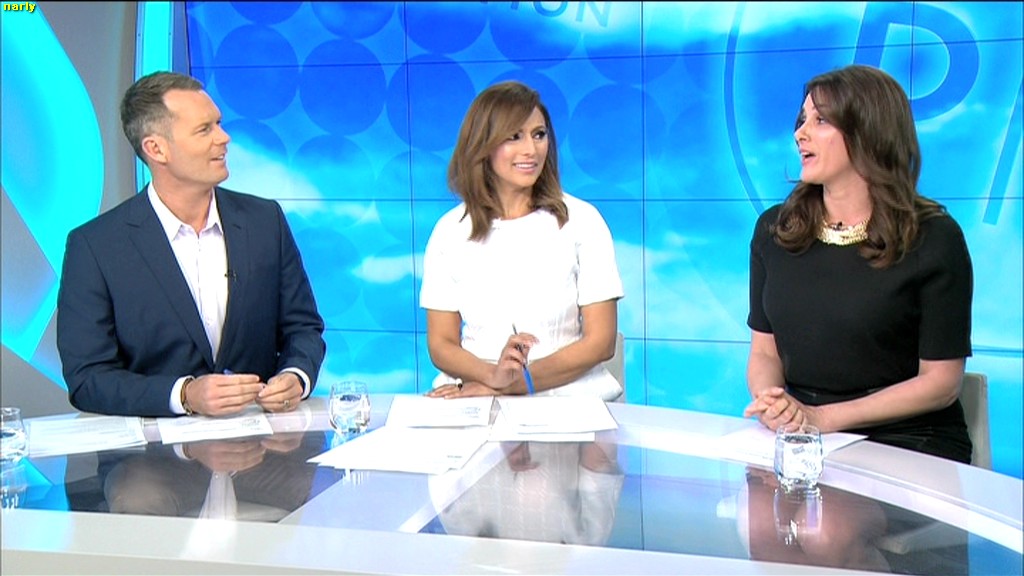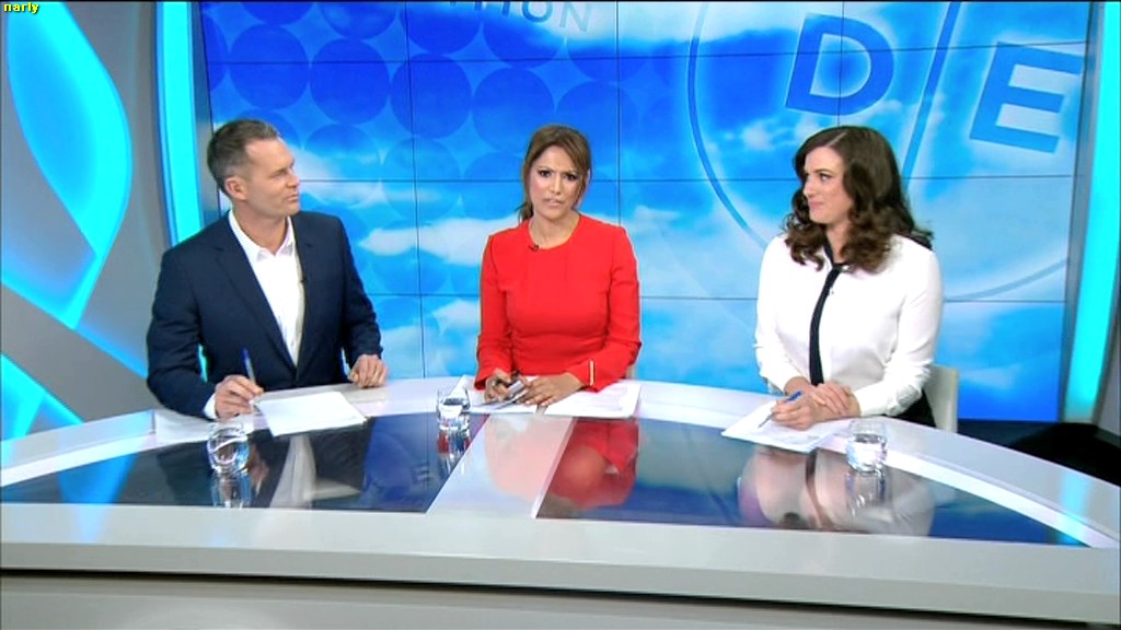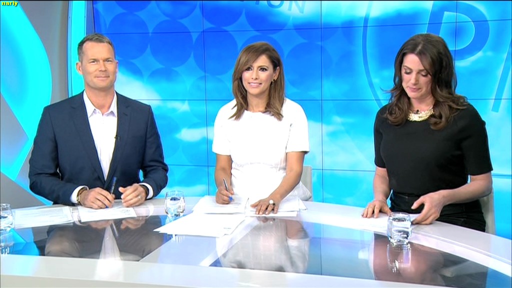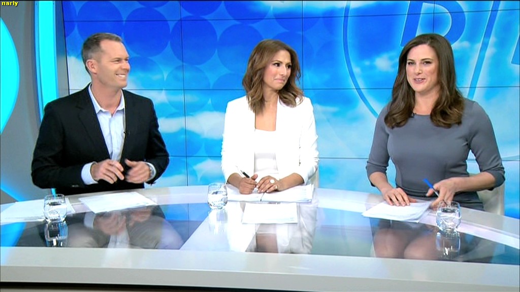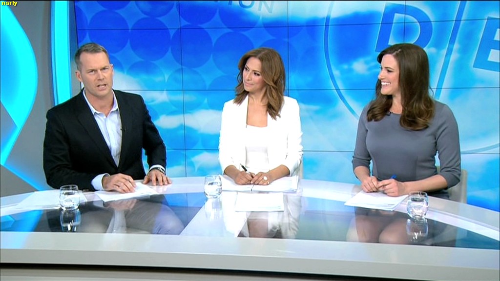 Love that glass top table, Used to be good on Sunrise when Mel was there, don't see any of Sam under the desk shots