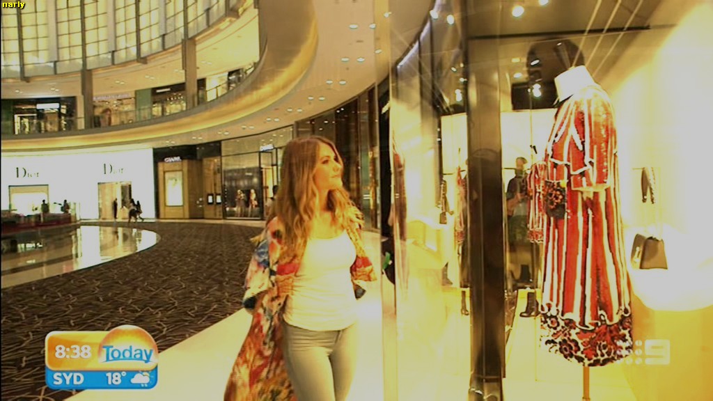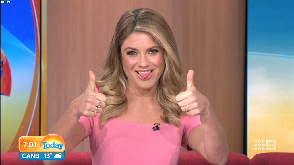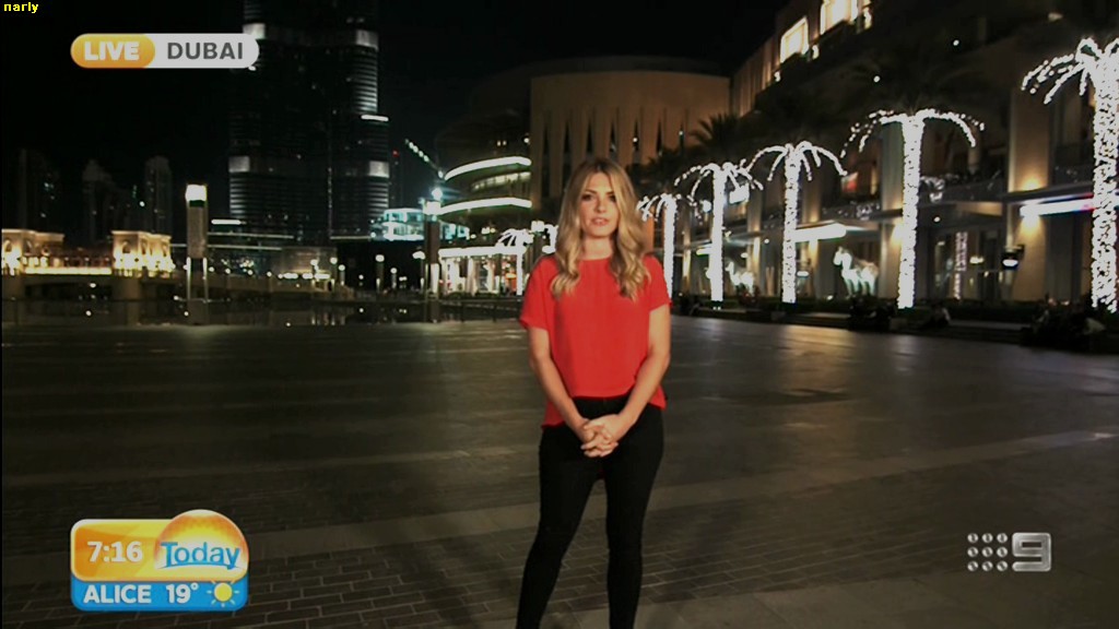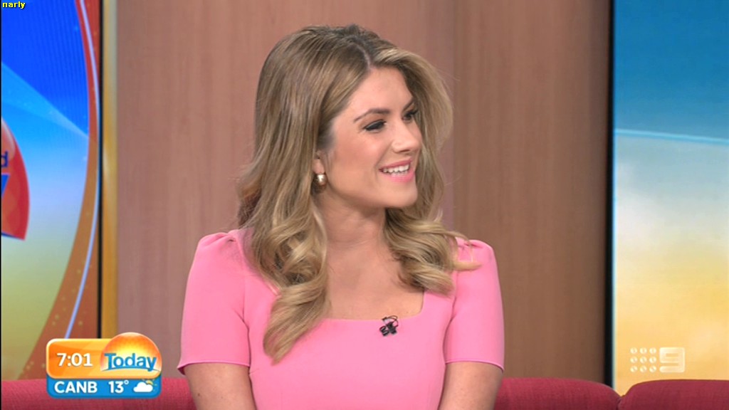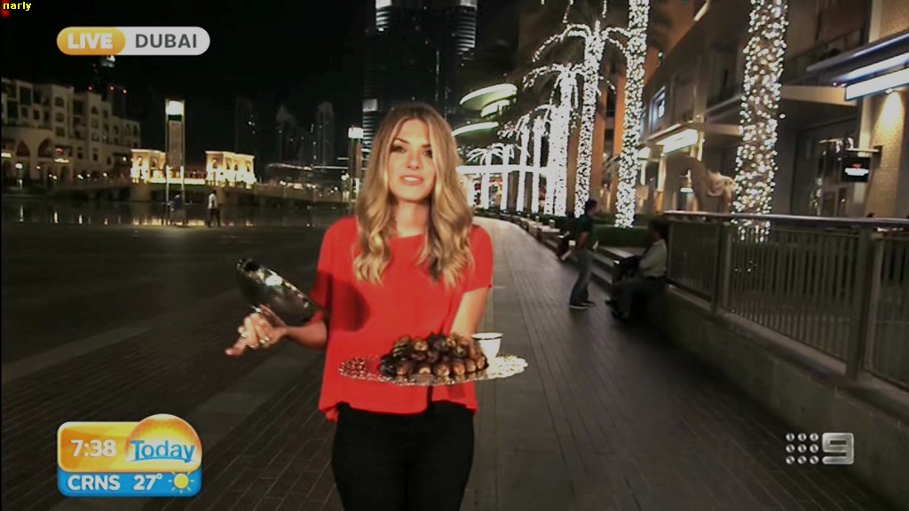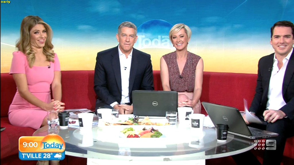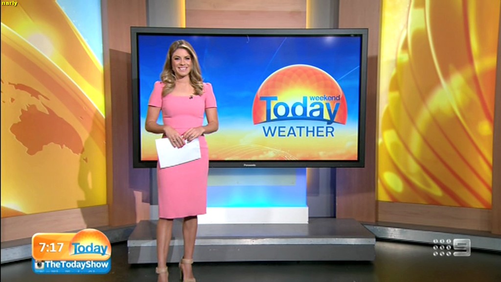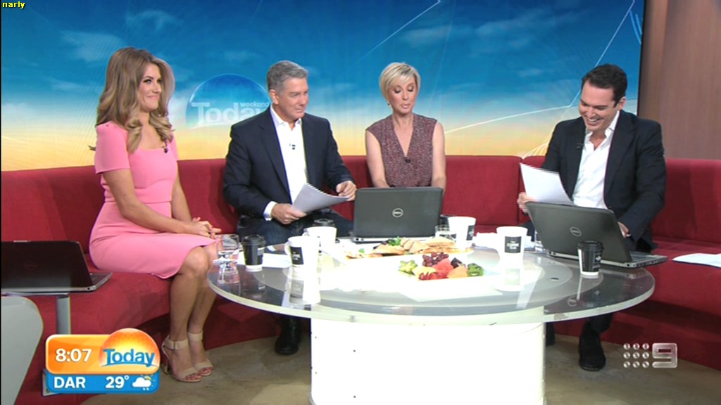 she looks Hot this morning. short skirt with a big split !