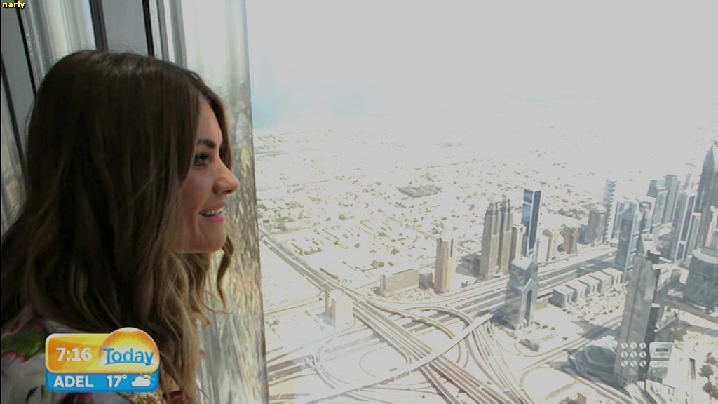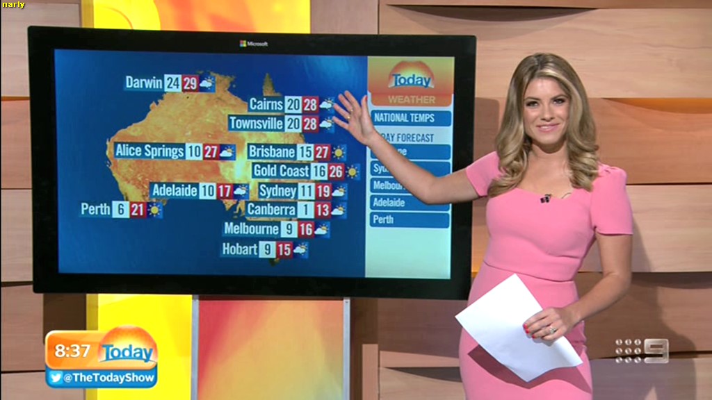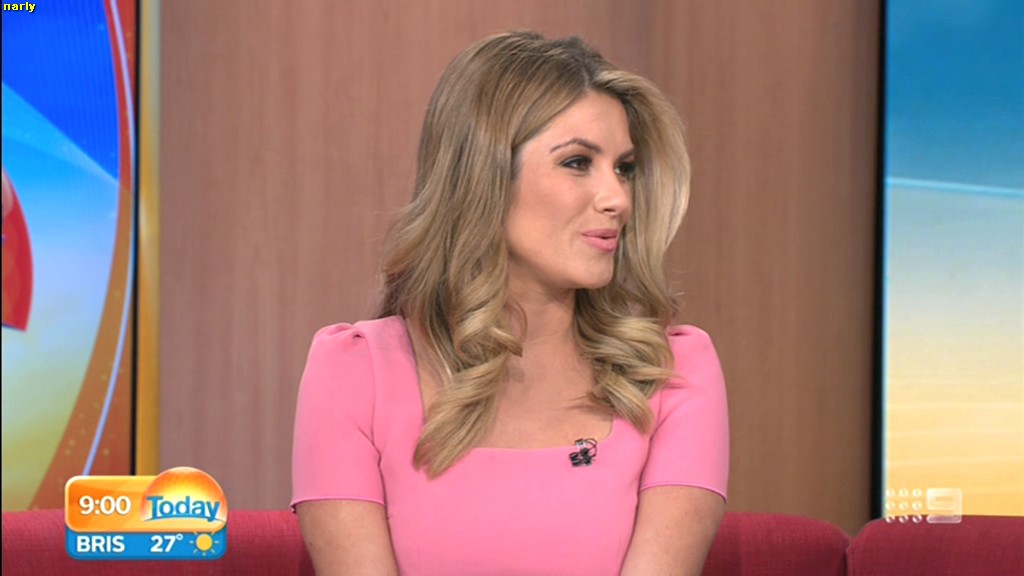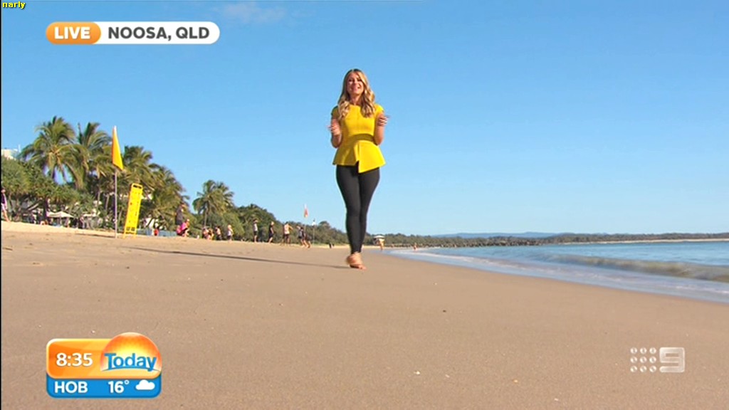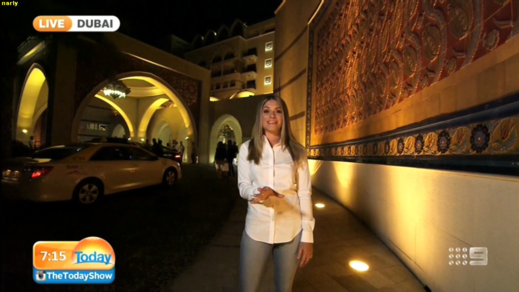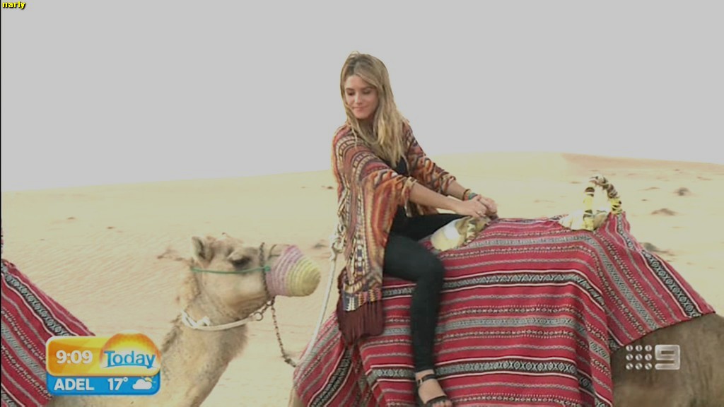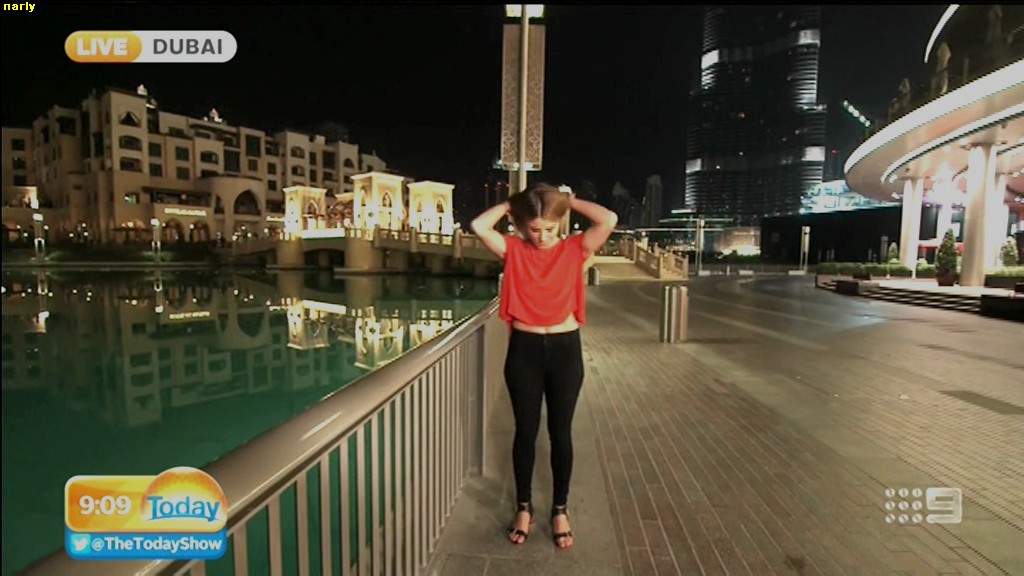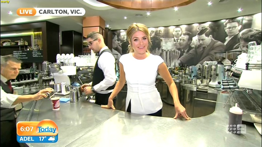 she looks Hot this morning. short skirt with a big split !