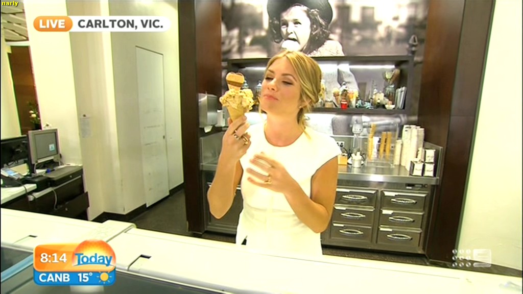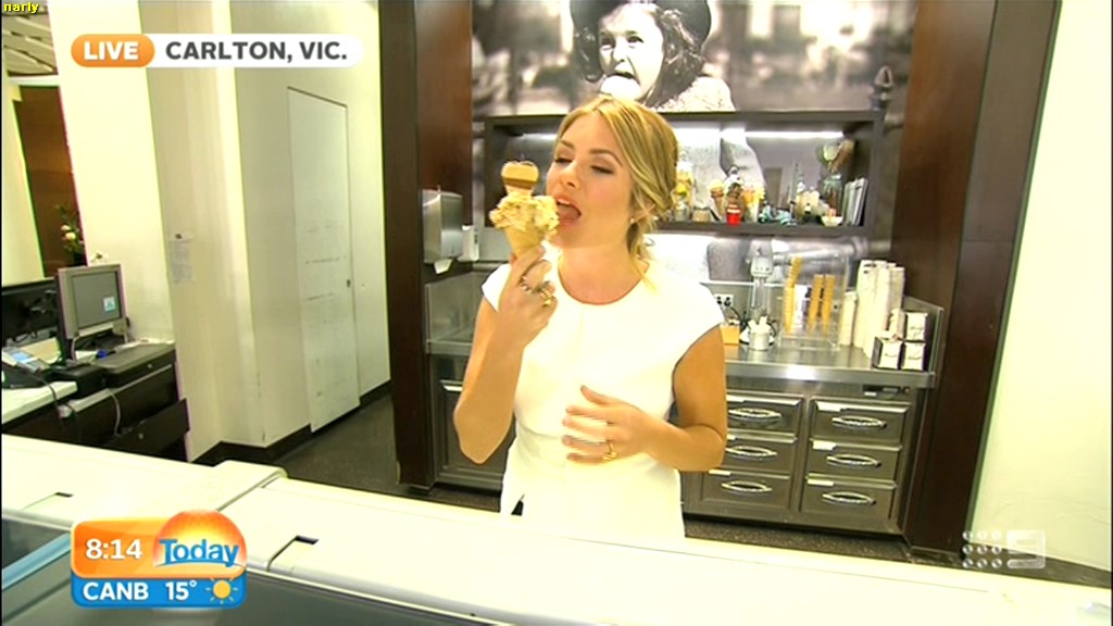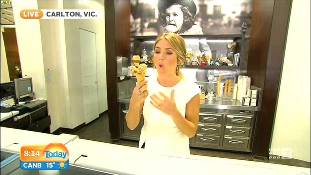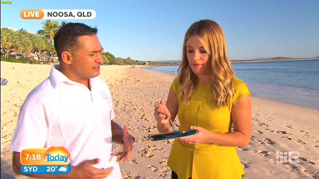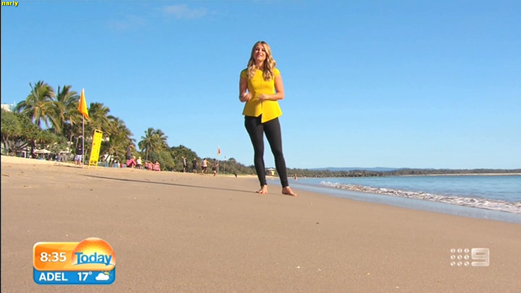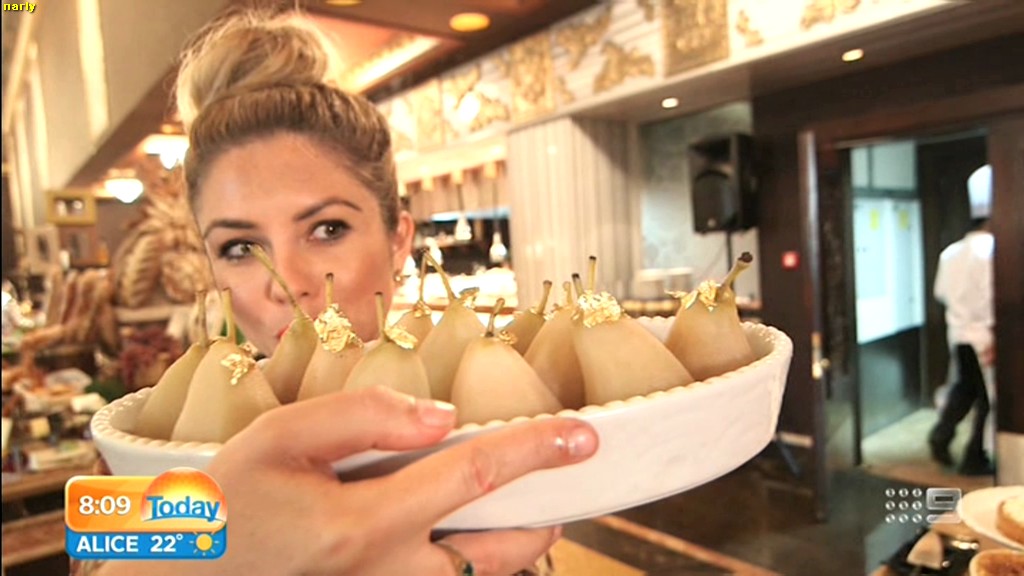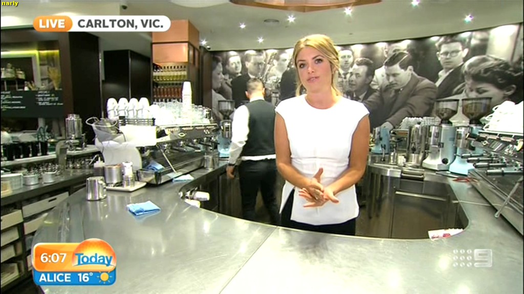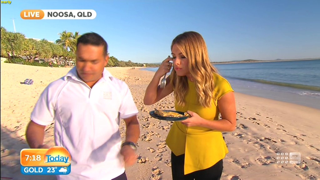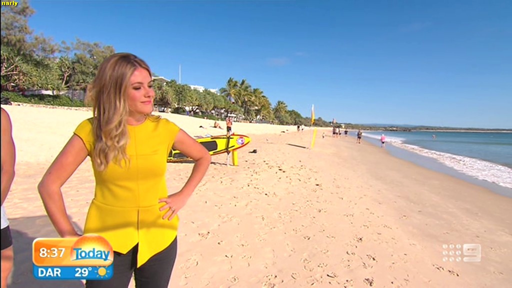 she looks Hot this morning. short skirt with a big split !