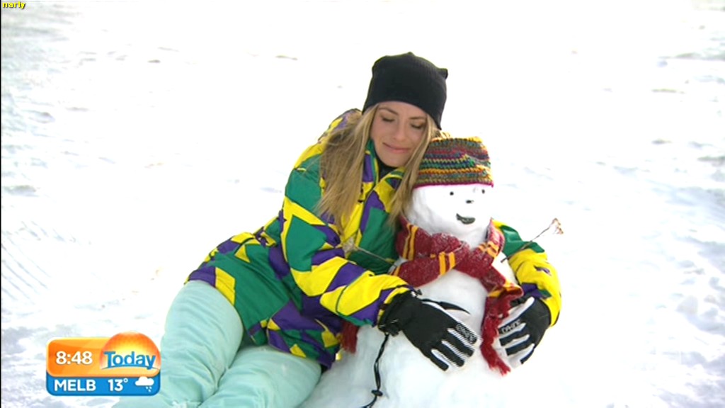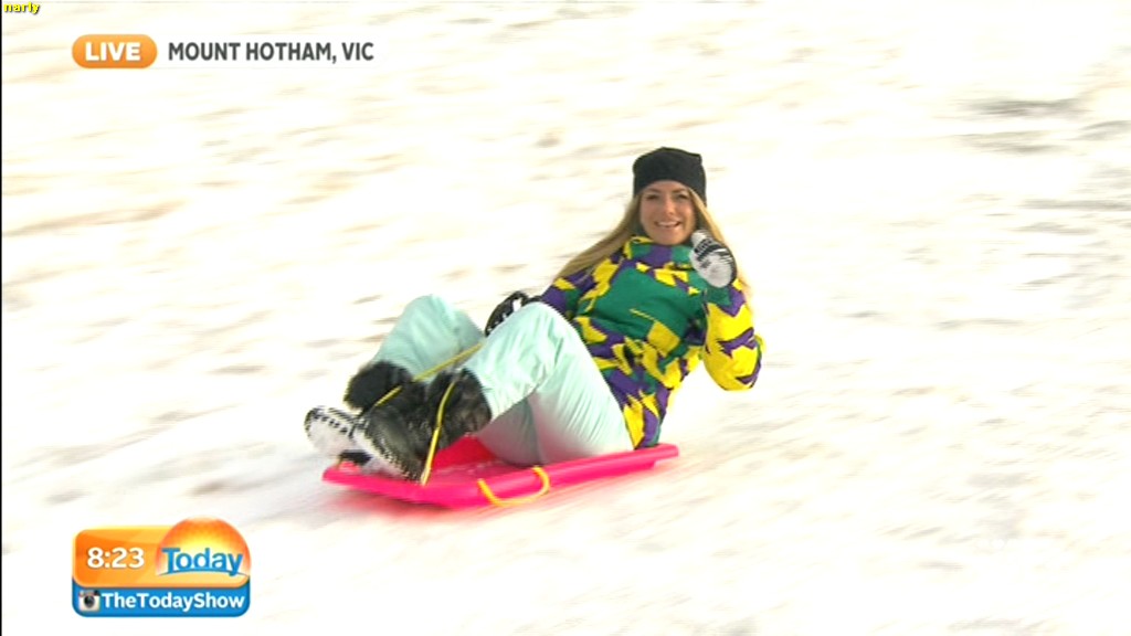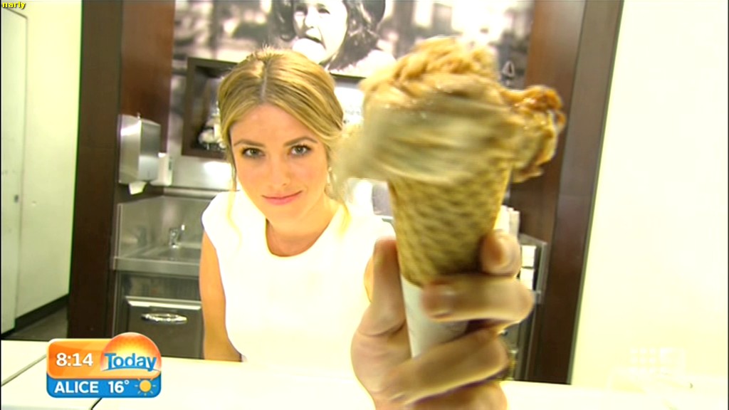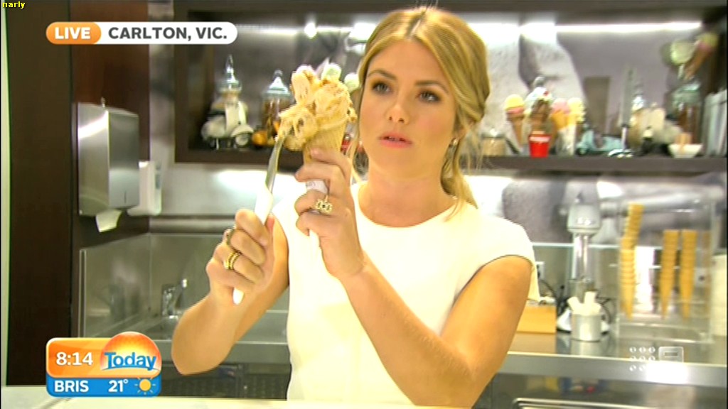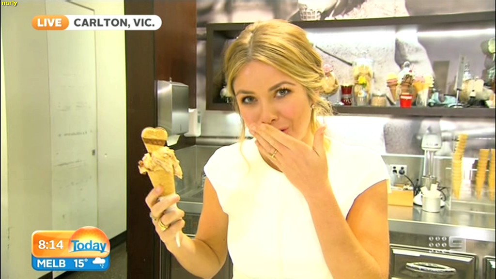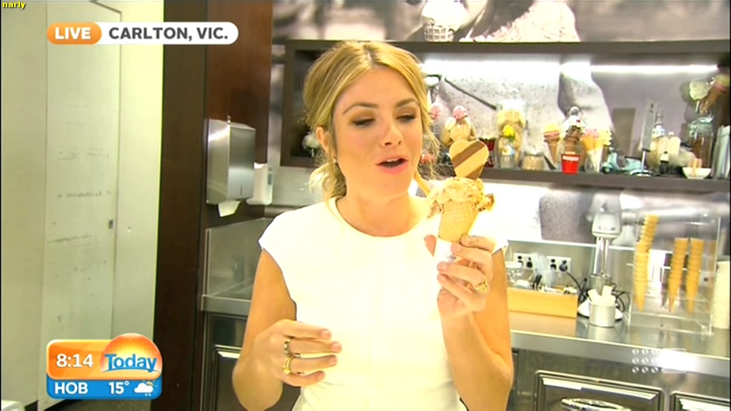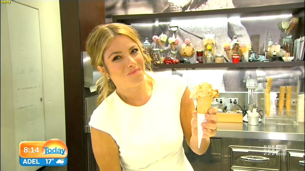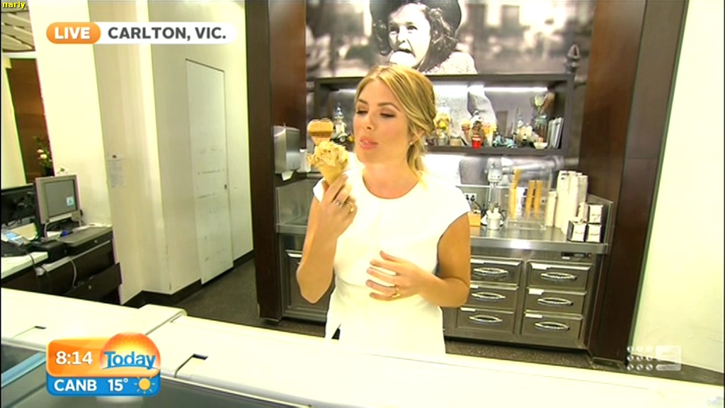 she looks Hot this morning. short skirt with a big split !