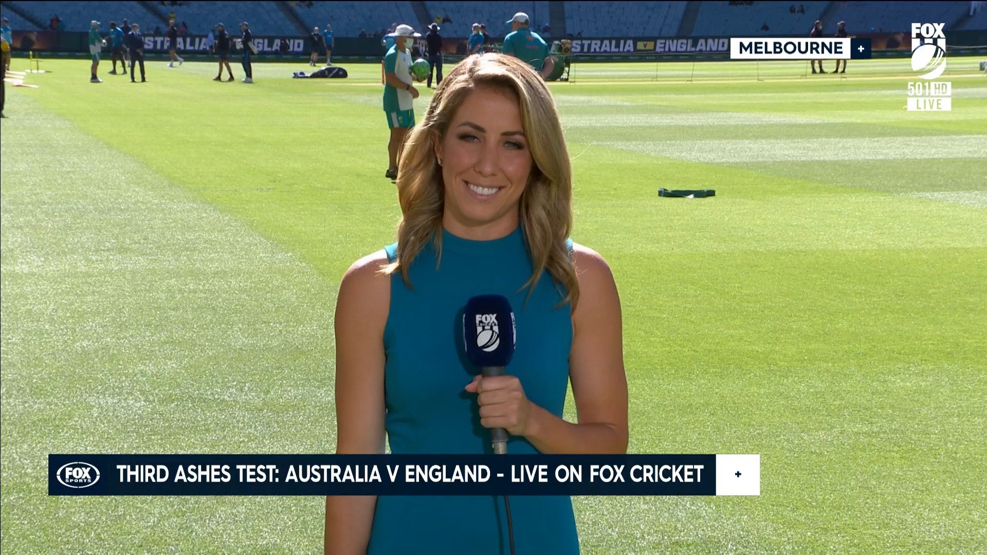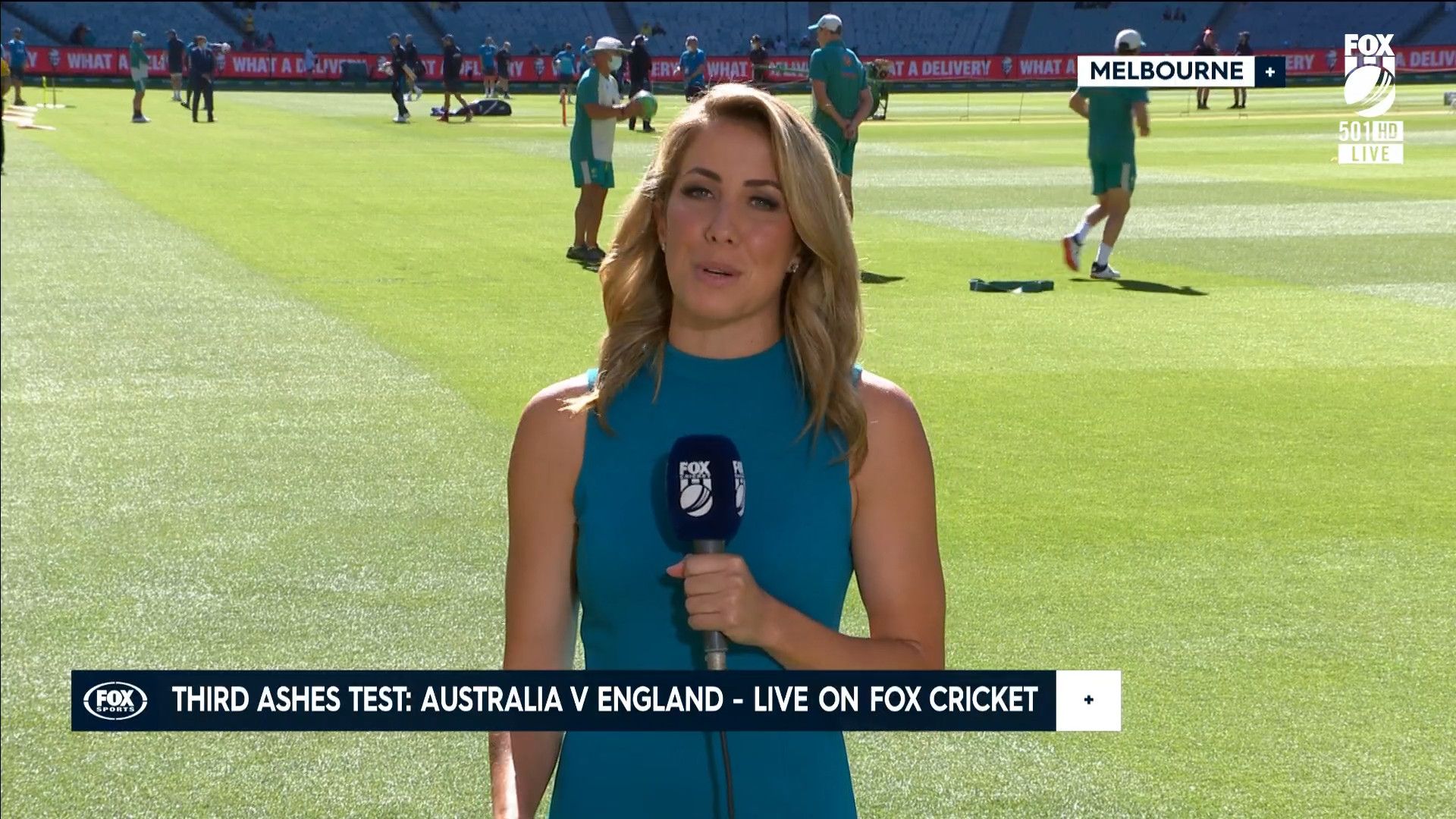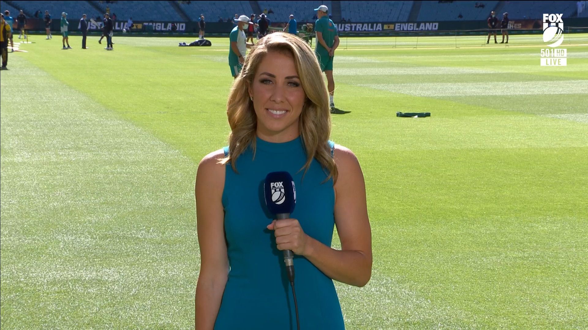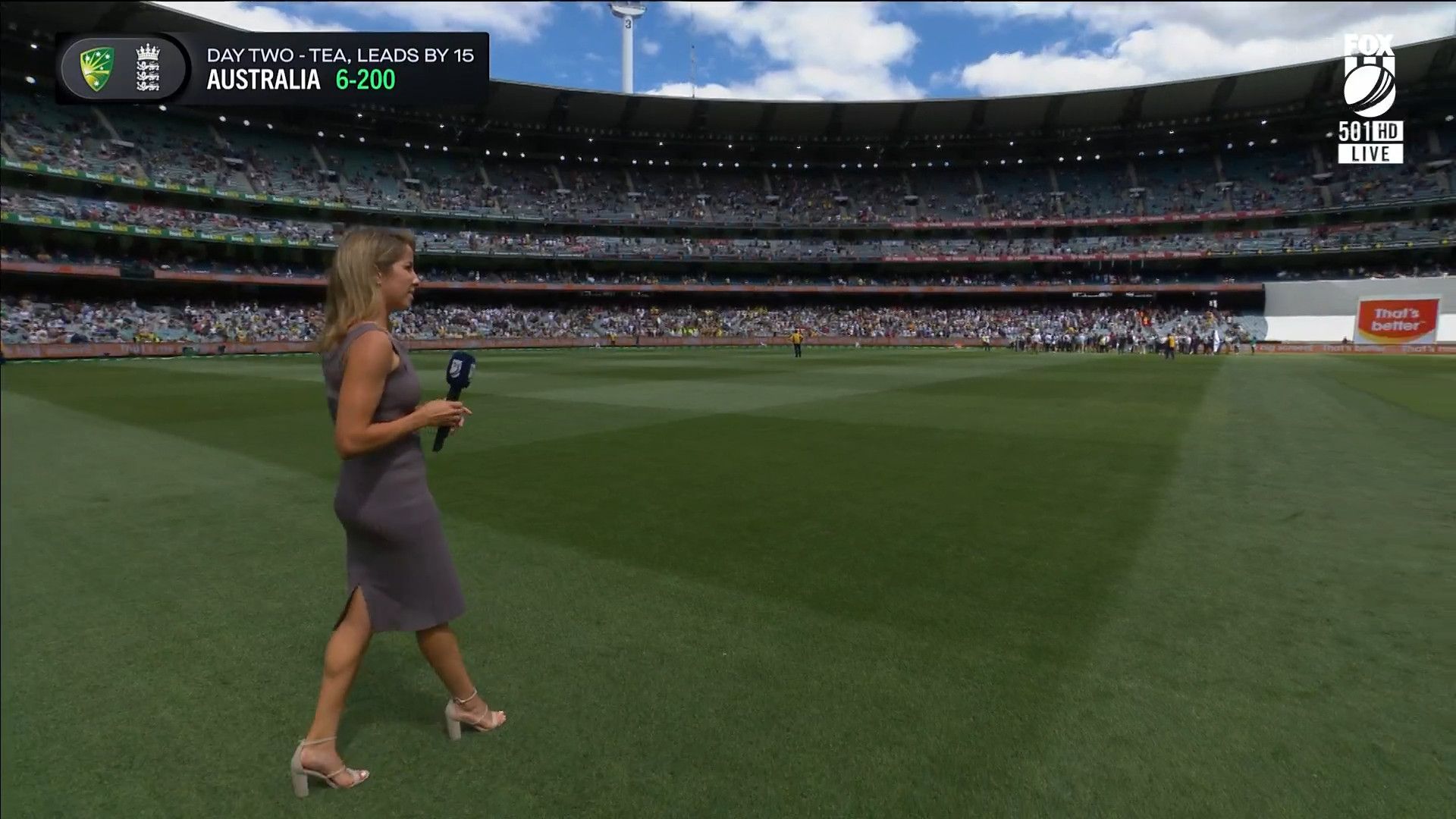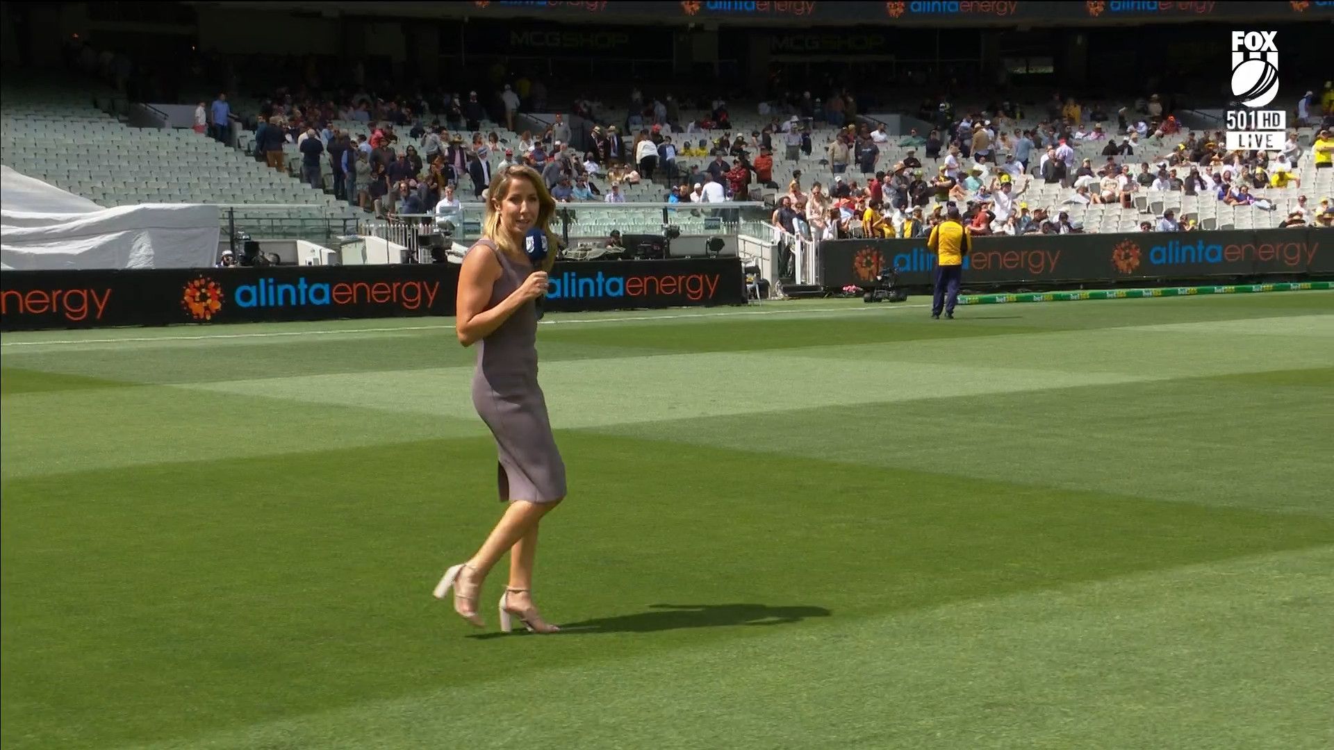 Here is Kath during the Tea break on Day 2 having another walk on the MCG - this time a bit longer (video link below) and Kath from Day 3 looking incredible in blue on Fox Cricket HD https://drive.google.com/file/d/1qzh-xzAyiwMbenlpBGRYvuQZCmmd4q7I/view?usp=sharing