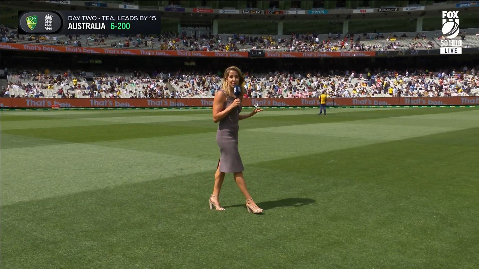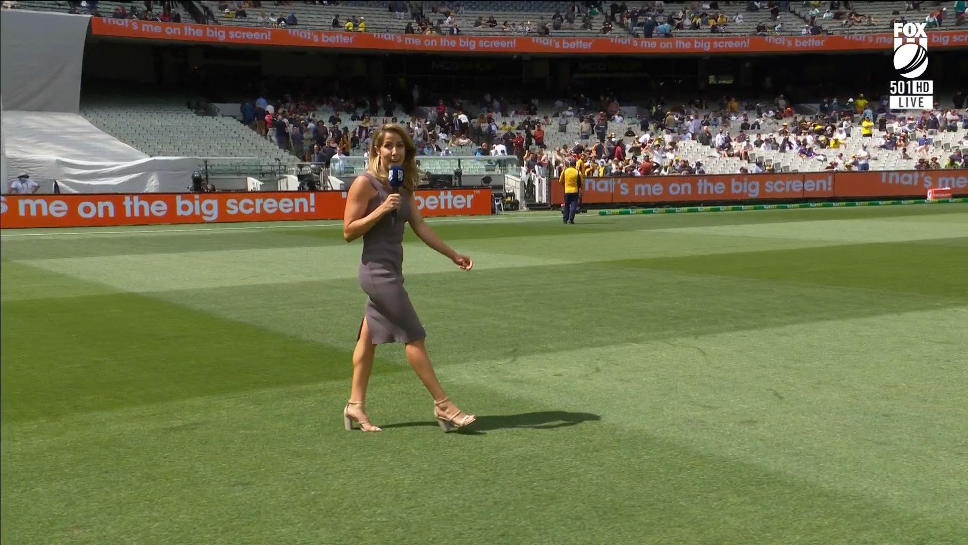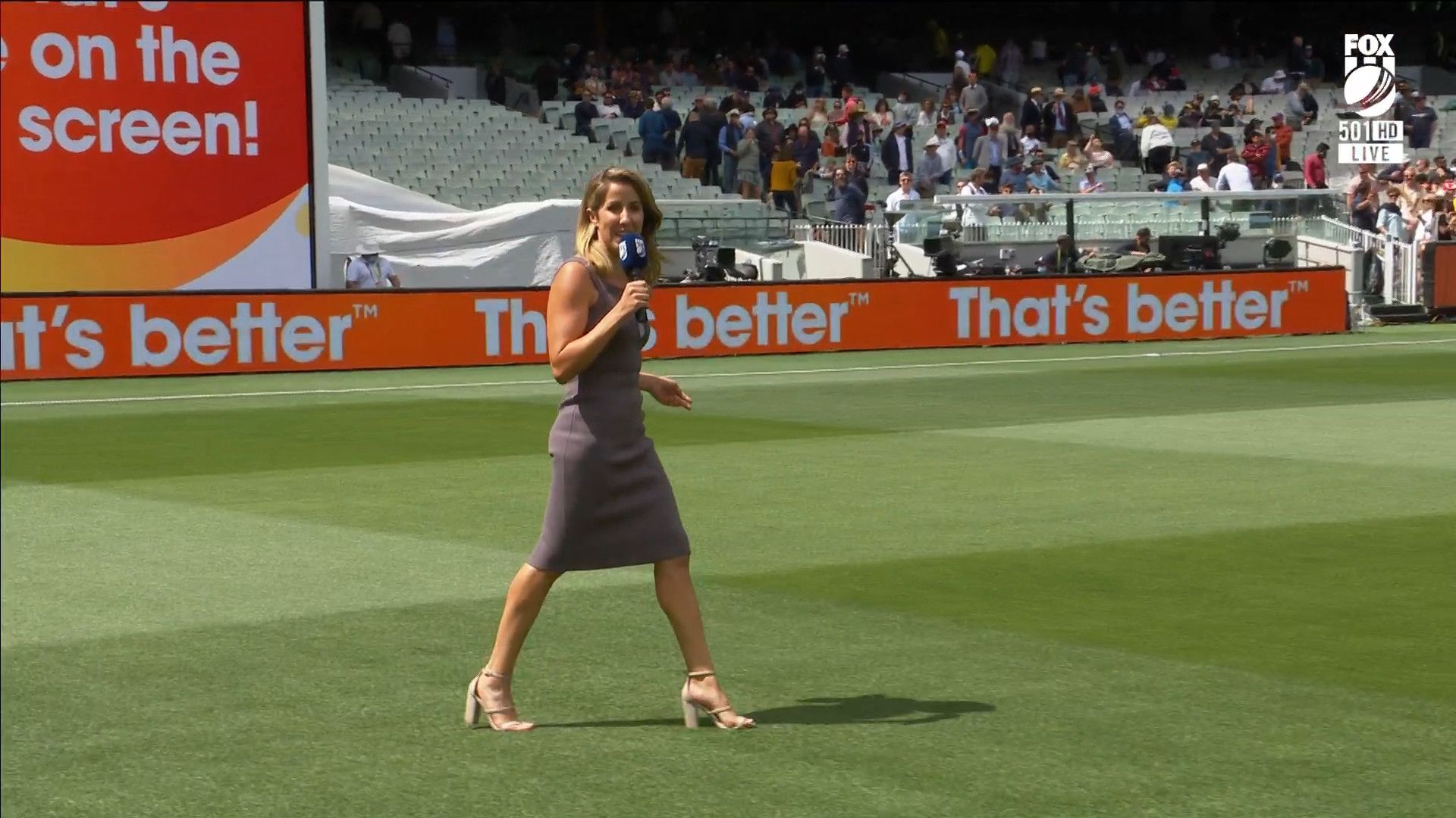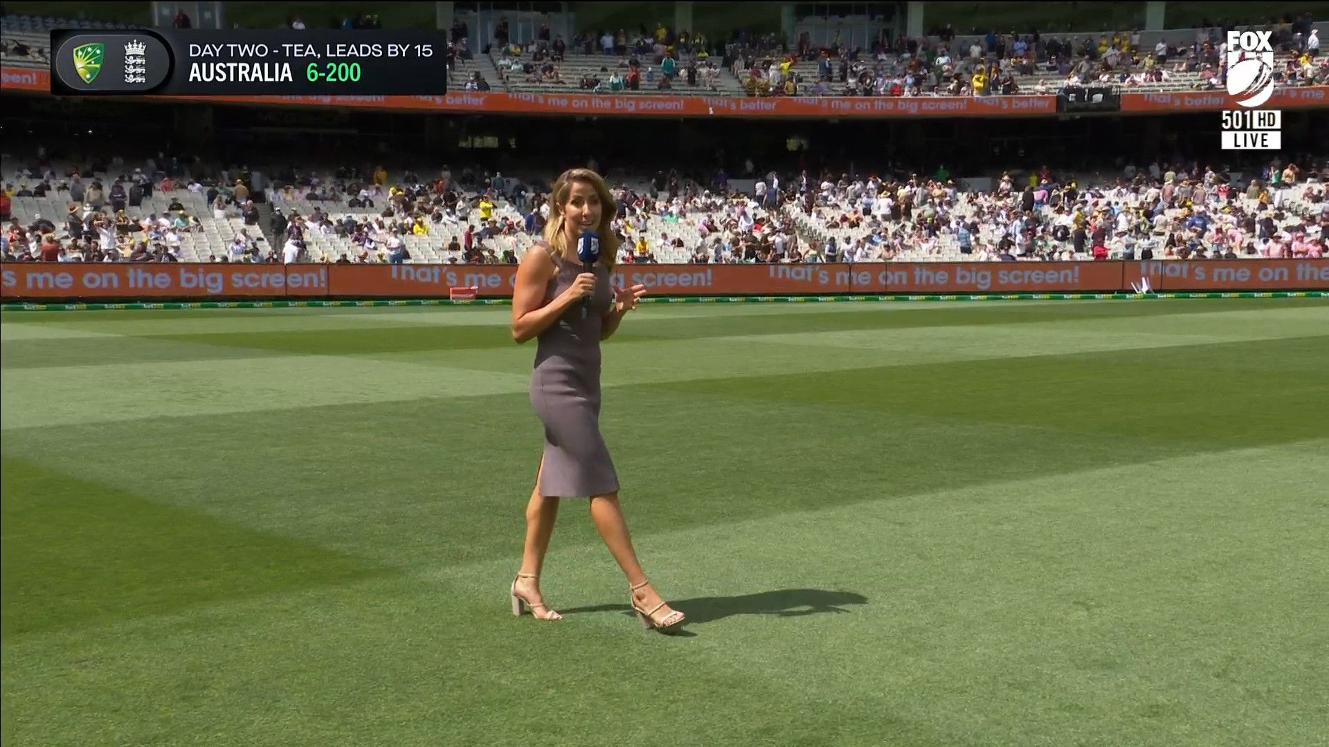 Here is Kath during the Tea break on Day 2 having another walk on the MCG - this time a bit longer (video link below) and Kath from Day 3 looking incredible in blue on Fox Cricket HD https://drive.google.com/file/d/1qzh-xzAyiwMbenlpBGRYvuQZCmmd4q7I/view?usp=sharing