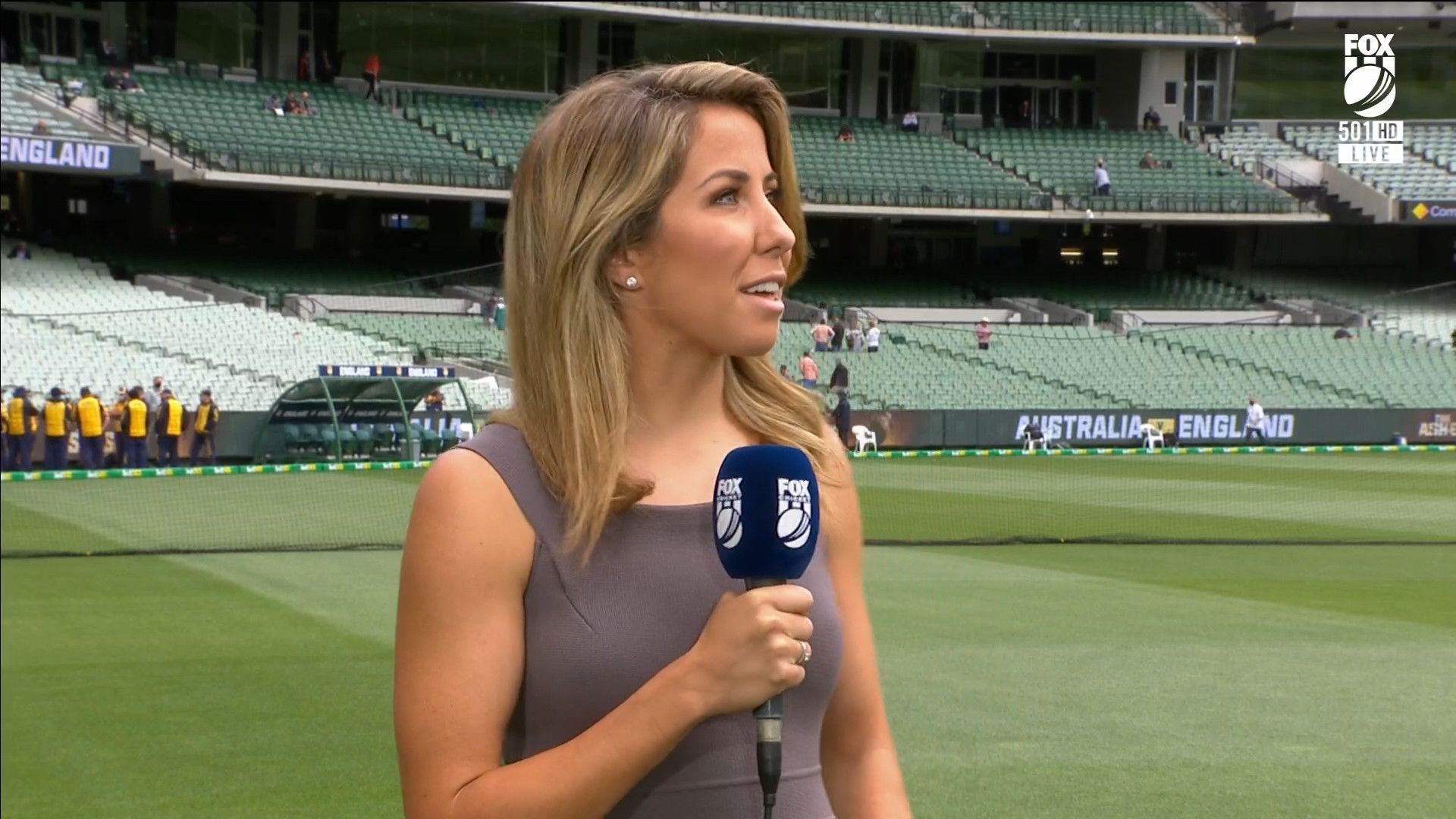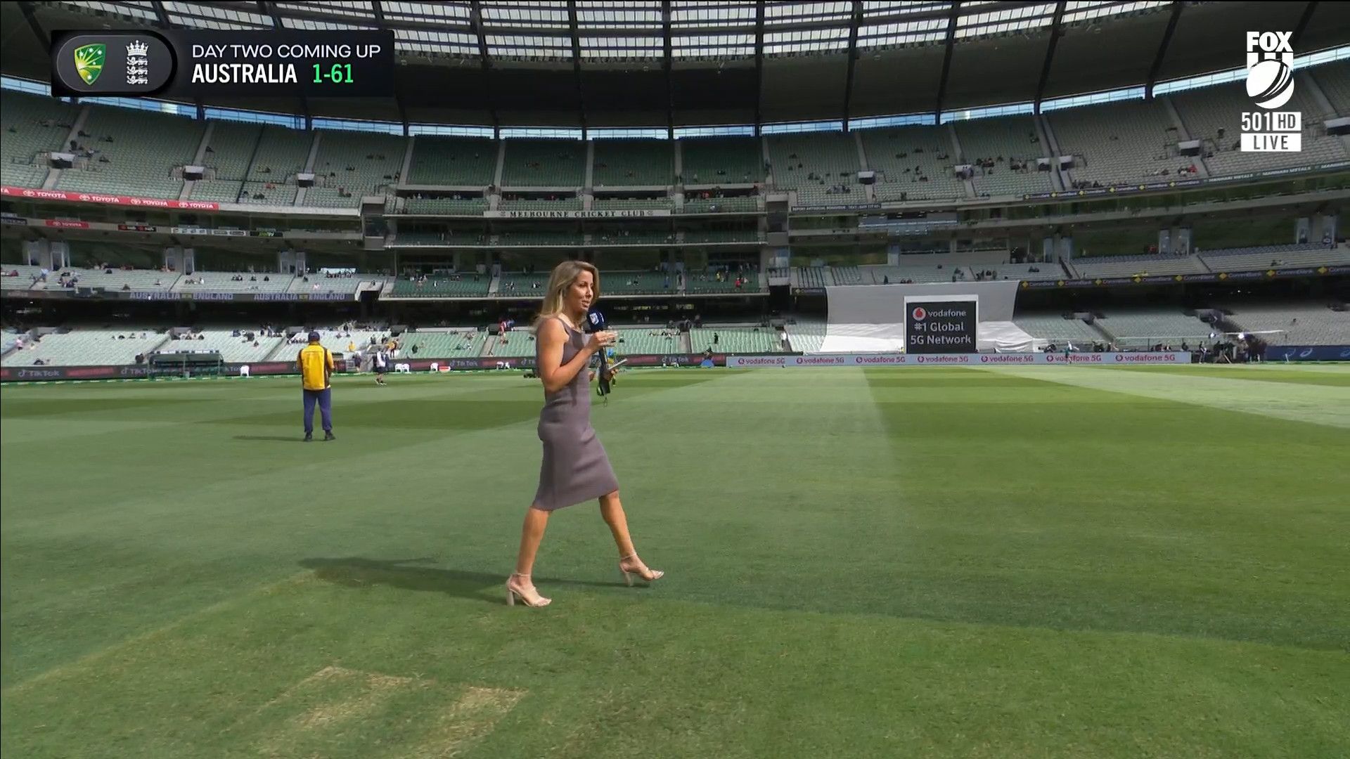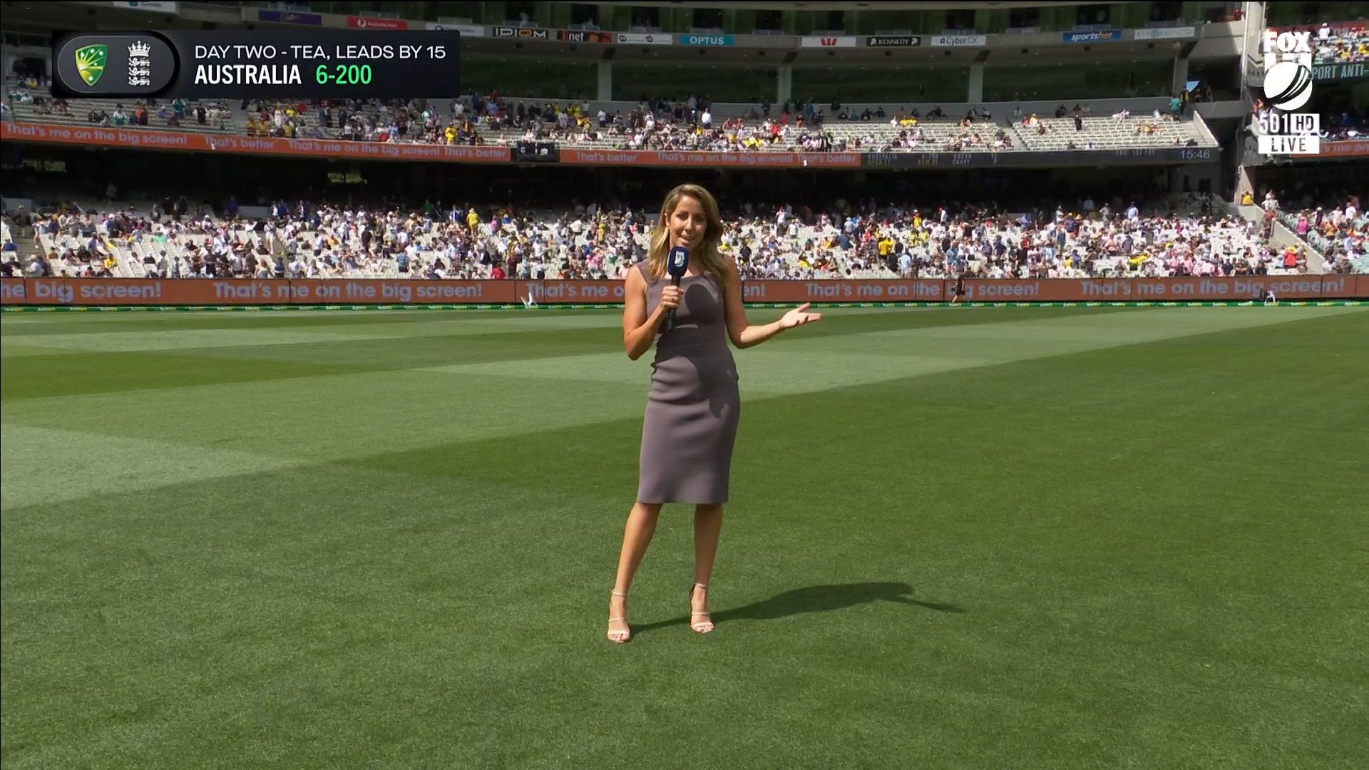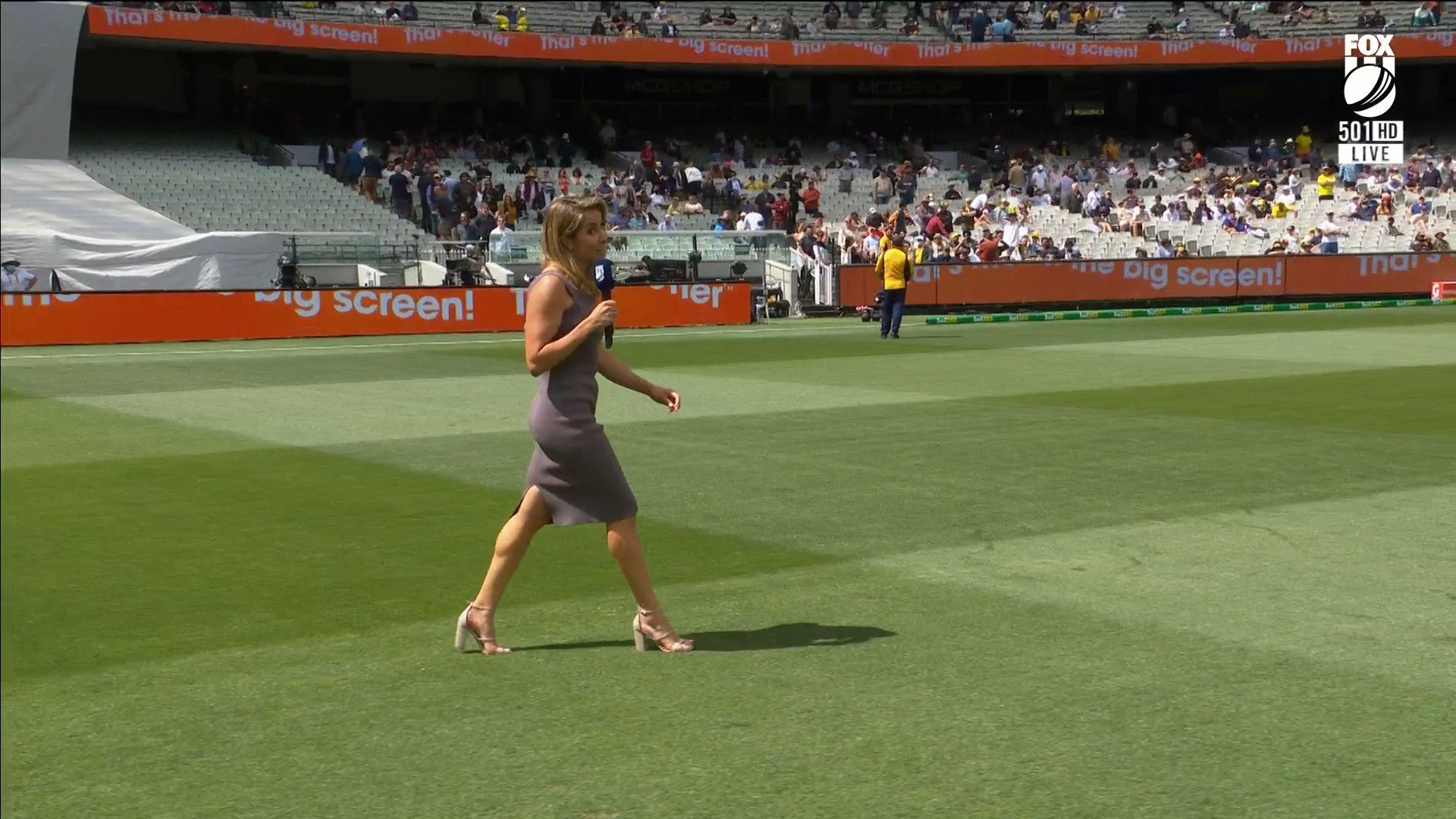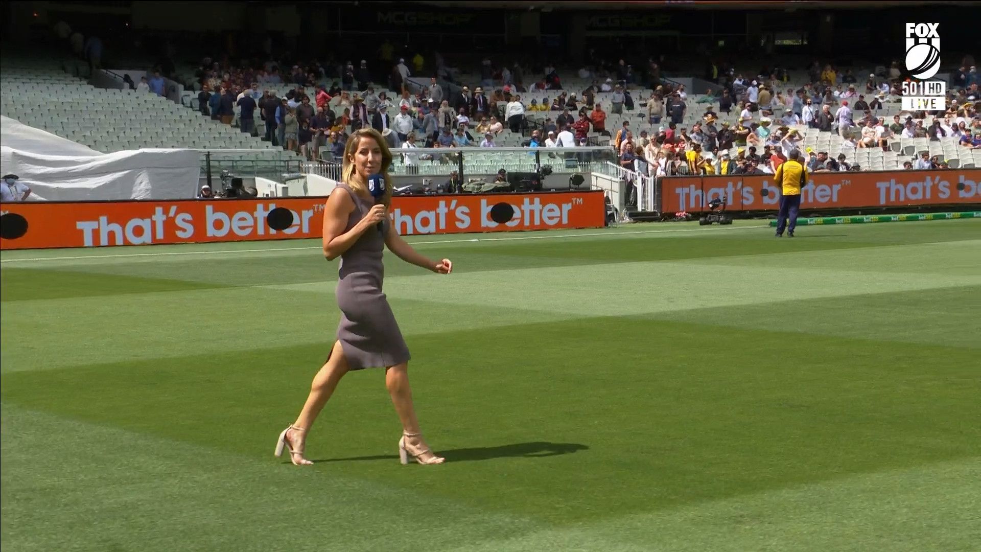 Here is Kath during the Tea break on Day 2 having another walk on the MCG - this time a bit longer (video link below) and Kath from Day 3 looking incredible in blue on Fox Cricket HD https://drive.google.com/file/d/1qzh-xzAyiwMbenlpBGRYvuQZCmmd4q7I/view?usp=sharing