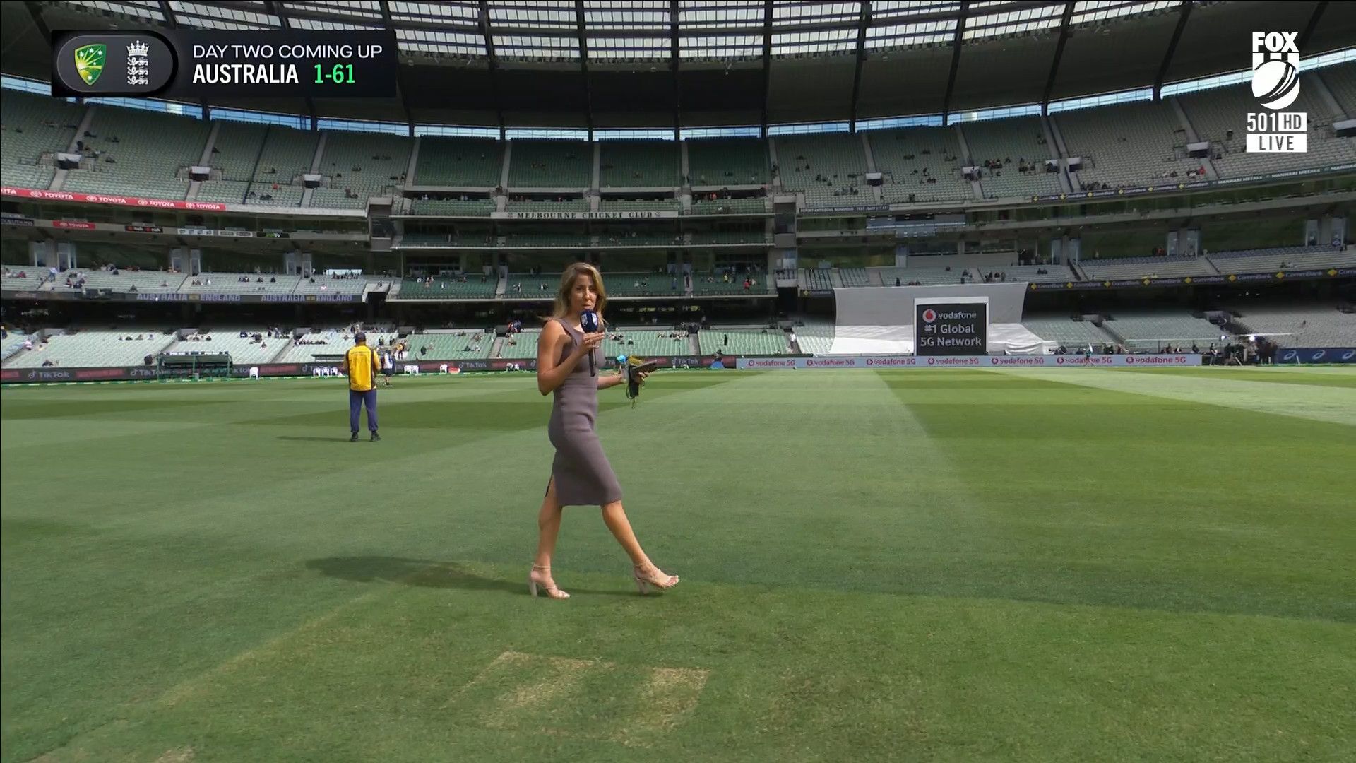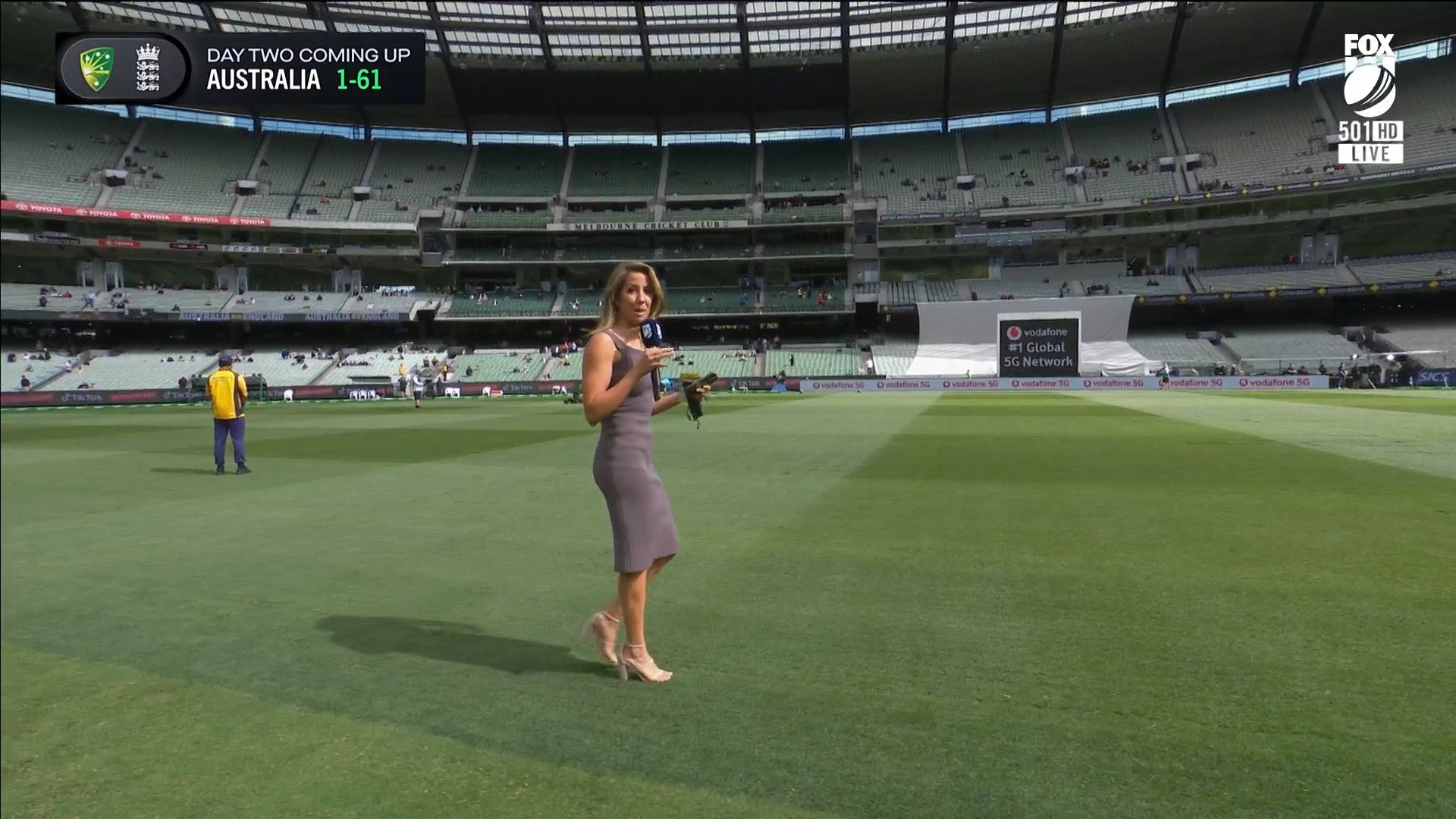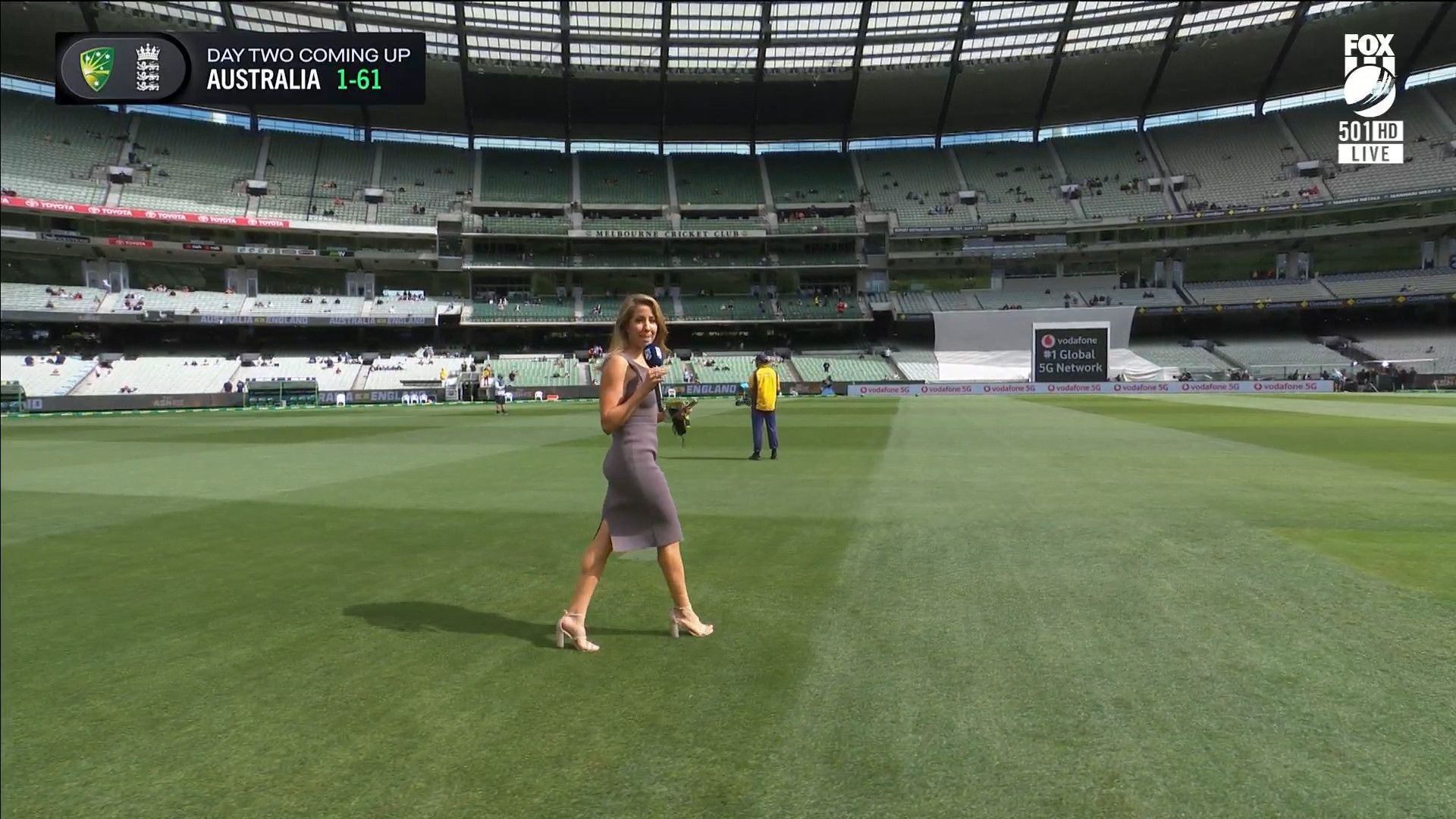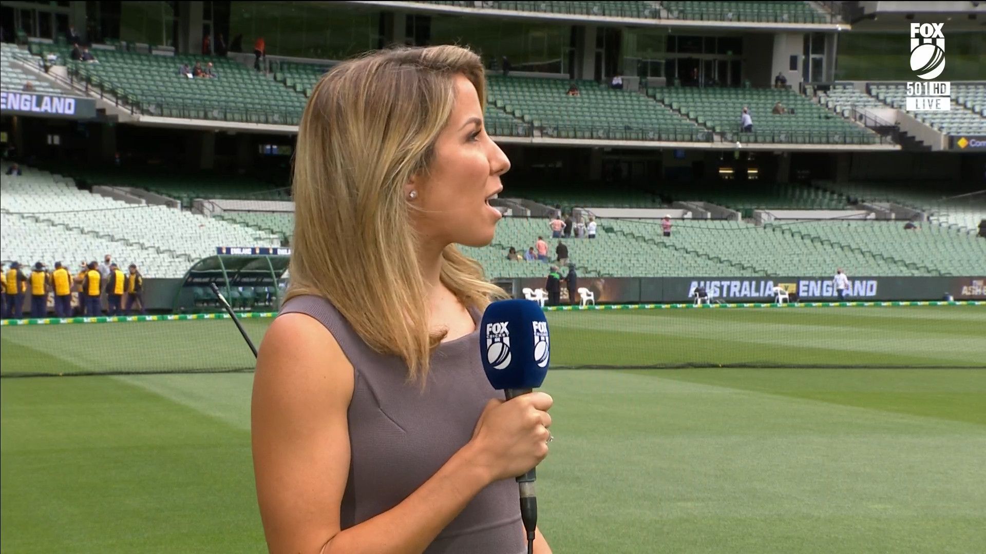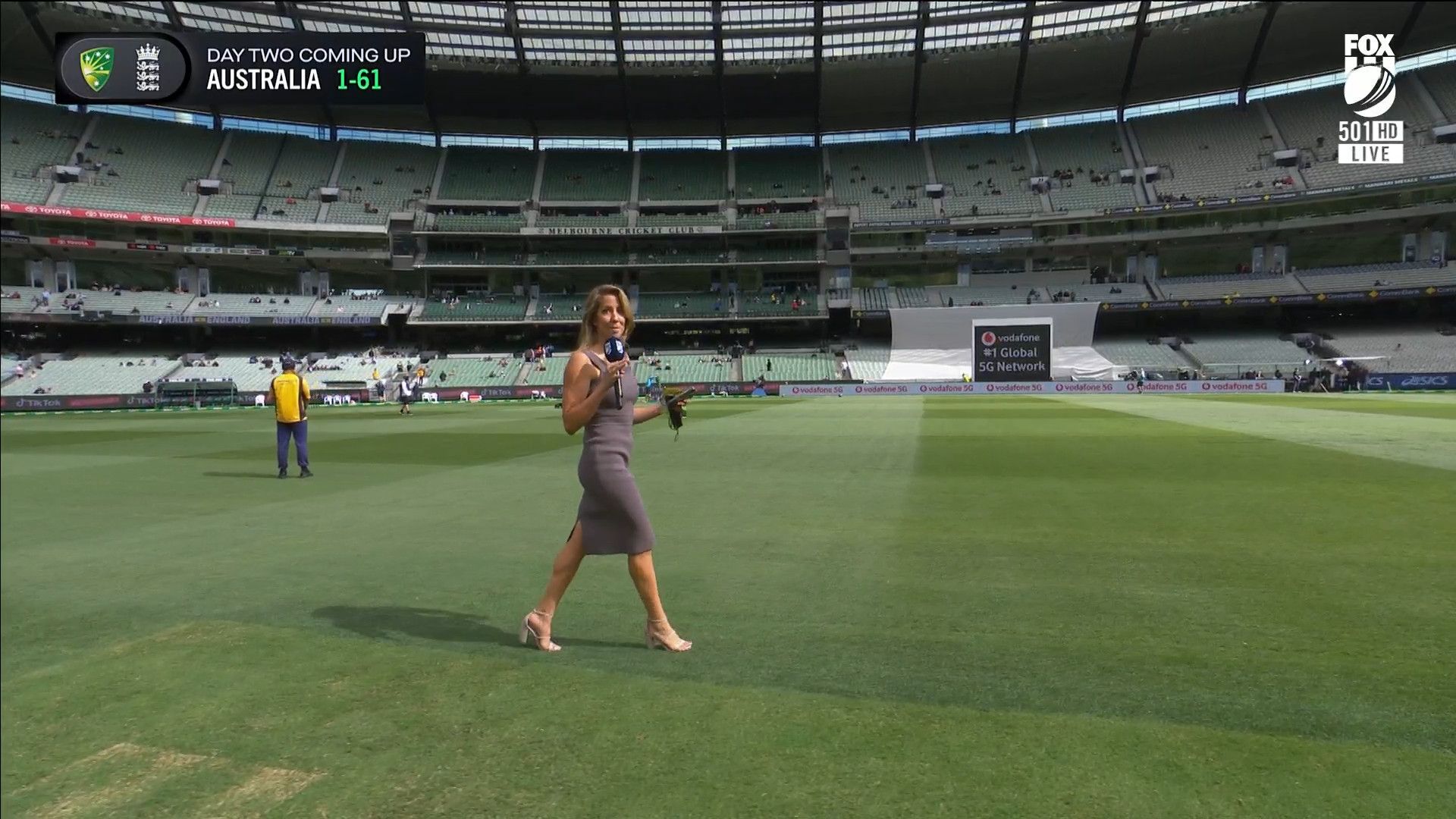 Here is Kath during the Tea break on Day 2 having another walk on the MCG - this time a bit longer (video link below) and Kath from Day 3 looking incredible in blue on Fox Cricket HD https://drive.google.com/file/d/1qzh-xzAyiwMbenlpBGRYvuQZCmmd4q7I/view?usp=sharing