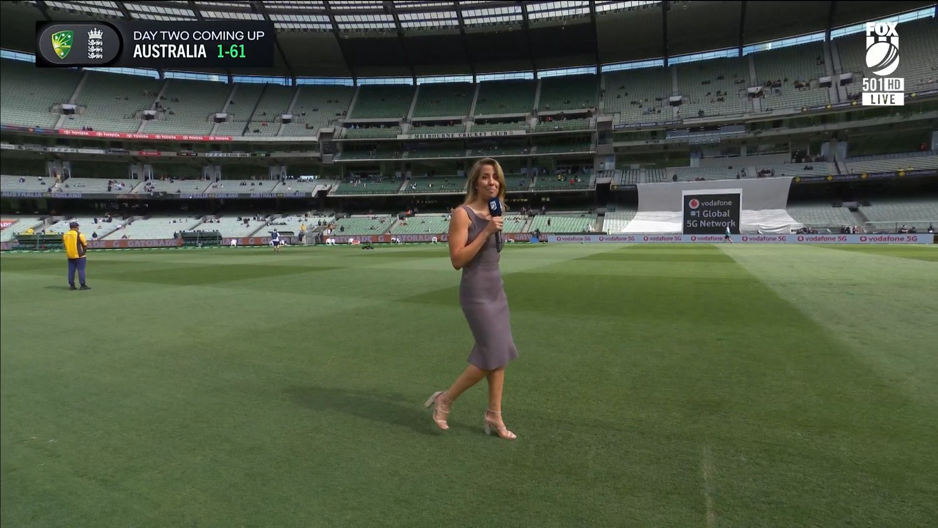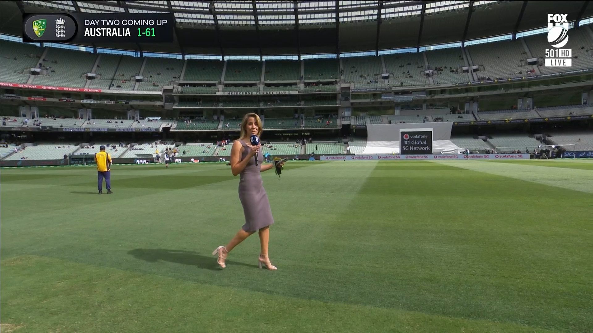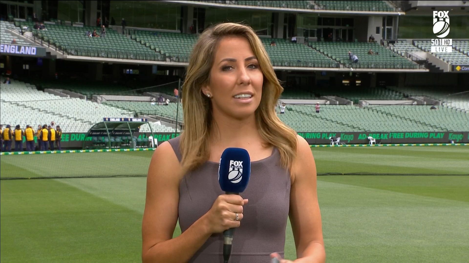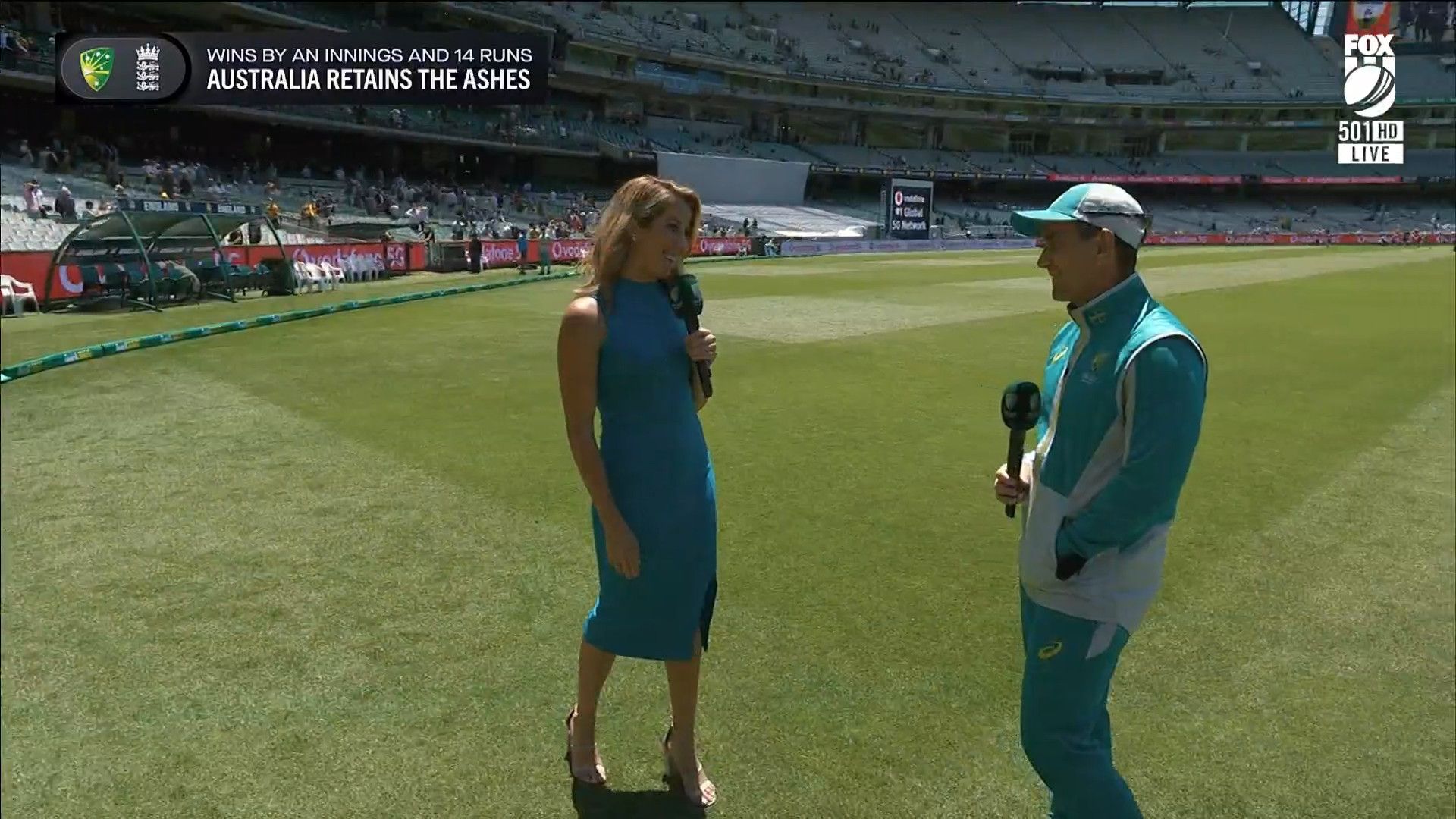 Here is Kath during the Tea break on Day 2 having another walk on the MCG - this time a bit longer (video link below) and Kath from Day 3 looking incredible in blue on Fox Cricket HD https://drive.google.com/file/d/1qzh-xzAyiwMbenlpBGRYvuQZCmmd4q7I/view?usp=sharing