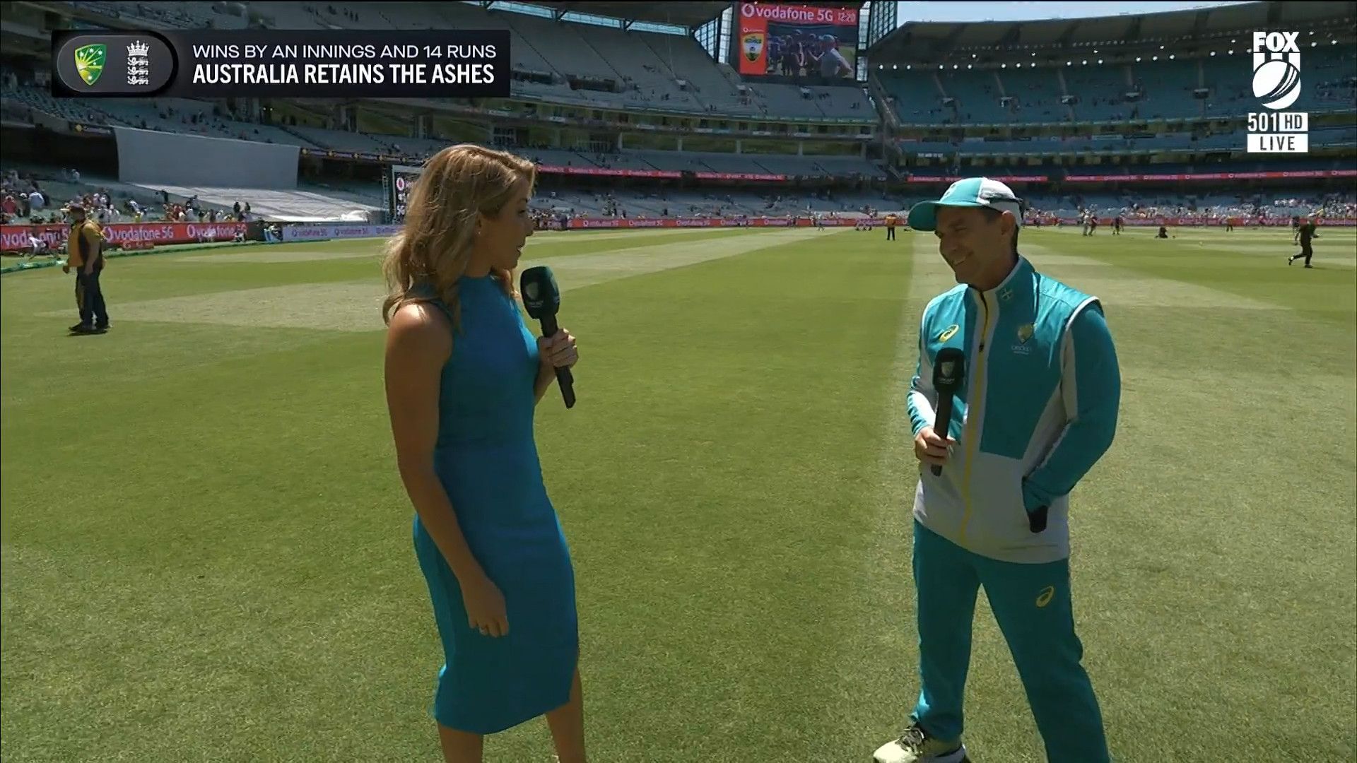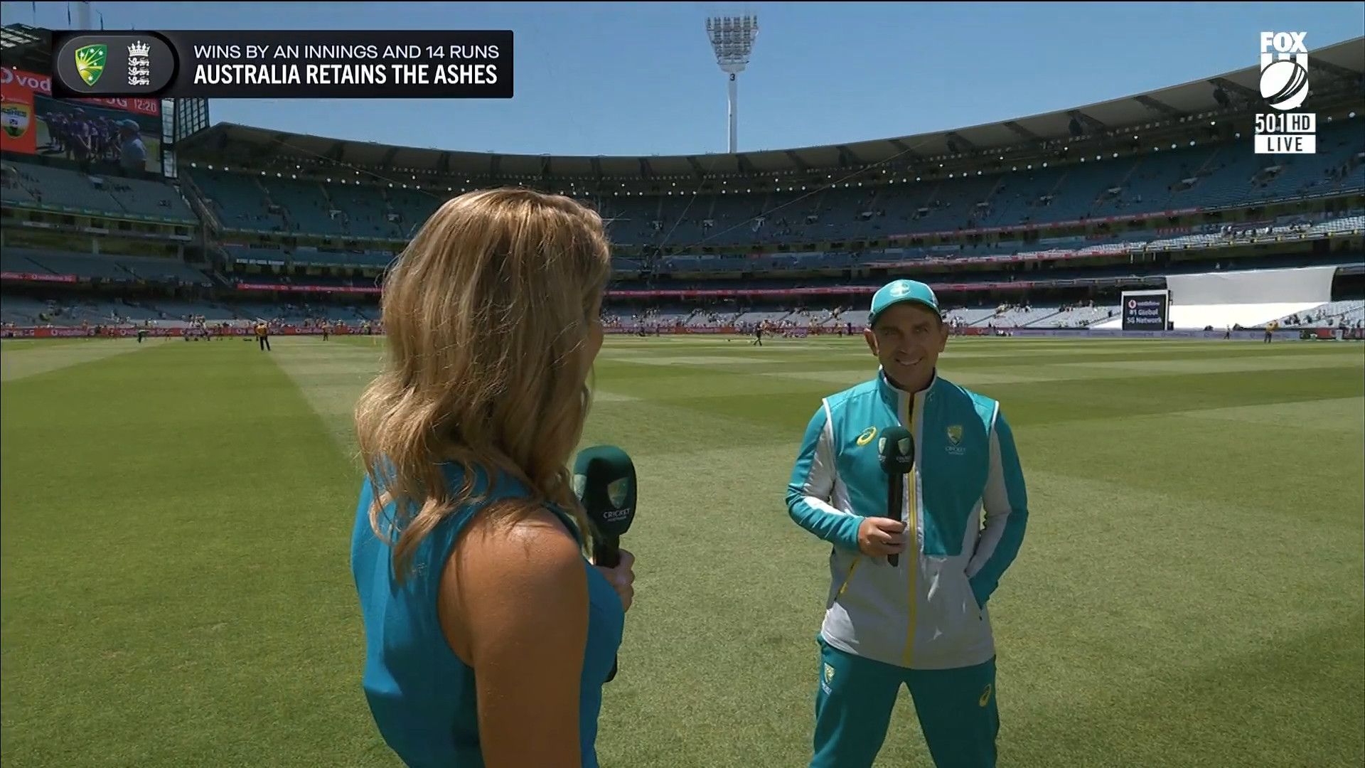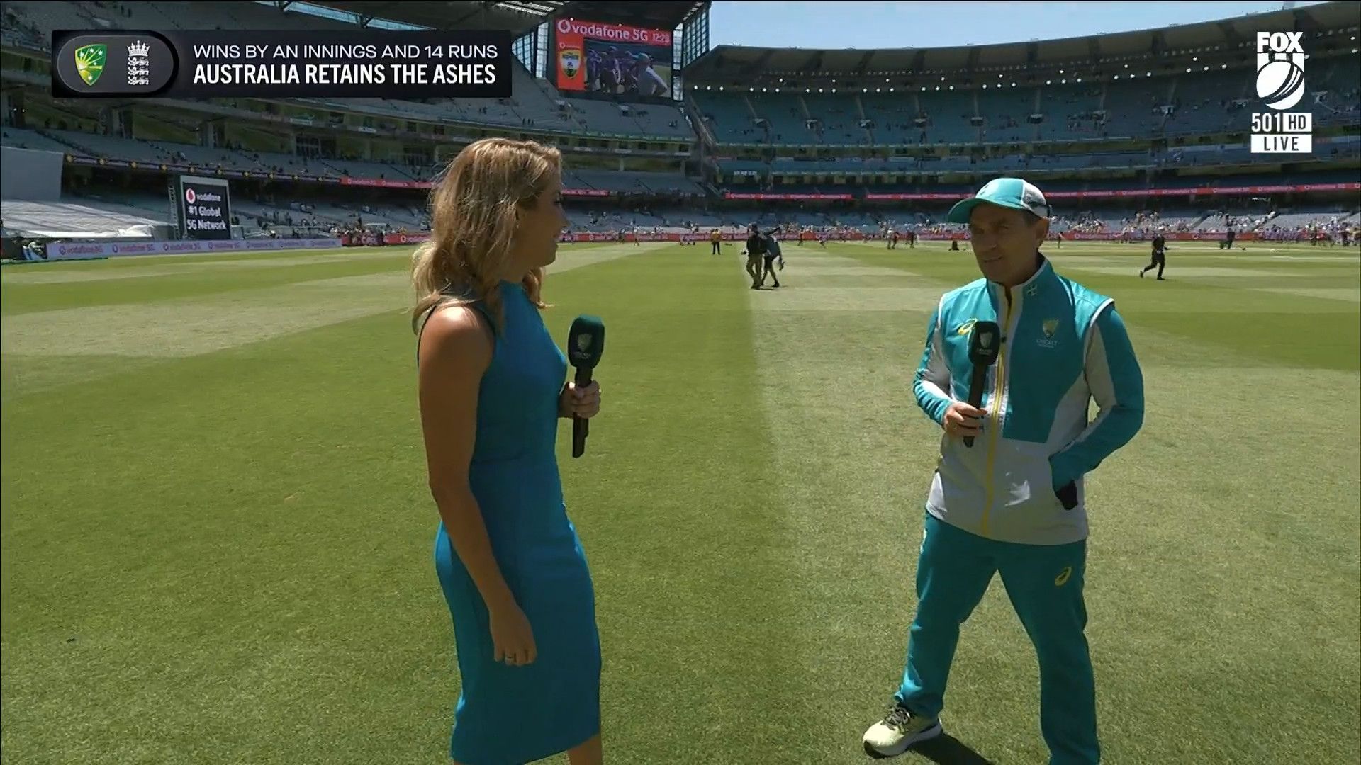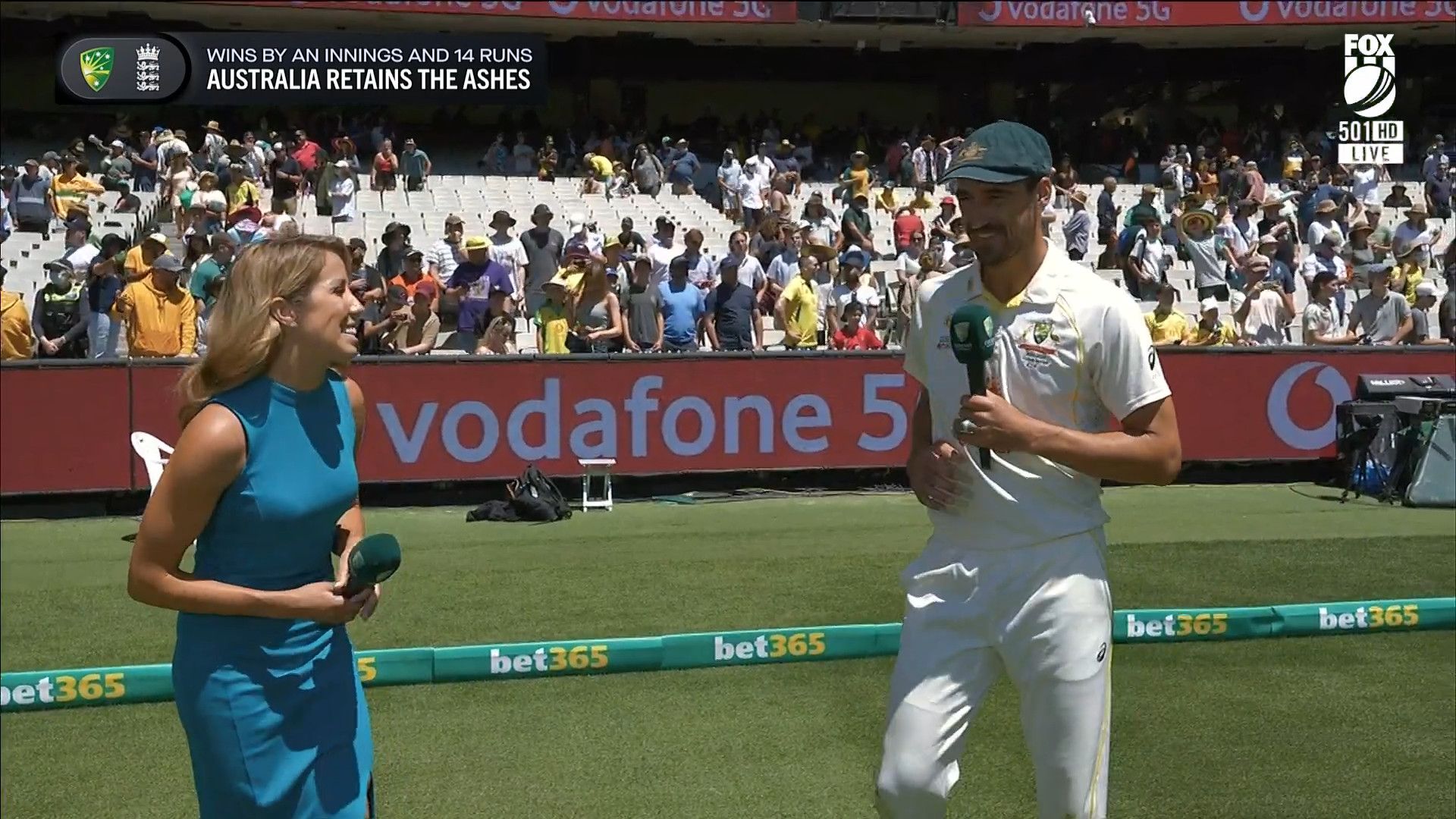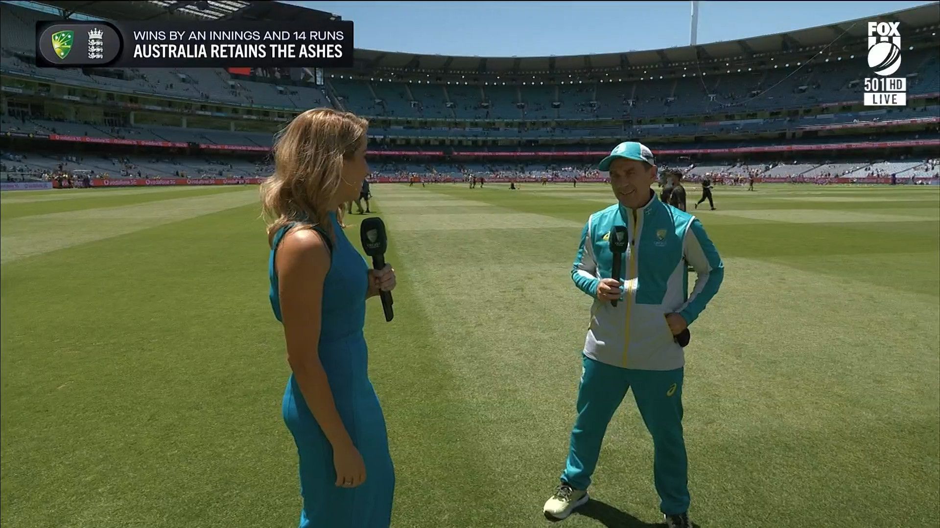 Here is Kath during the Tea break on Day 2 having another walk on the MCG - this time a bit longer (video link below) and Kath from Day 3 looking incredible in blue on Fox Cricket HD https://drive.google.com/file/d/1qzh-xzAyiwMbenlpBGRYvuQZCmmd4q7I/view?usp=sharing