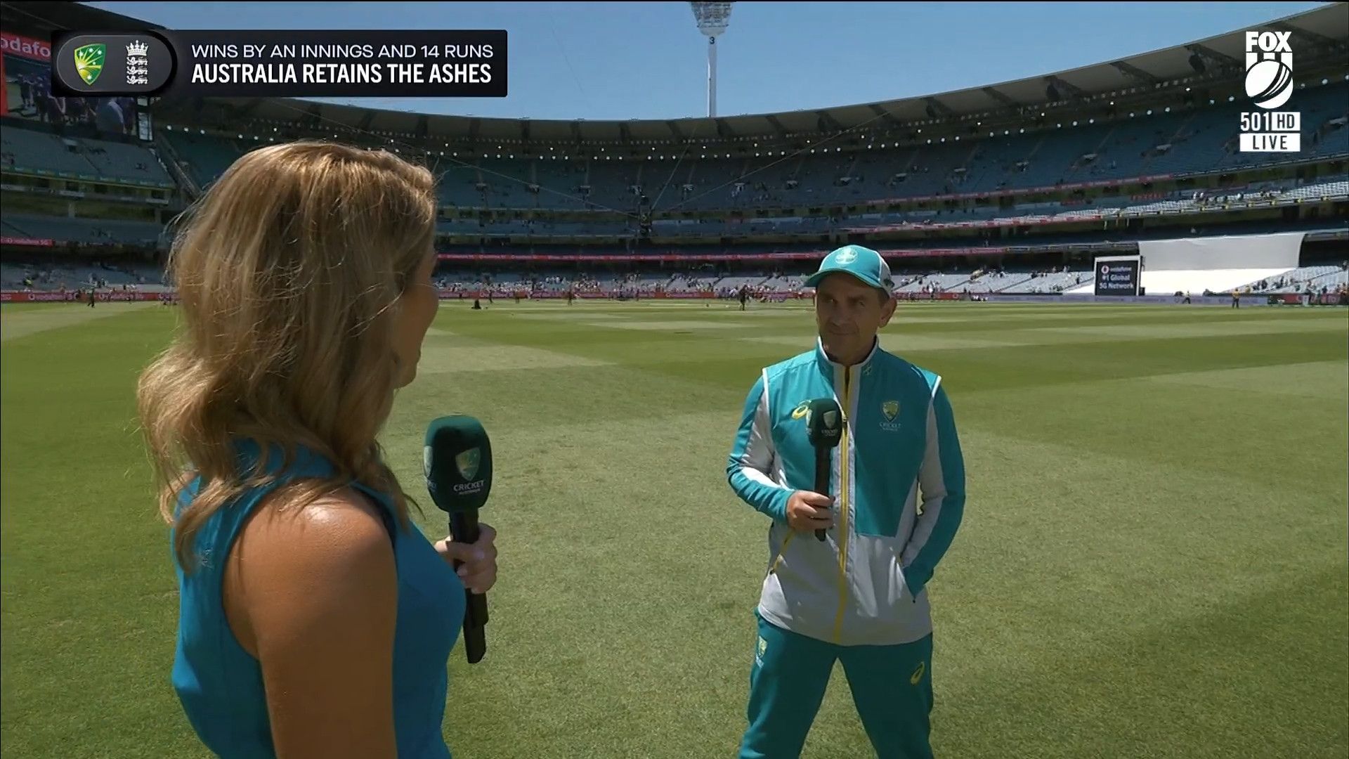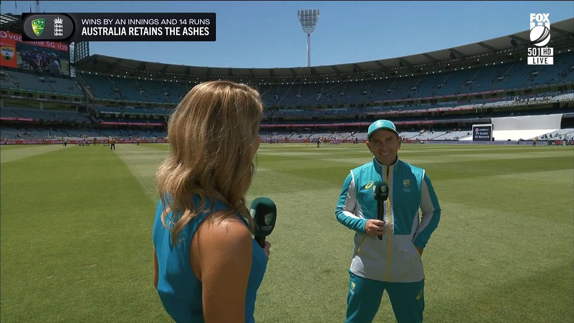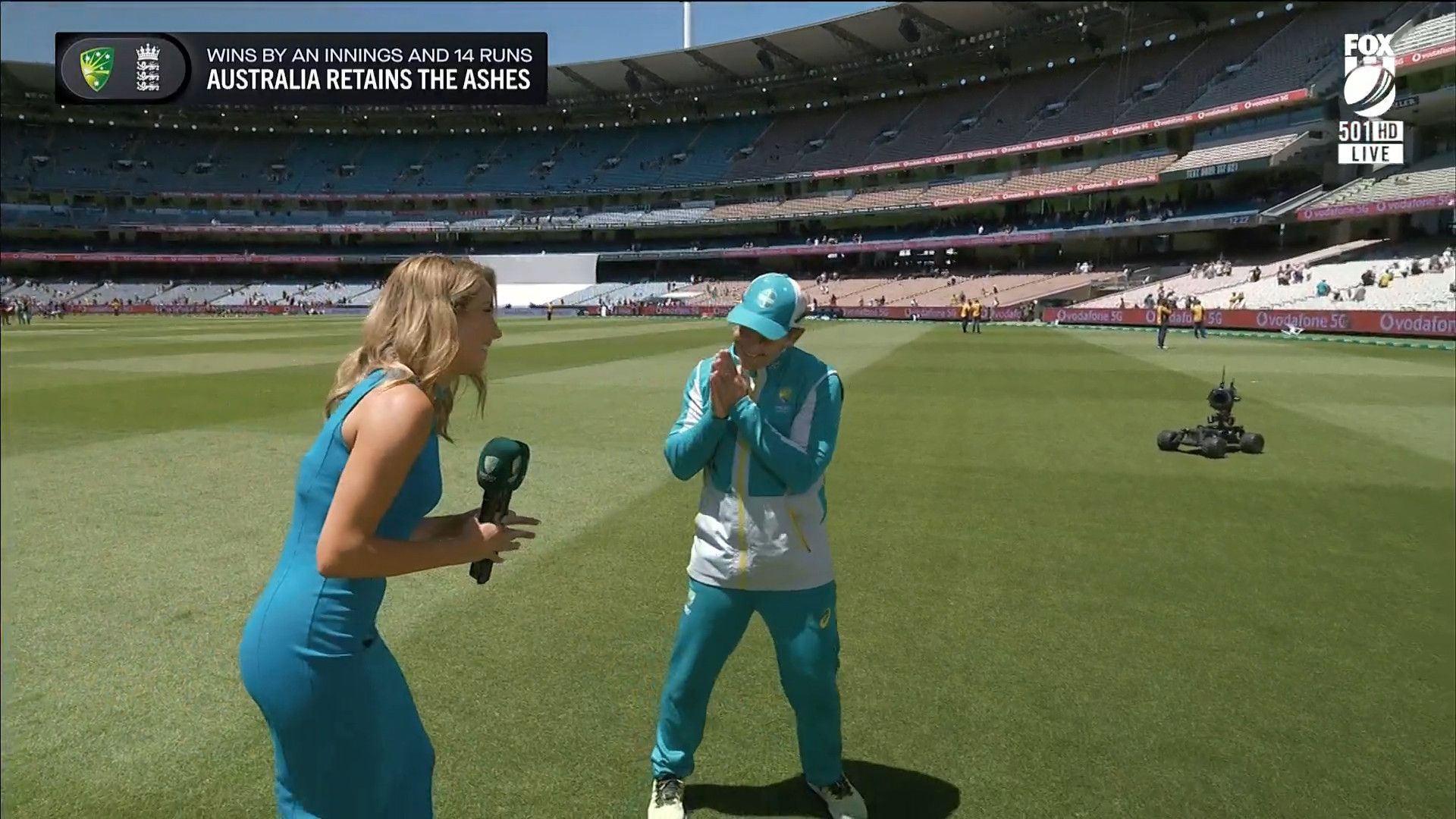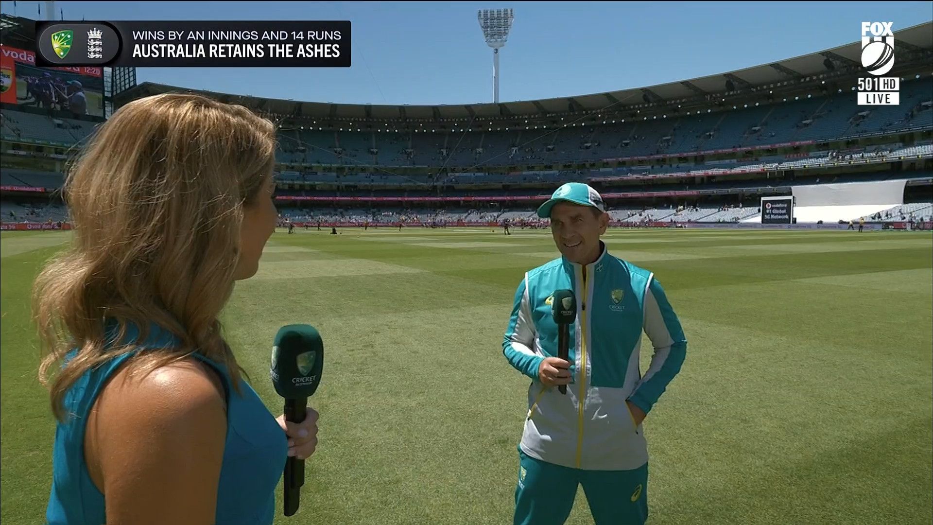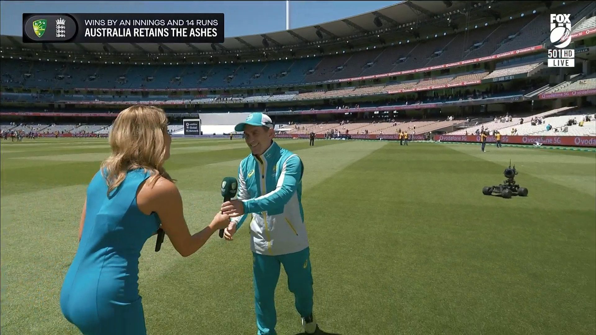 Here is Kath during the Tea break on Day 2 having another walk on the MCG - this time a bit longer (video link below) and Kath from Day 3 looking incredible in blue on Fox Cricket HD https://drive.google.com/file/d/1qzh-xzAyiwMbenlpBGRYvuQZCmmd4q7I/view?usp=sharing