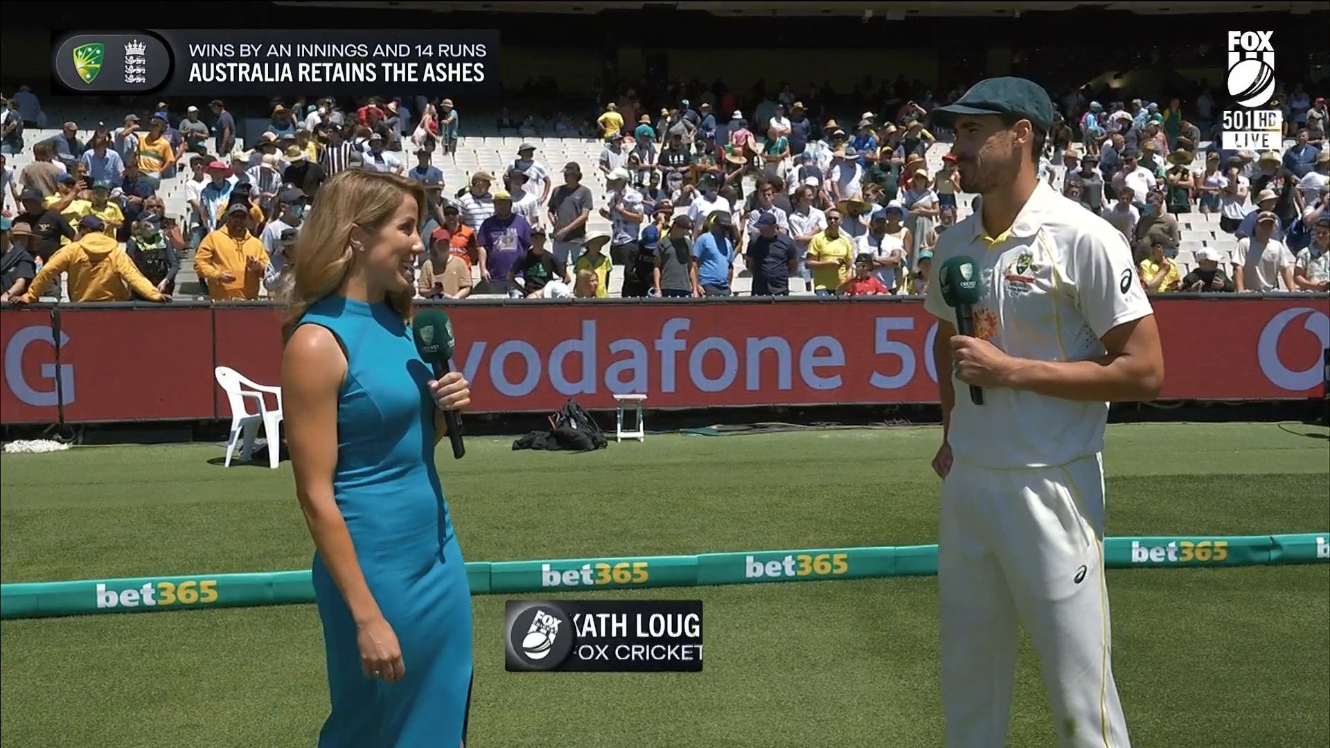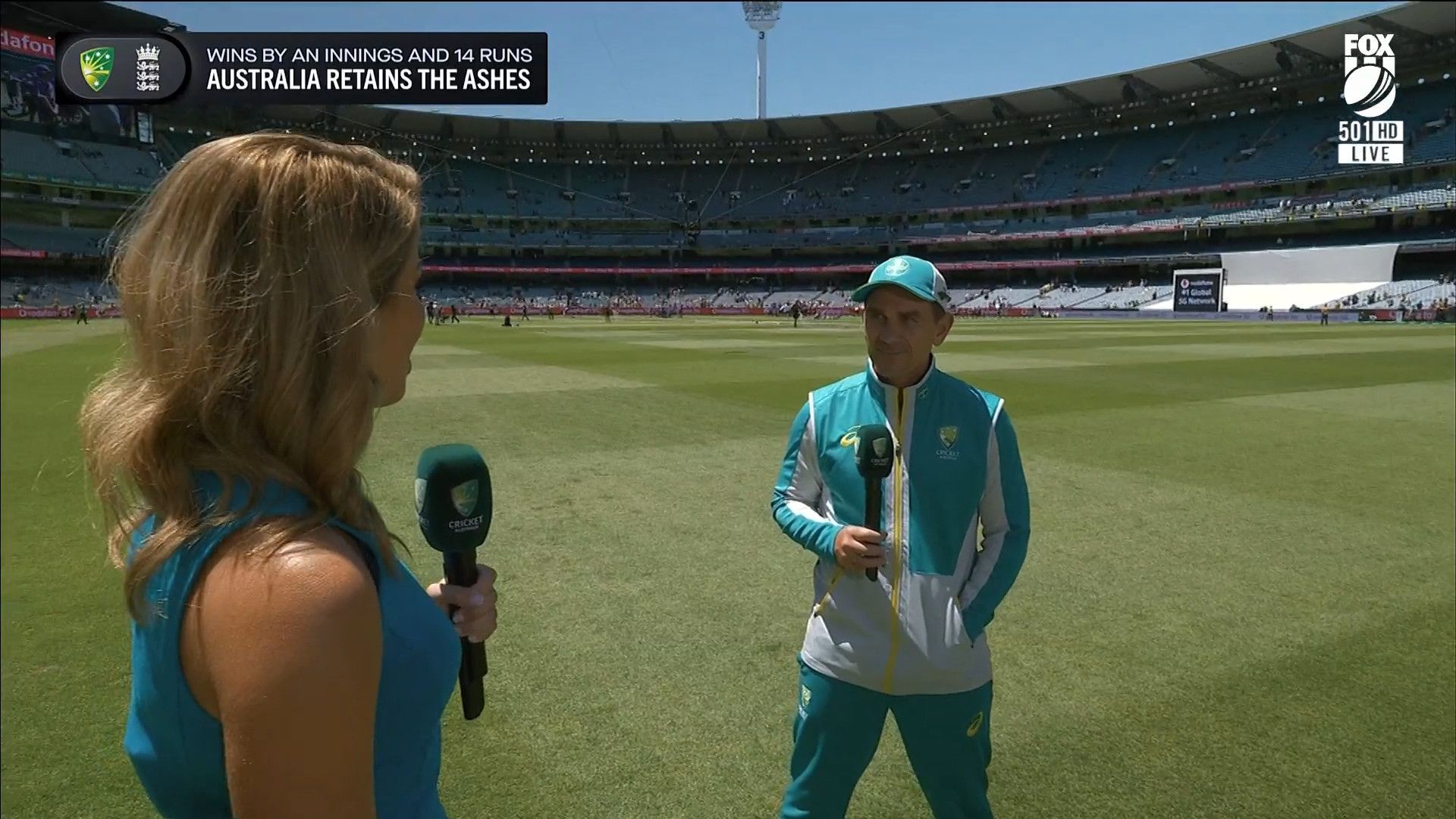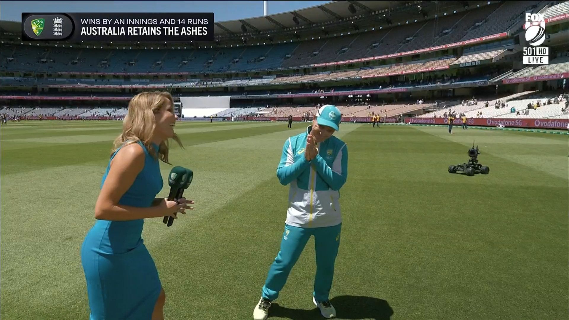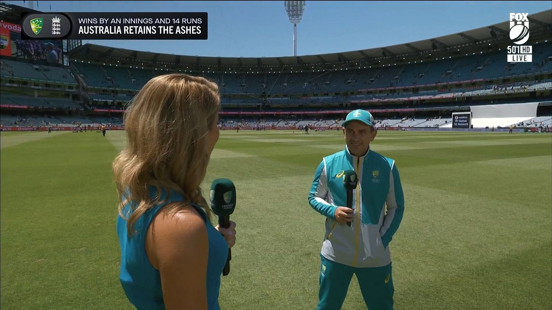 Here is Kath during the Tea break on Day 2 having another walk on the MCG - this time a bit longer (video link below) and Kath from Day 3 looking incredible in blue on Fox Cricket HD https://drive.google.com/file/d/1qzh-xzAyiwMbenlpBGRYvuQZCmmd4q7I/view?usp=sharing