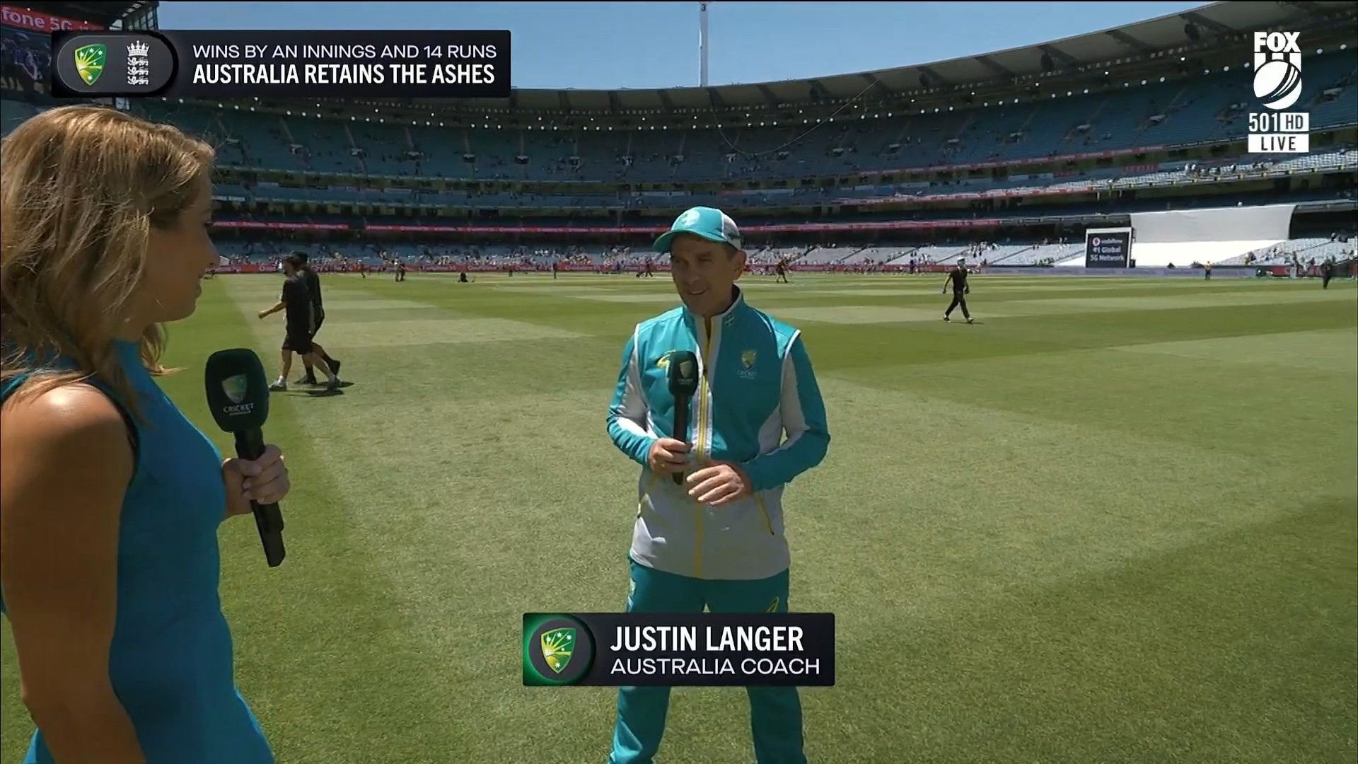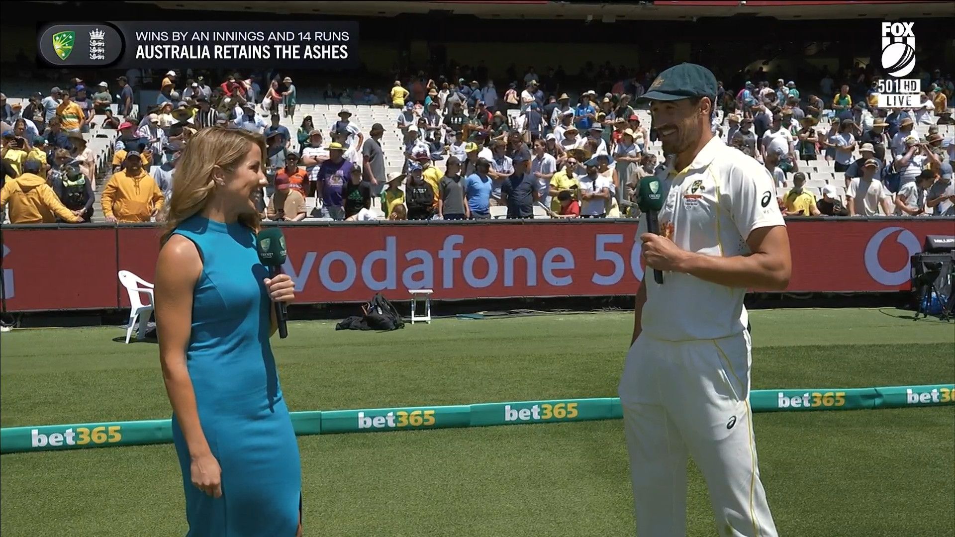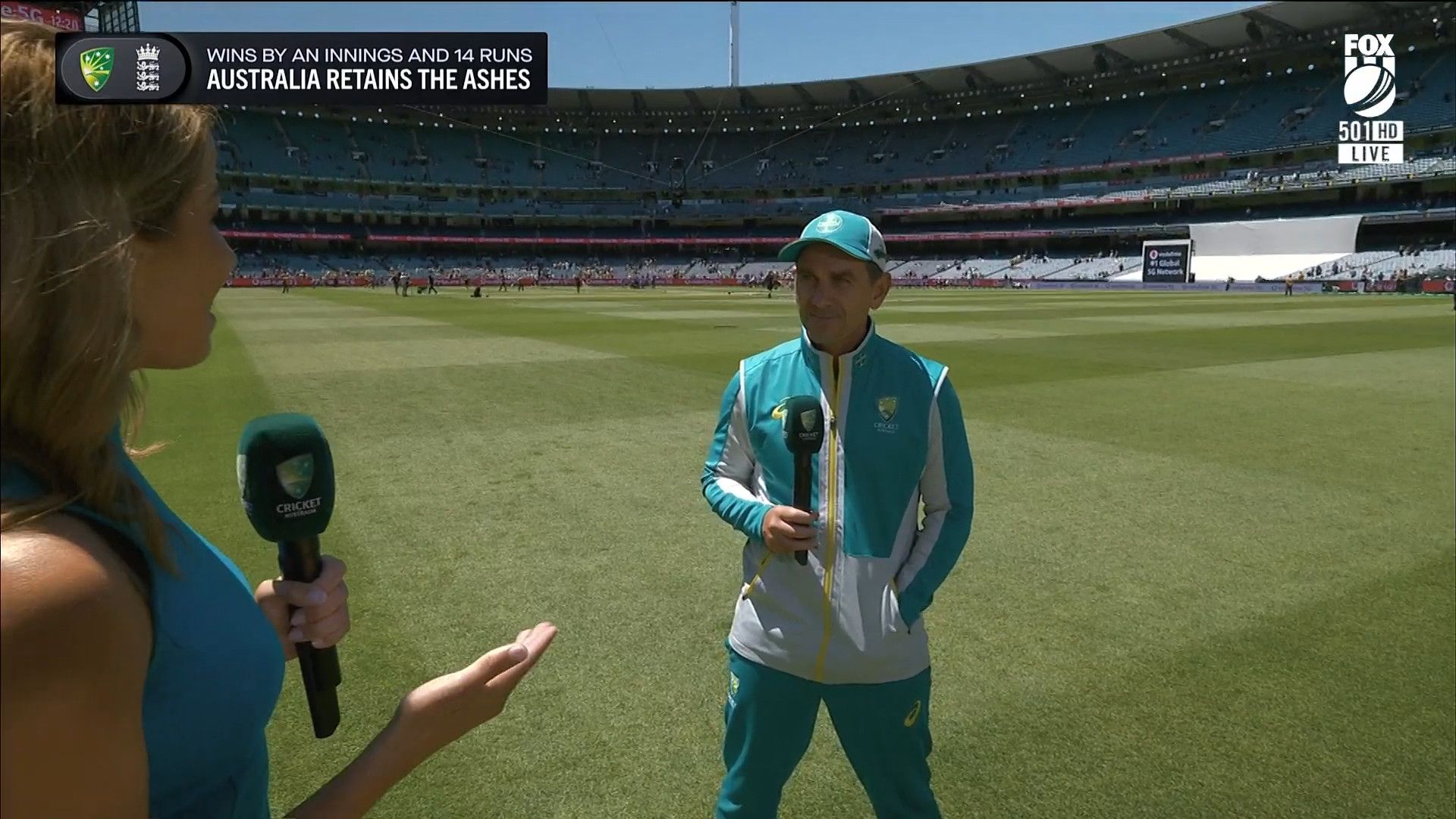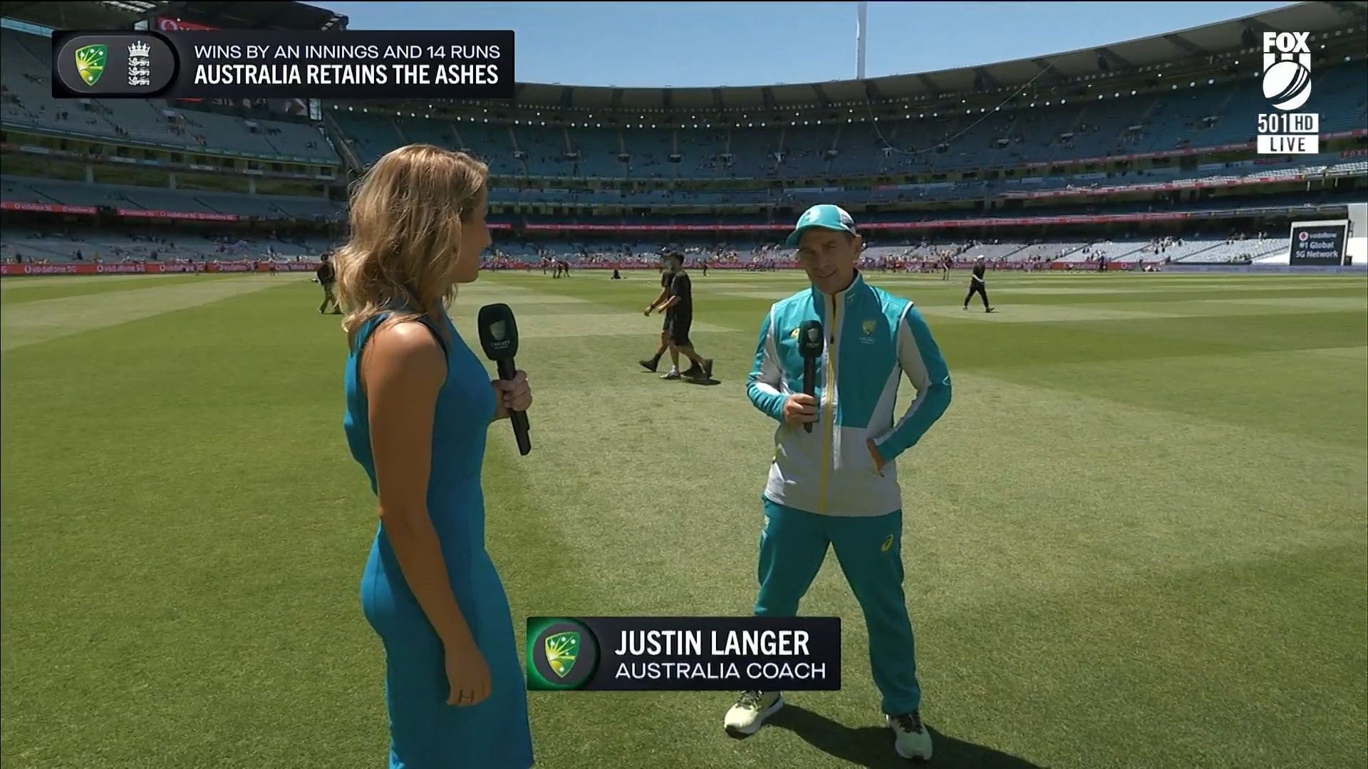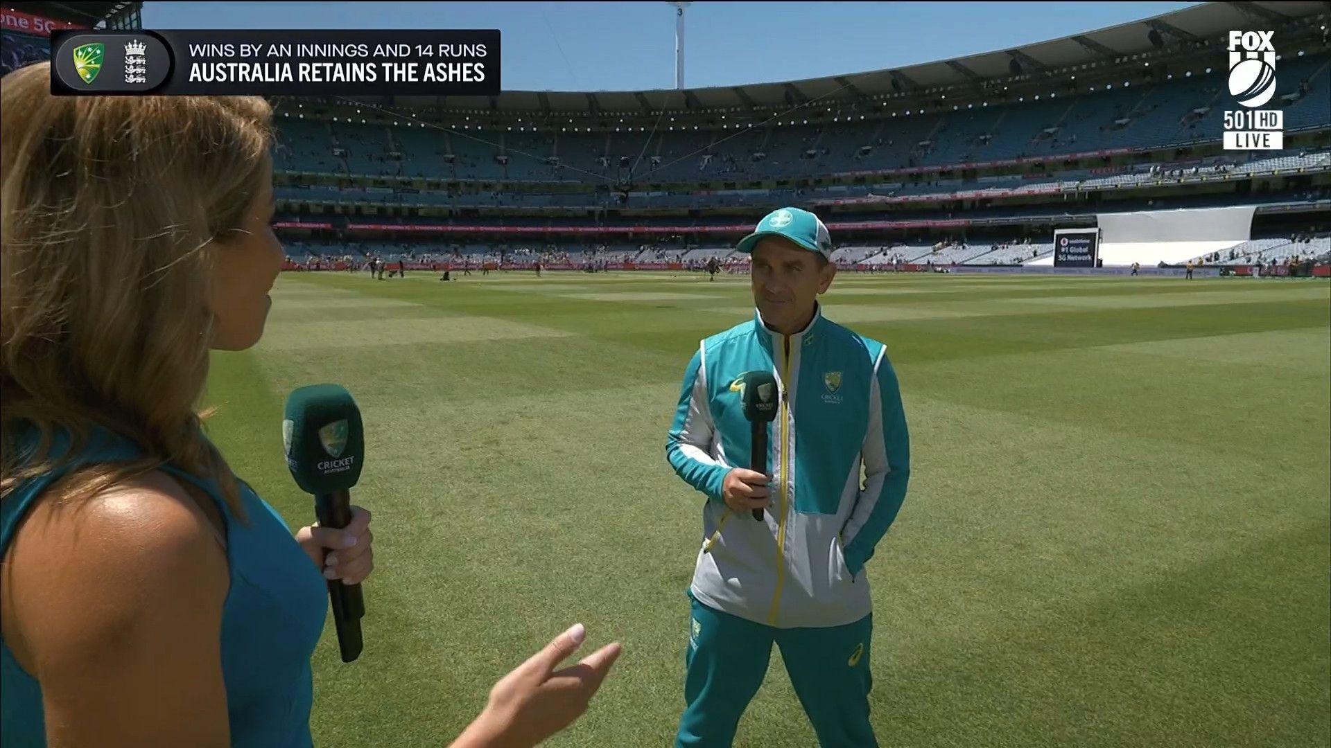 Here is Kath during the Tea break on Day 2 having another walk on the MCG - this time a bit longer (video link below) and Kath from Day 3 looking incredible in blue on Fox Cricket HD https://drive.google.com/file/d/1qzh-xzAyiwMbenlpBGRYvuQZCmmd4q7I/view?usp=sharing