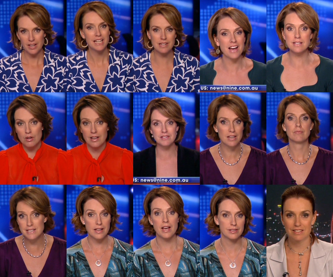 Yeah, it's a little harder to do - the last caps i posted of her short hair style were from the 30 second news breaks during Channel 9's night time coverage of the winter olympics (30 seconds isn't much time to grab caps, especially GOOD one's - there's about 5 seconds of her on screen :P).