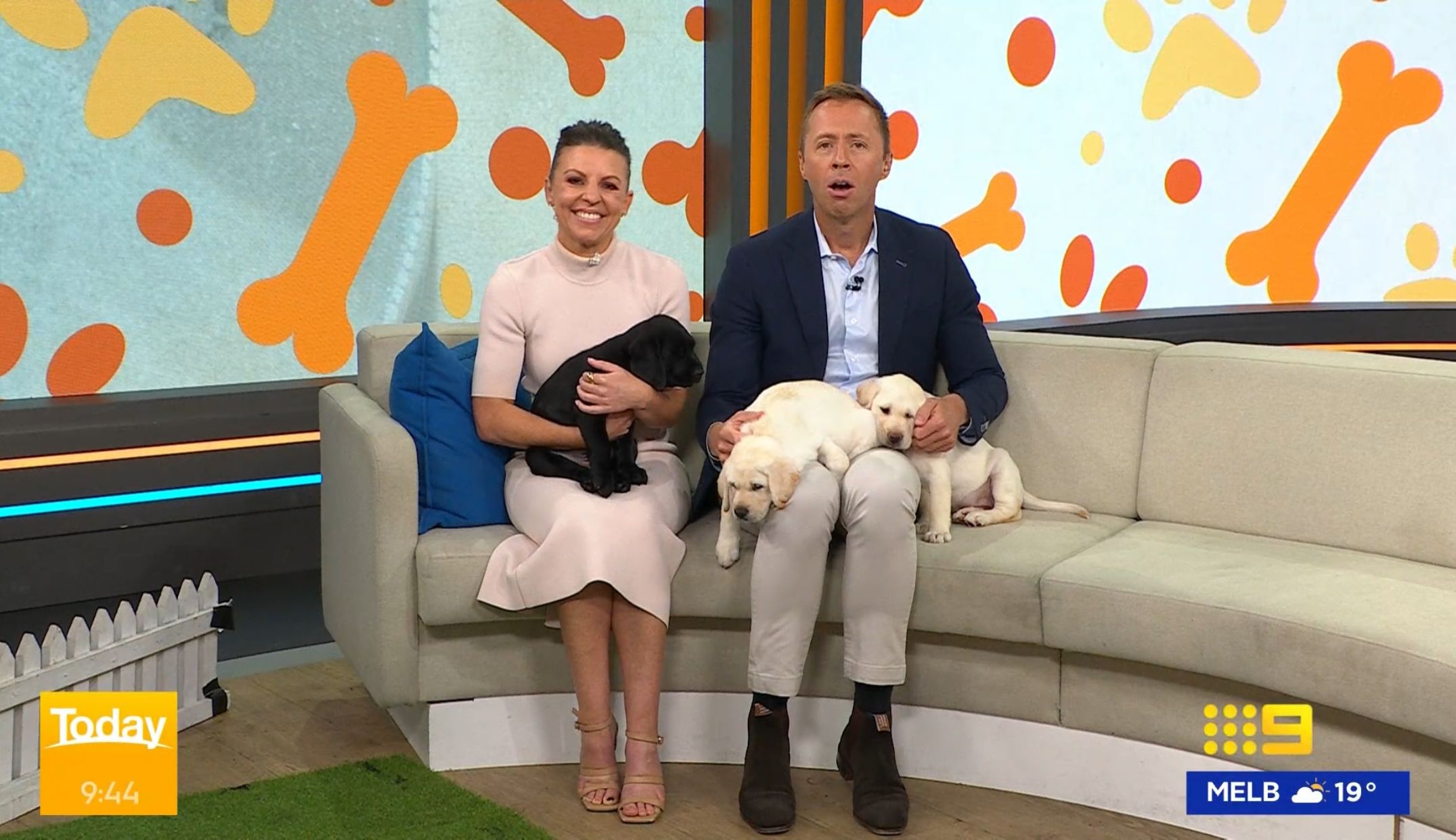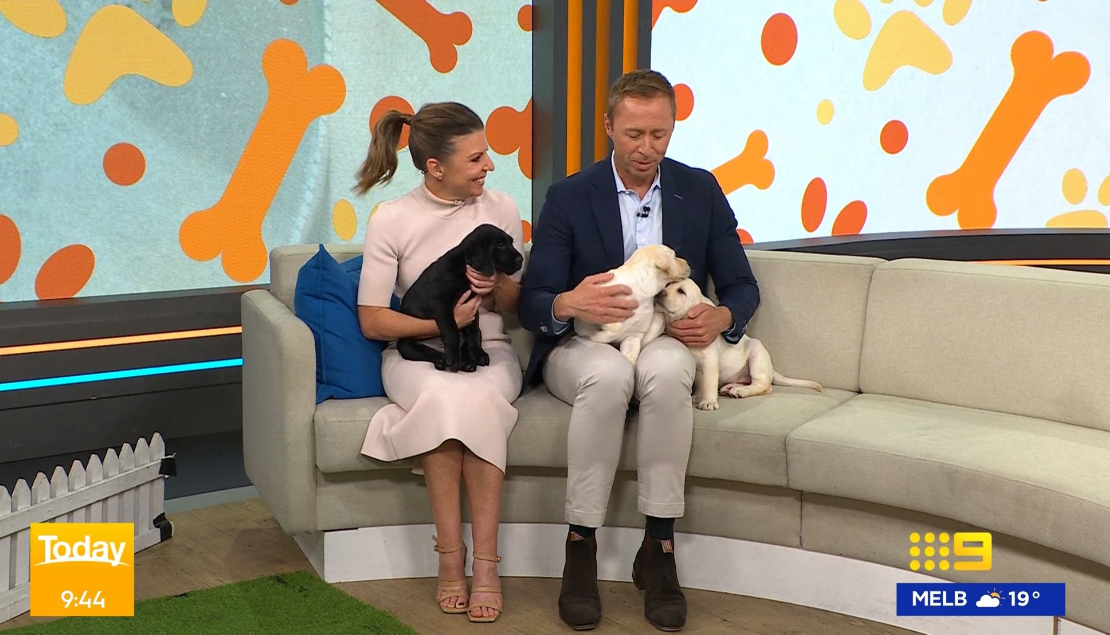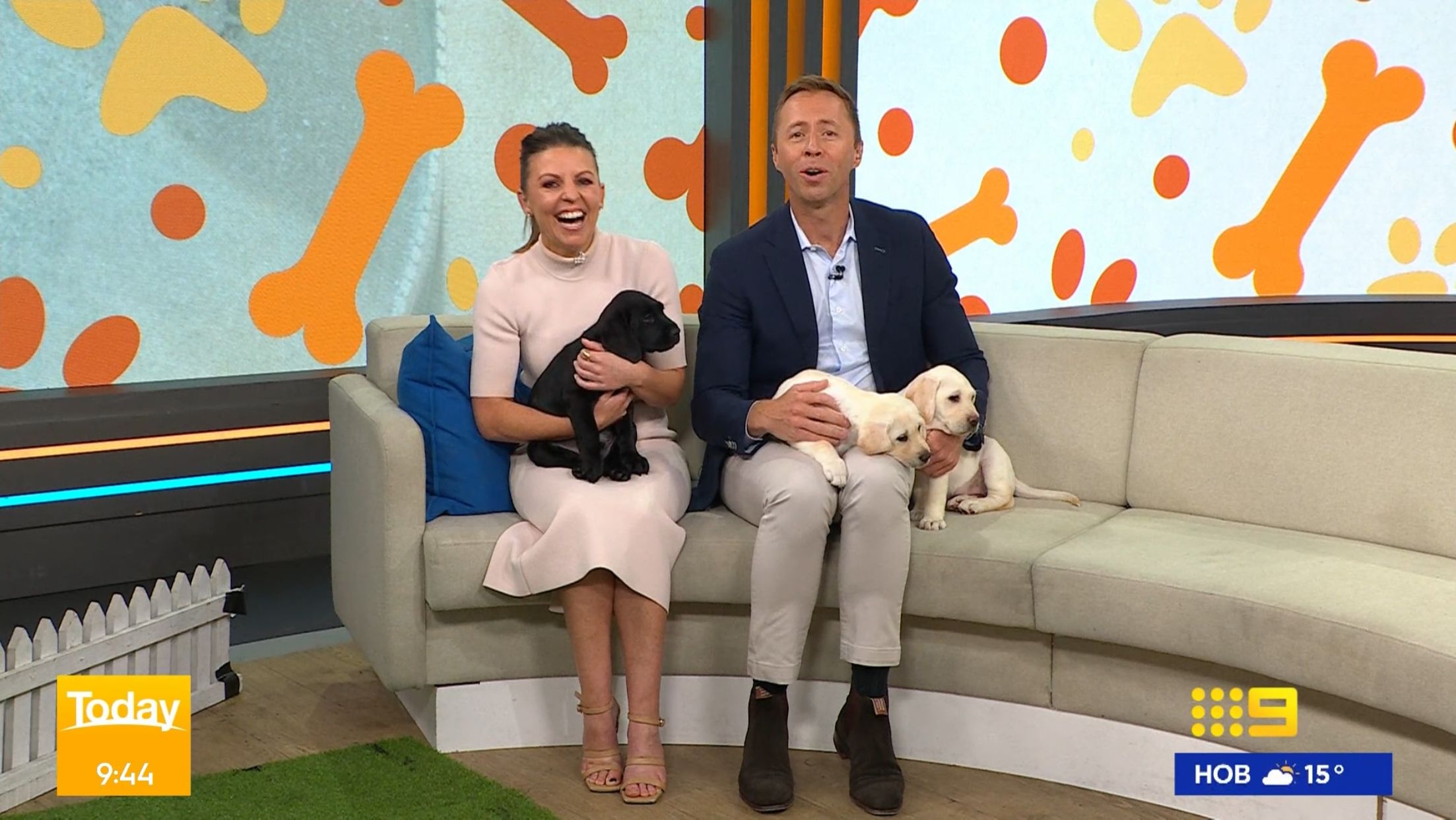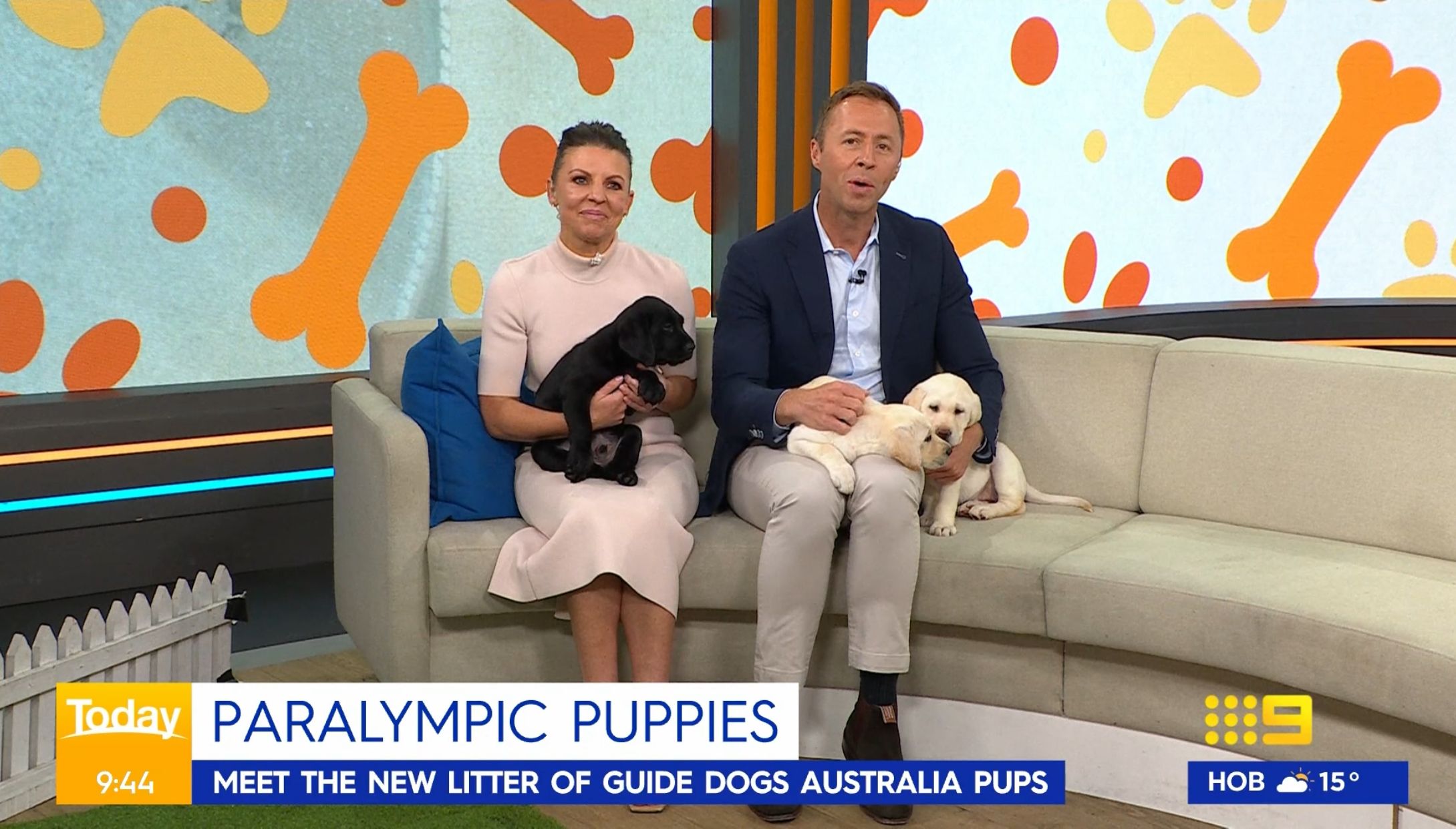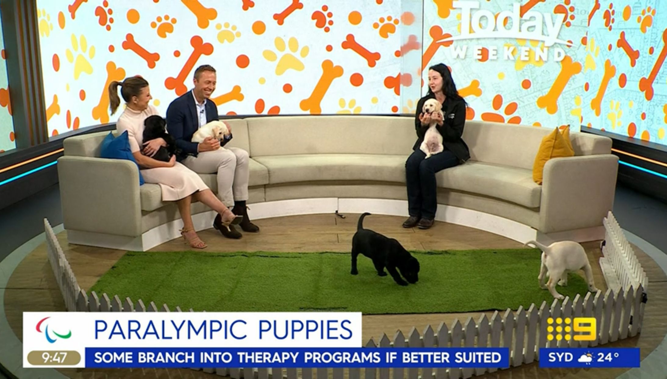 Lizzie nursing a guide dog puppy