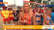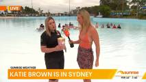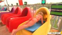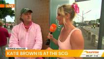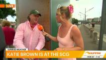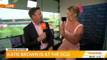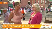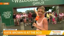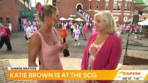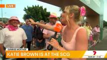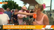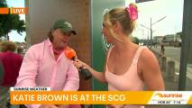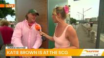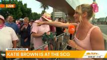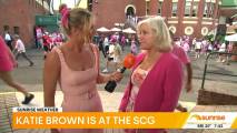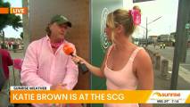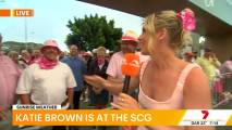At about 7:14 she was talking to people lined up at the cricket and there was a spot where you could see right down her top