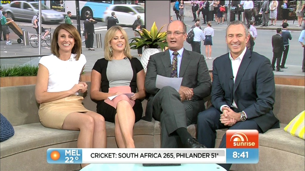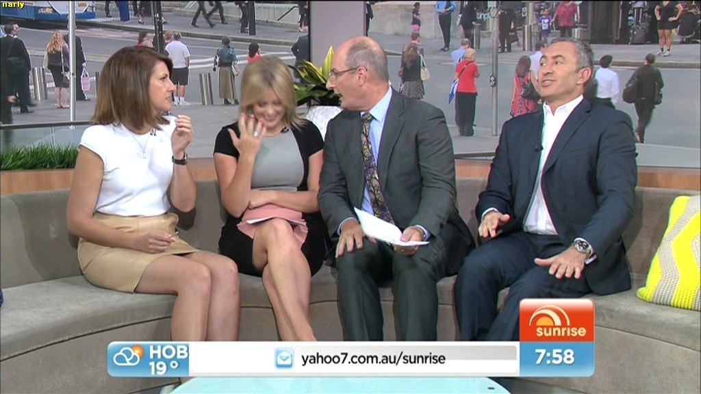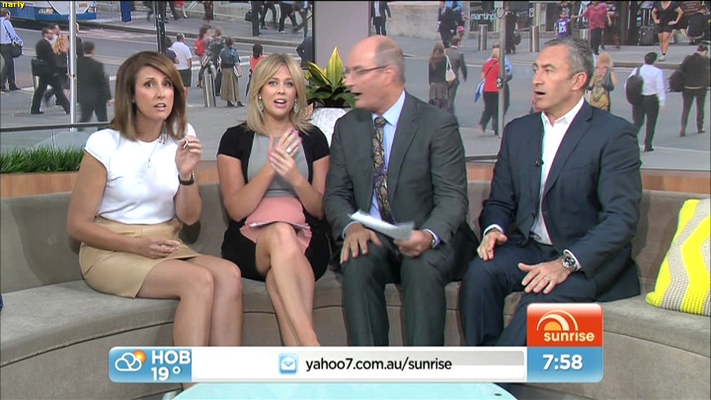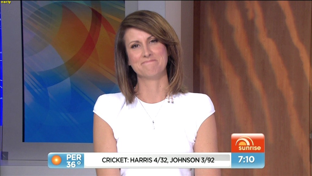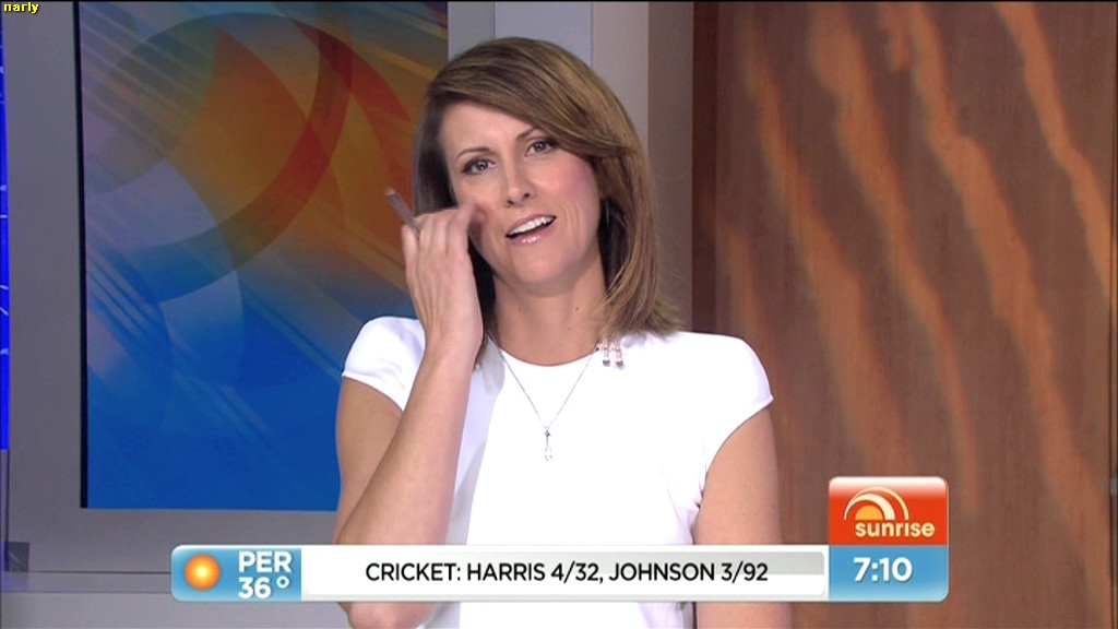 At 7.50 today, Nat sat on the couch and crossed her legs and showed more of her inner thigh.