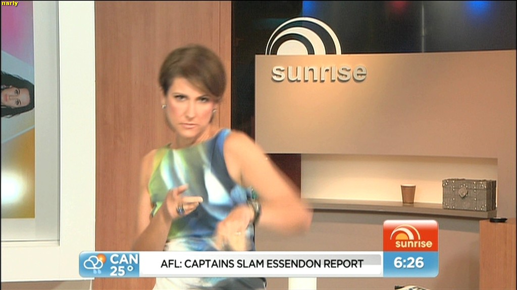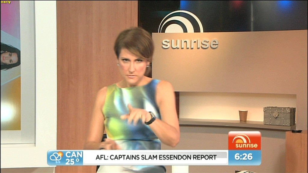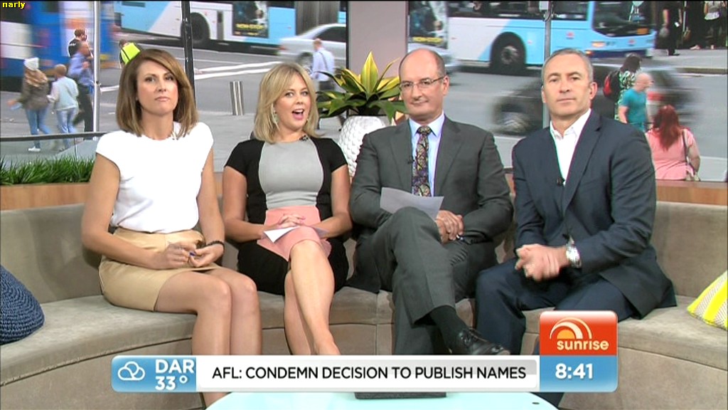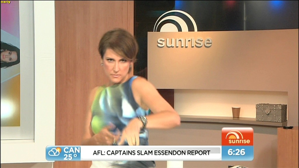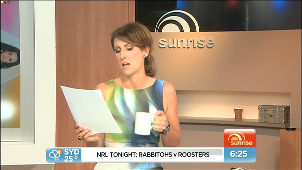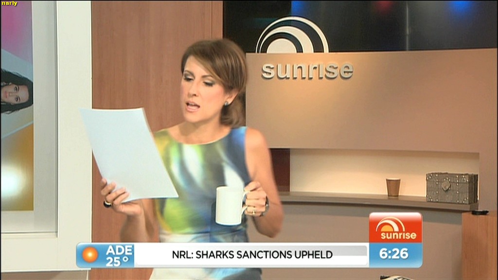 At 7.50 today, Nat sat on the couch and crossed her legs and showed more of her inner thigh.