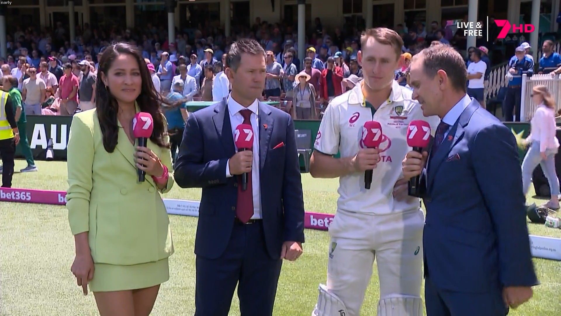 It’s a pity she’s not more active on socials. Wears some ridiculously short skirts at the cricket but don’t really get to see them. The white outfit in Sydney today looks amazing. Slight hint of cleavage today as well. Always behind the desk when she wears short skirt. See what the day brings 🤞
