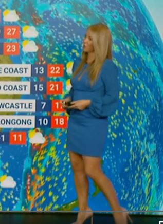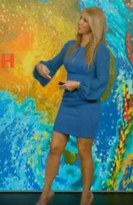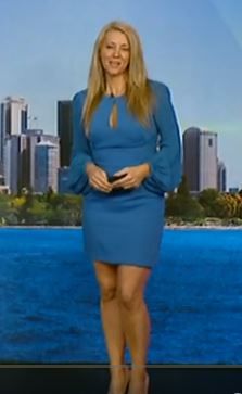 Good to see Jaynie doesn't care if its WINTER strutting around on Sky Weather Channel in this nice short BLUE Number pce229073