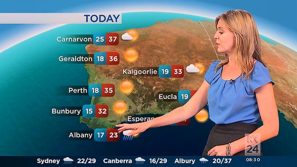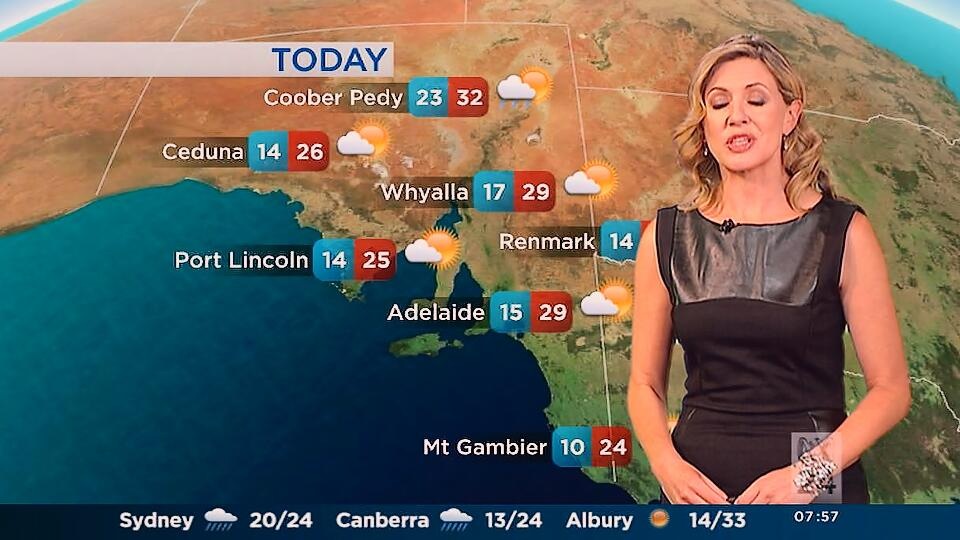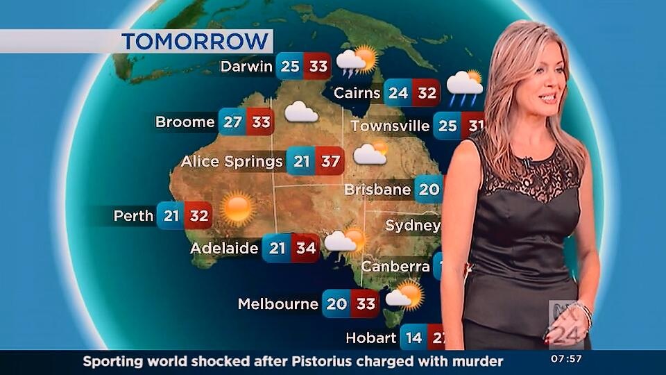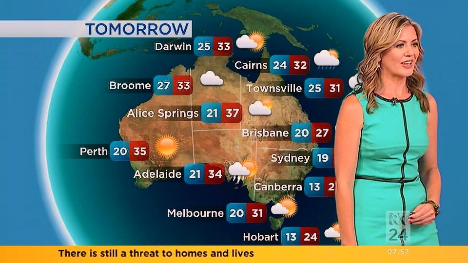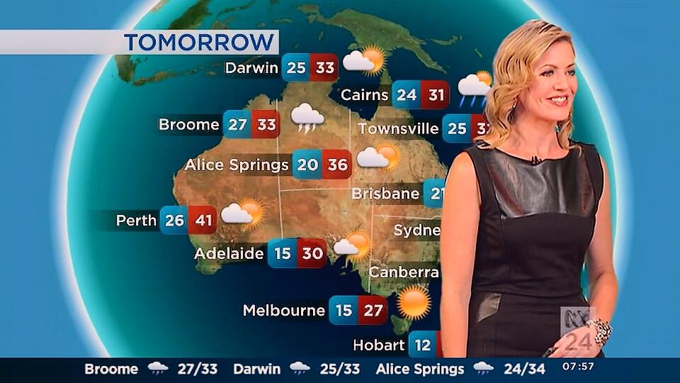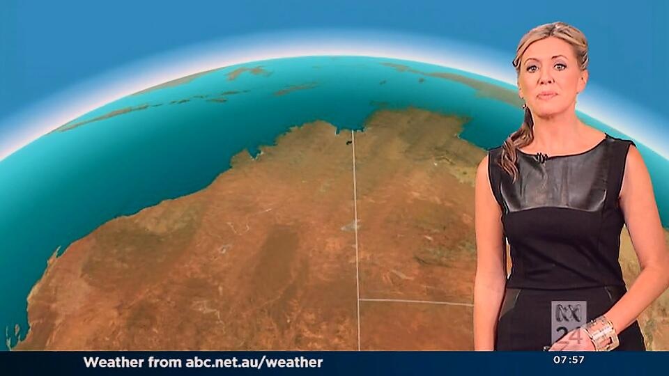 Very nice. She looked like a classic beauty today, but the abc still aren't showing those gorgeous legs. All of the other weather girls shows off their legs.