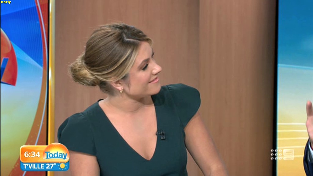 Narly did you cap here today she had her hair up n showing cleavage nice