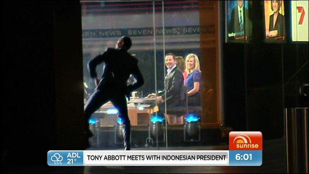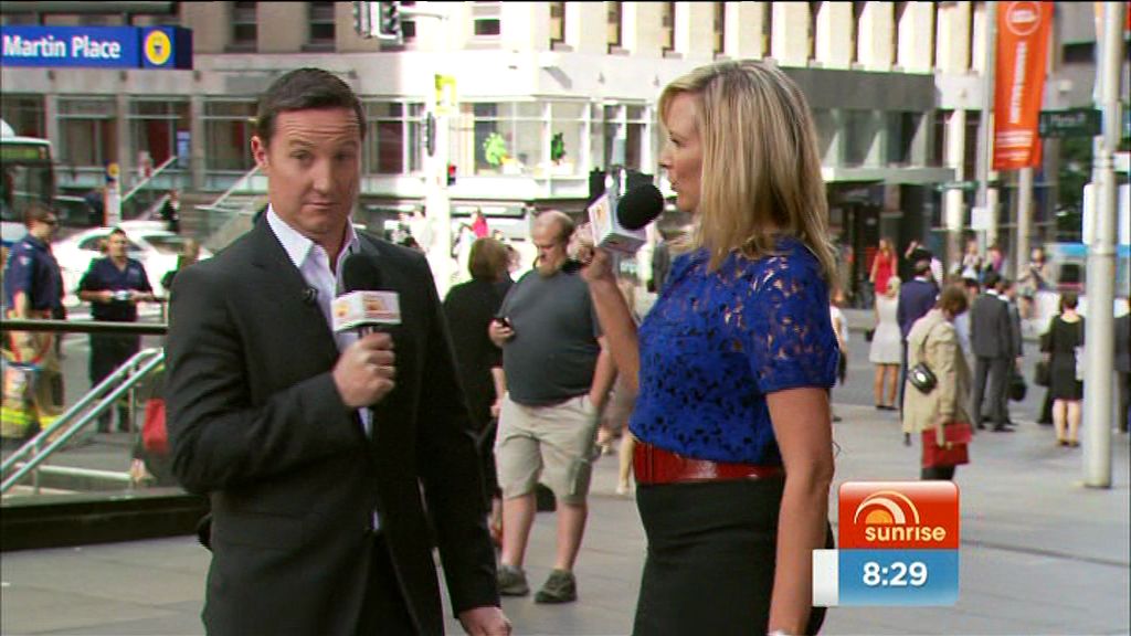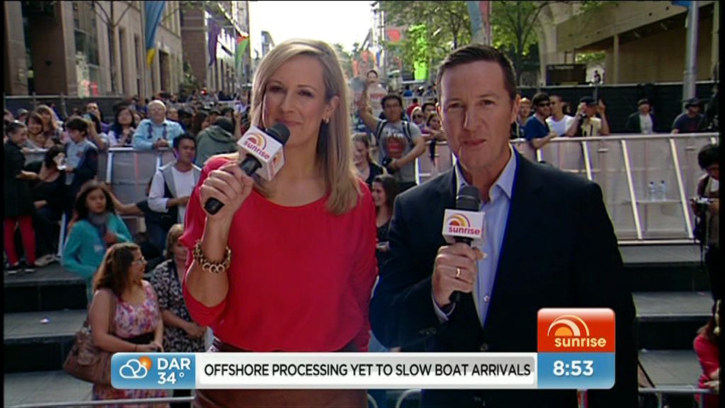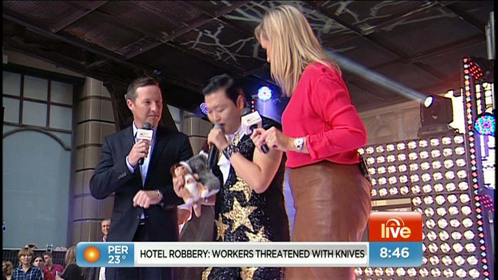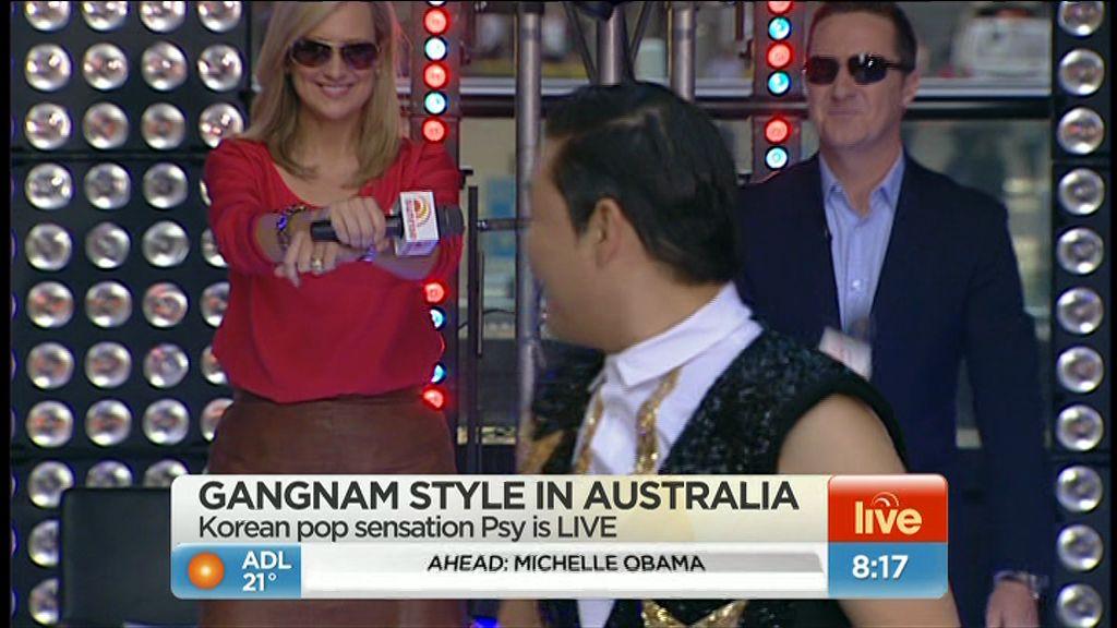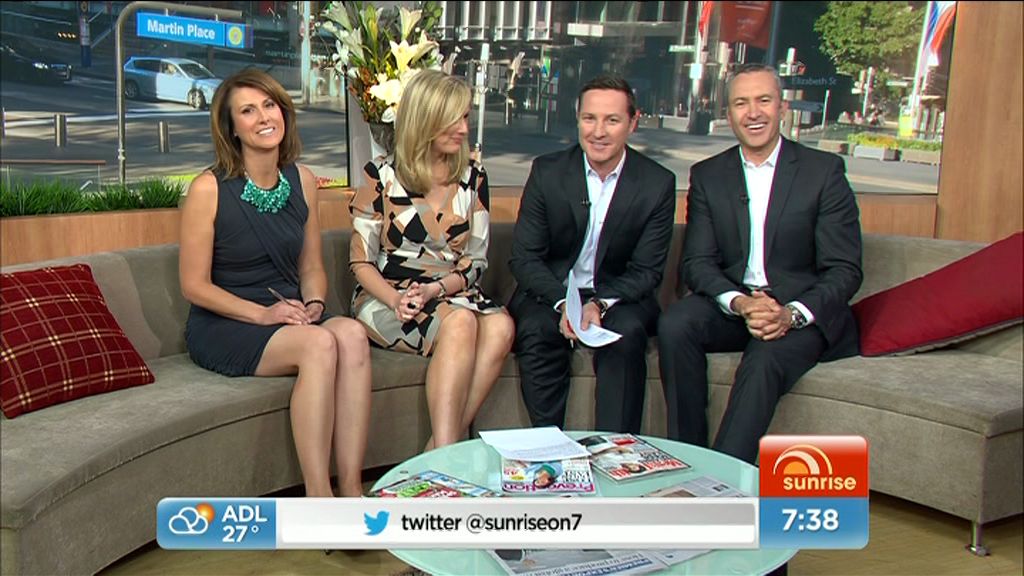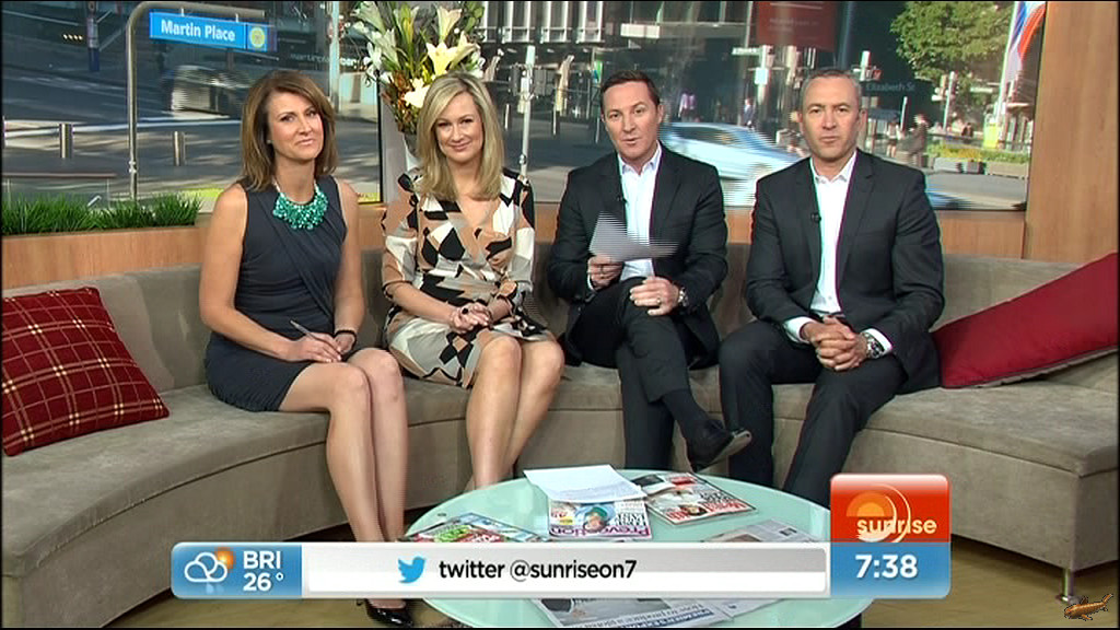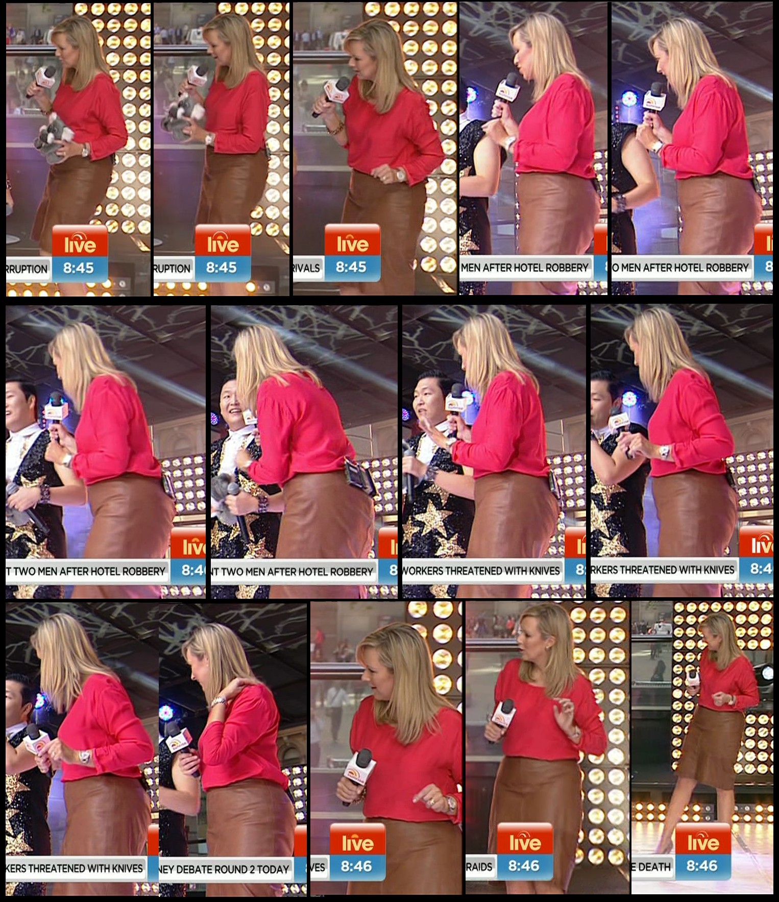 Today's dress looked boring while Mel was seated but damn, it looked good (lots of leg) when she was standing outside the studio at the end of the show.