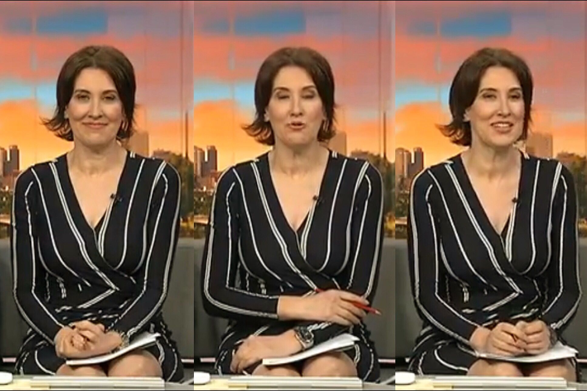 Hello While this is not exactly HD this is taken from Virginia's appearance on Q&A I saw her on Breakfast TV this morning (28/11) wearing a leather skirt just like Melissa Doyle does
