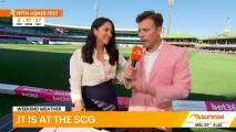 Mel looking great on the coverage for Day 1 of the Sydney test, especially interviewing Top Papley during the drinks break of the first session