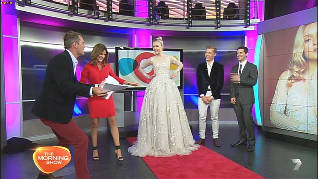 Someone in another time zone have a look at Kylie on the couch at 10:17am to 10:18am Talking about waxing legs and she leans back and a very quick up skirt looked like it occurred. Wish I could confirm but saw it live in NSW. pce229073