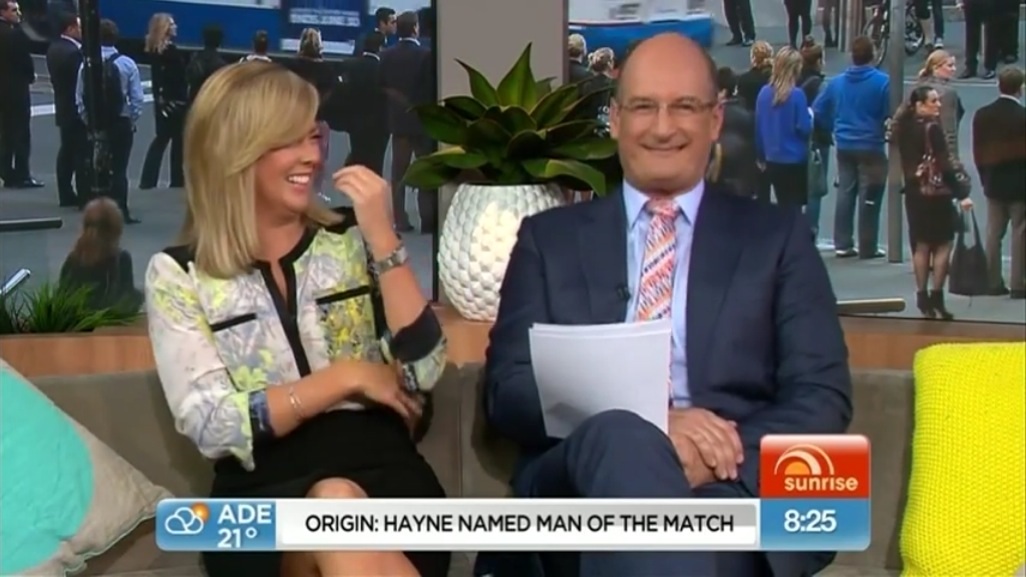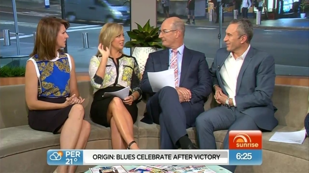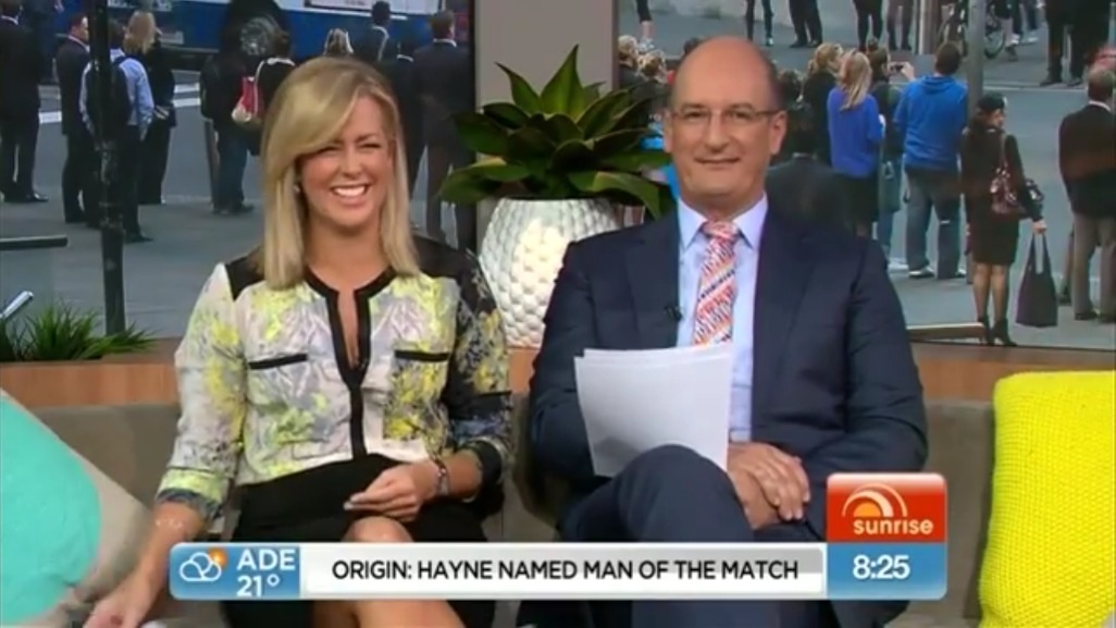 And sitting on the Sunrise couch daily on camera next to the svelte and leggy Natalie Barr is also thought by some to have added to Armytage's image concerns, though these two get along fine and there is no talk of any friction.