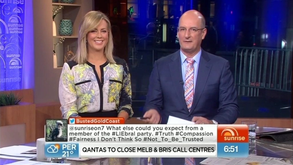 A day earlier, Armytage upset viewers with a throwaway remark during a cast rebuke of former Sunrise EP Adam Boland, who had given an interview to ABC-TV’s Australian Story discussing his bipolar condition.