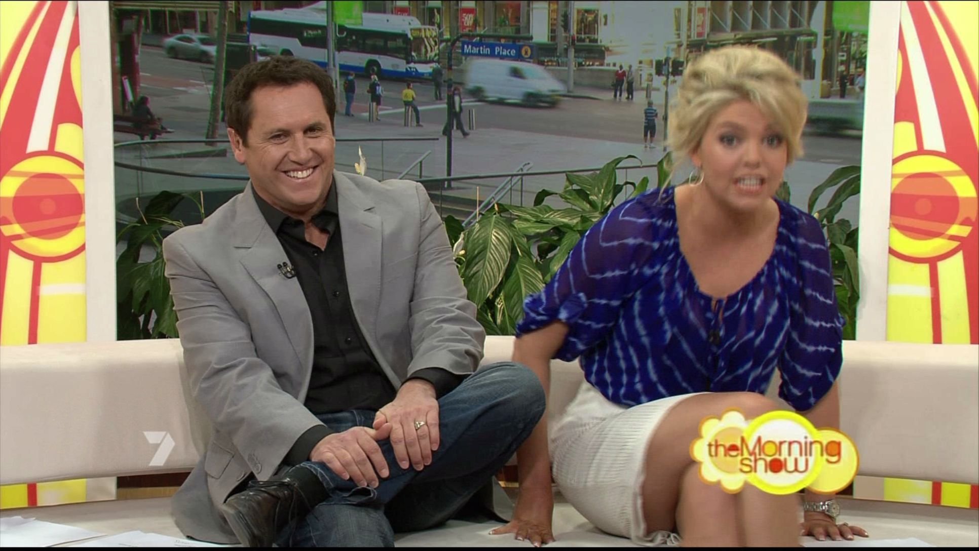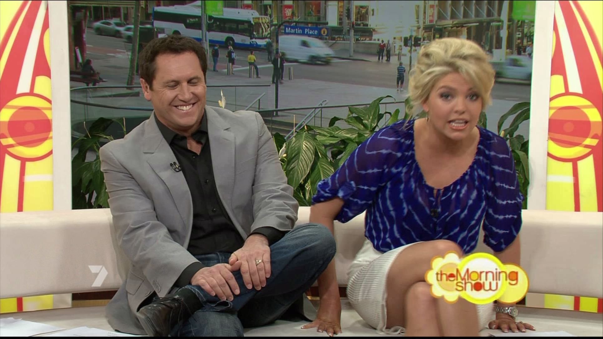 and upskirt would have been magnificant, if i was the co host id be mucking around wit her hoping shed cross and uncross those legs lol.